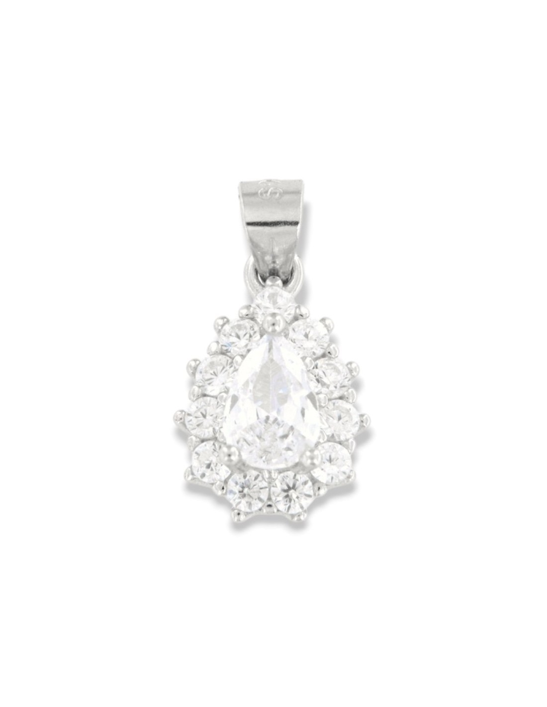 Ciondolo Argento Rodiato Principessa Bianca Goccia 6x4 Millimetri