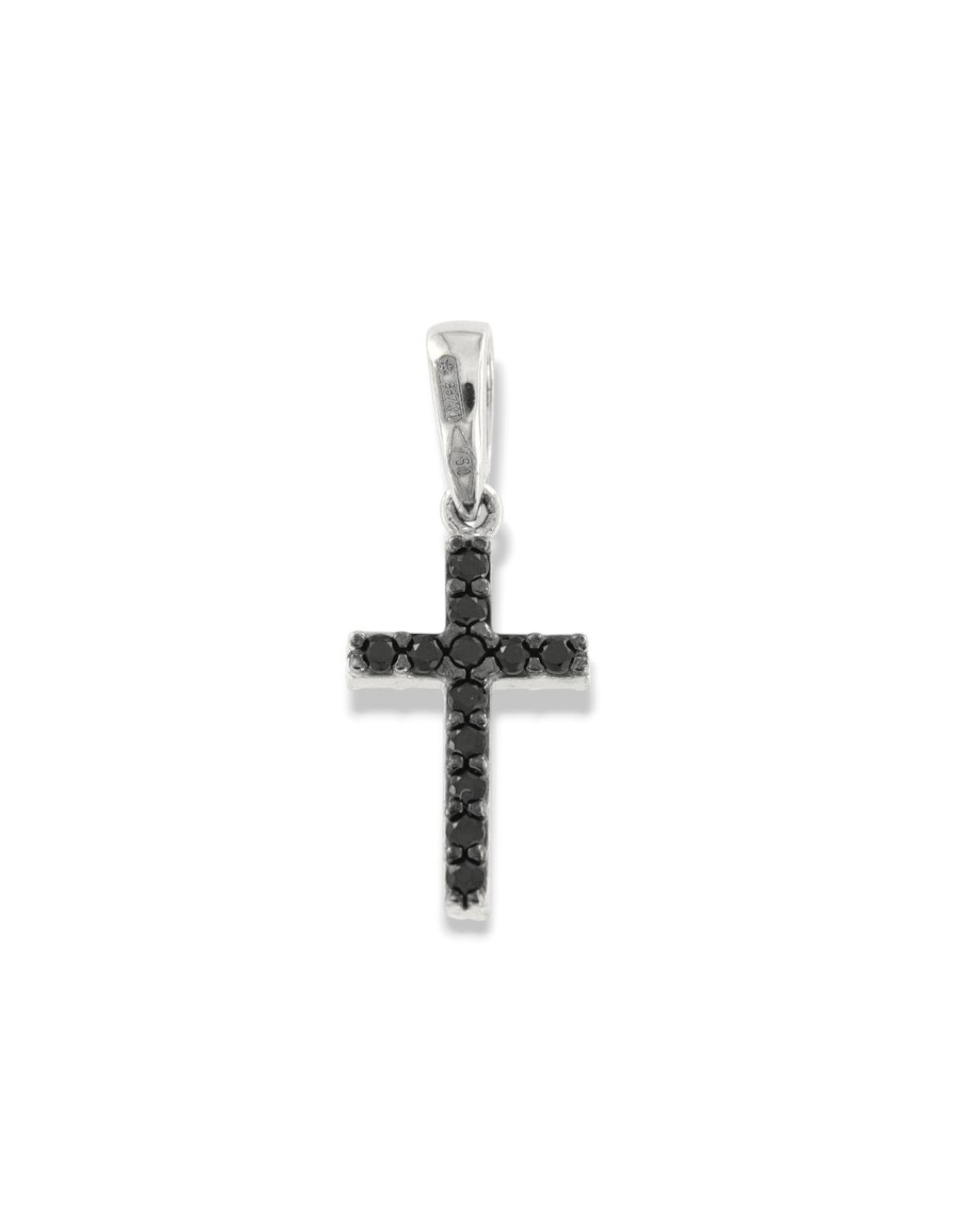Ciondolo Oro Bianco Croce Zirconi Bianchi e Neri