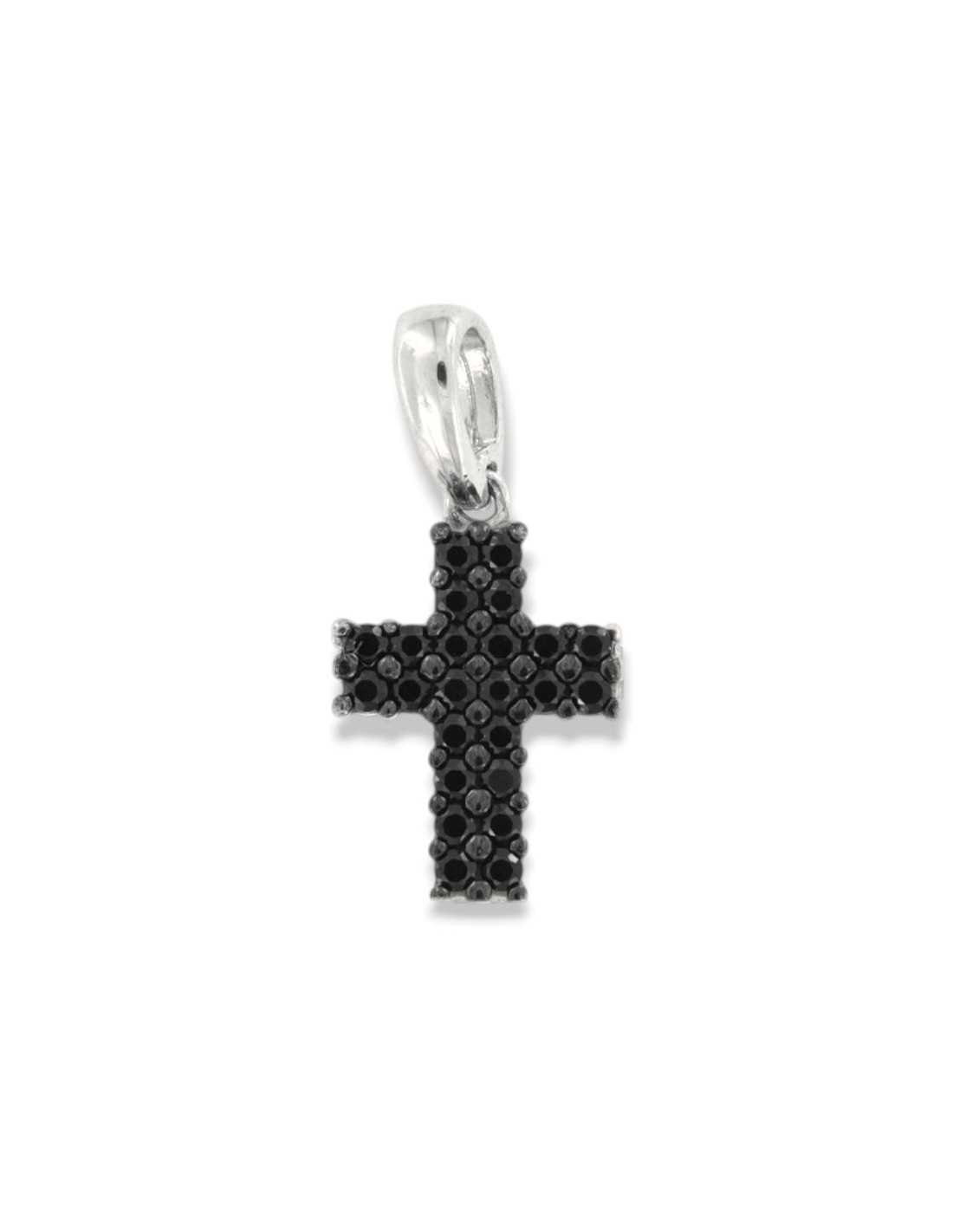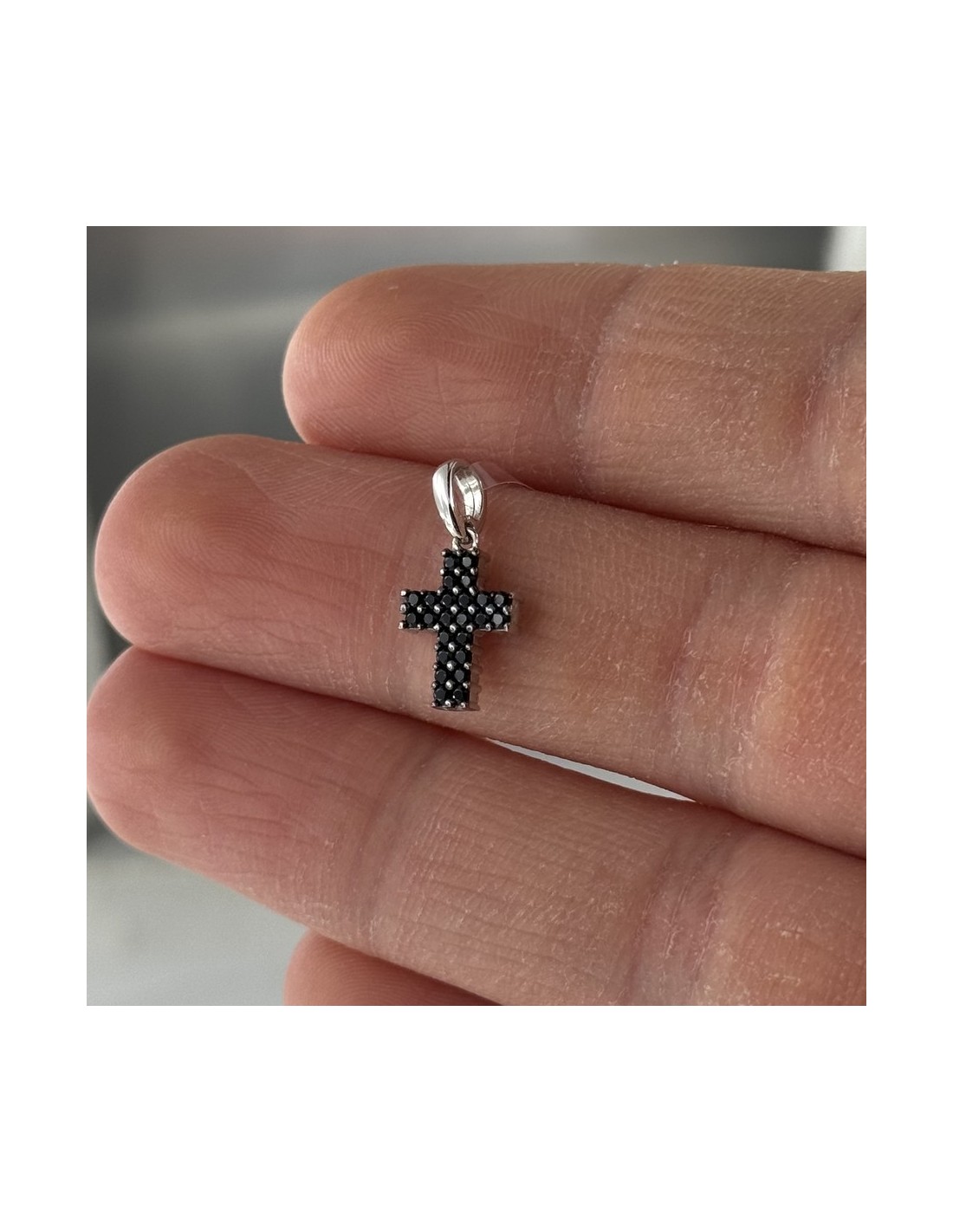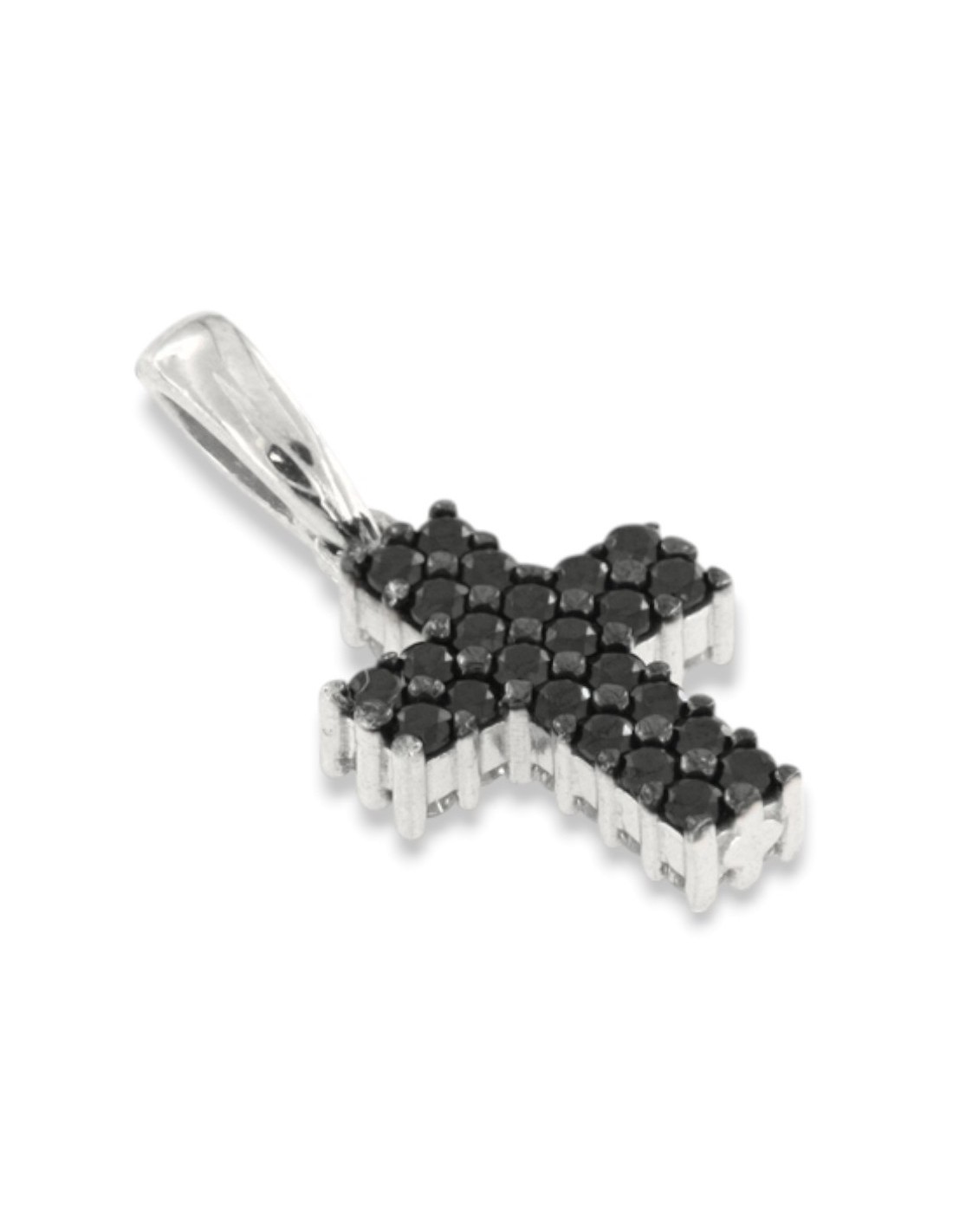 Ciondolo Oro Bianco Croce Zirconi Neri e Bianchi