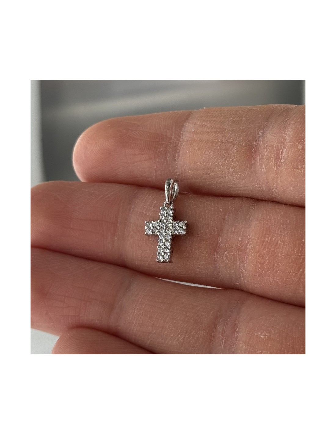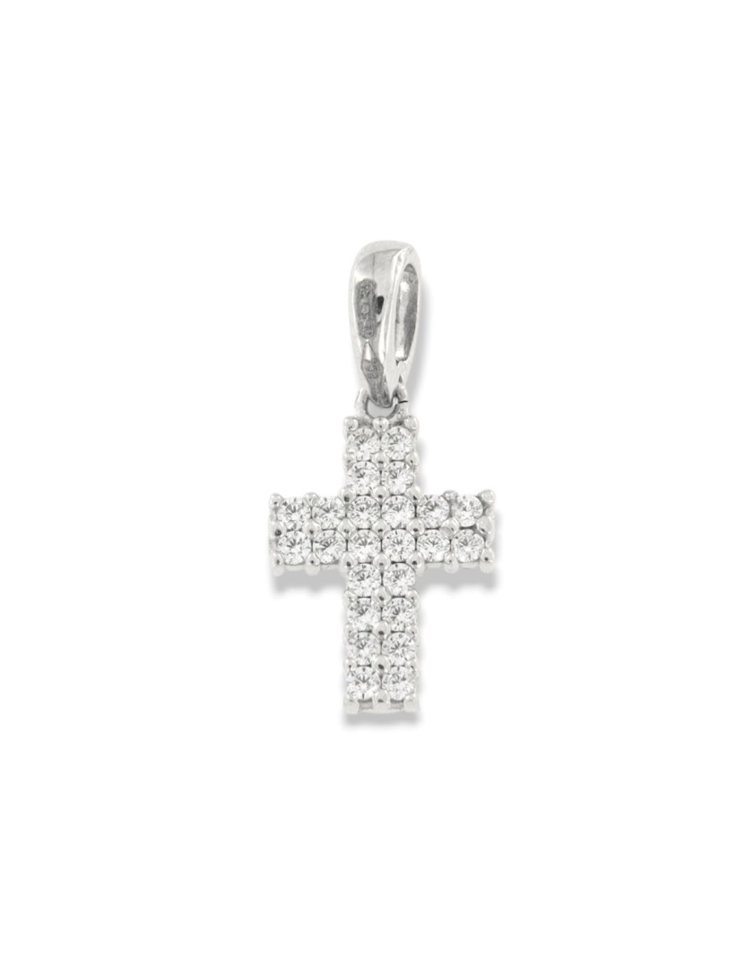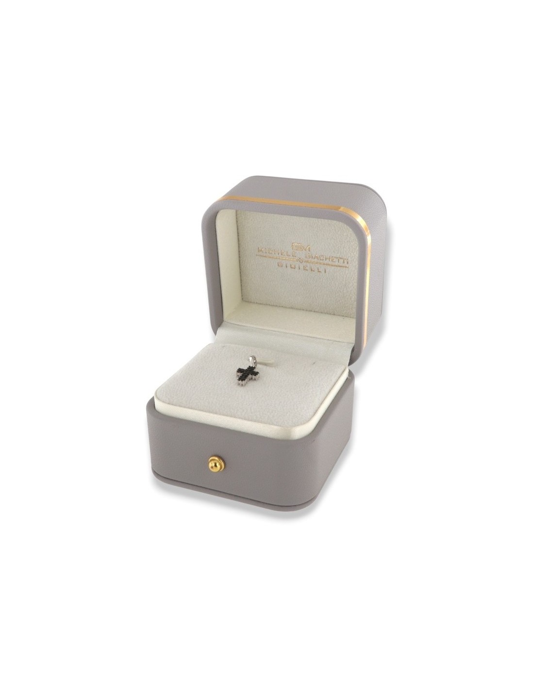 Ciondolo Oro Bianco Croce Zirconi Neri e Bianchi