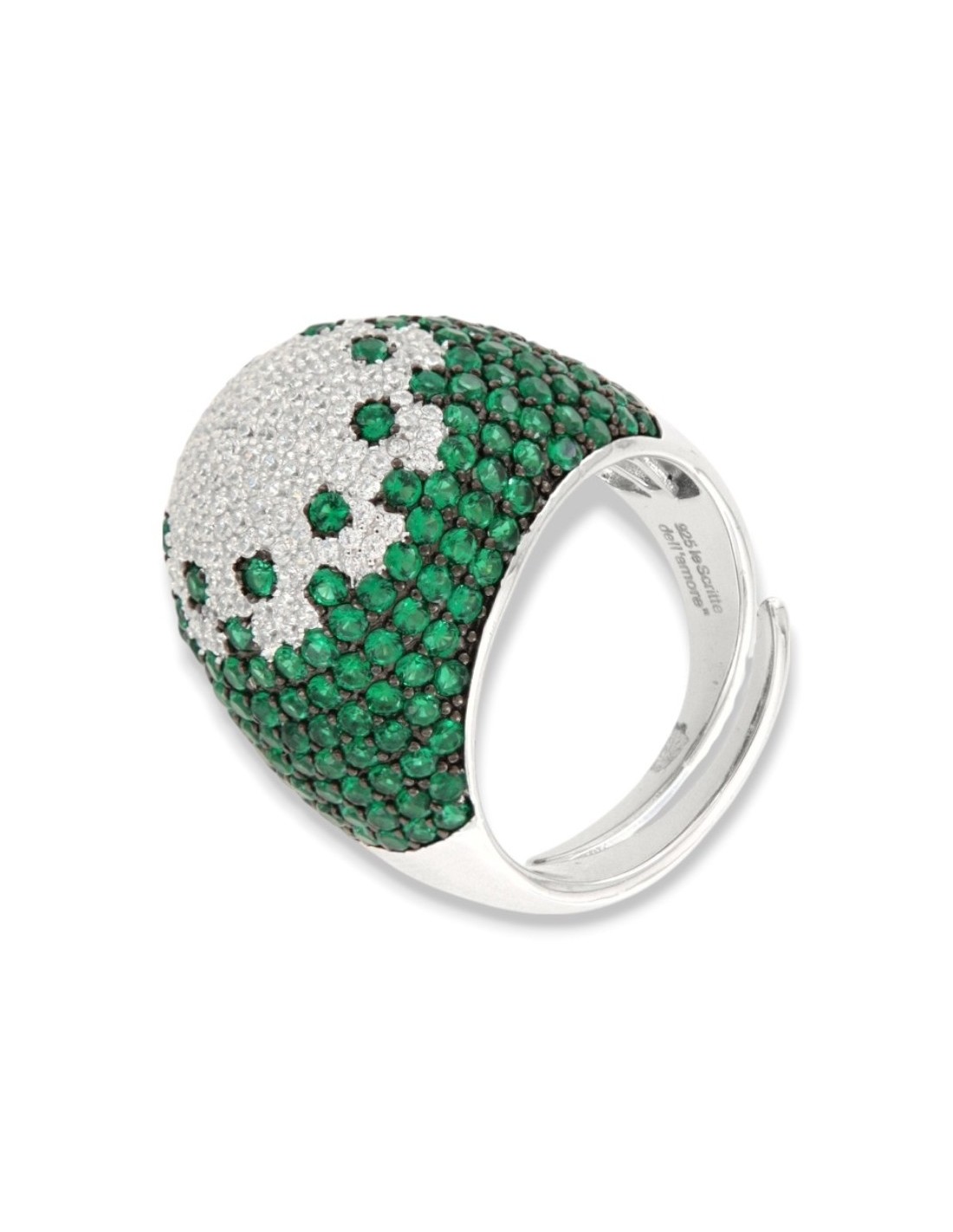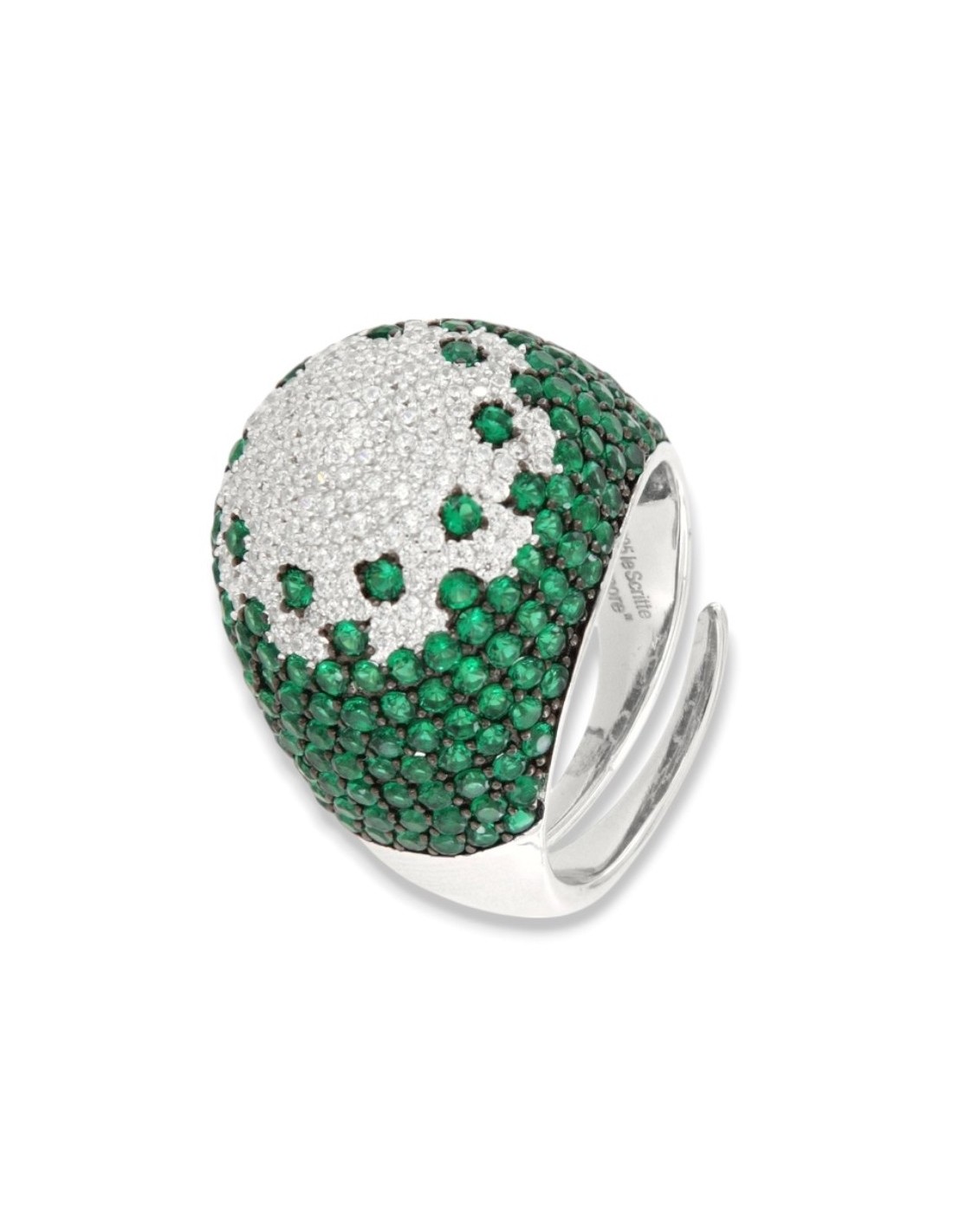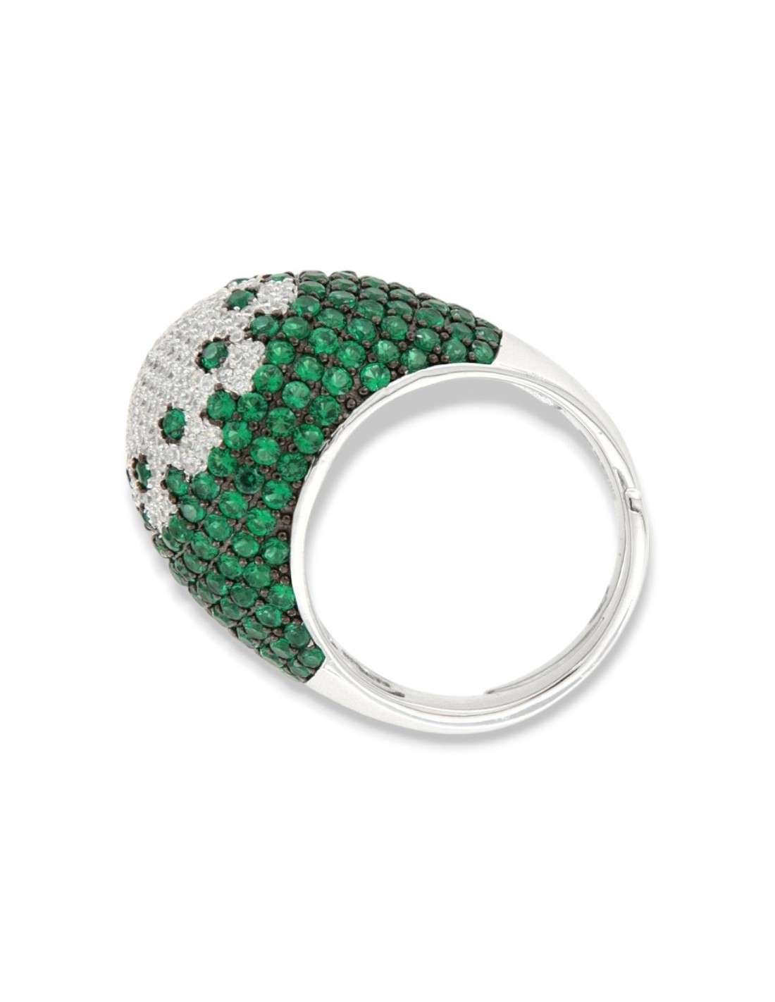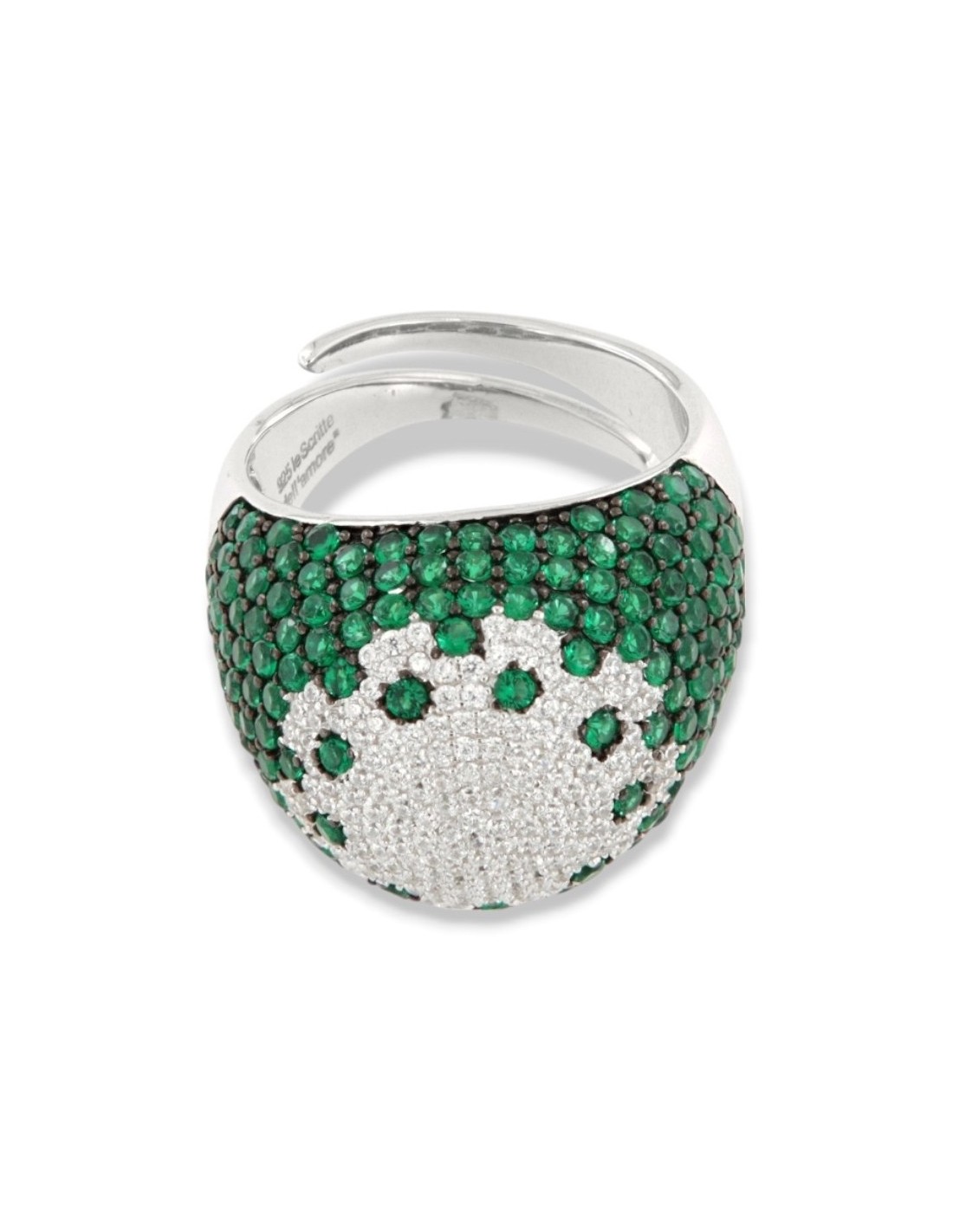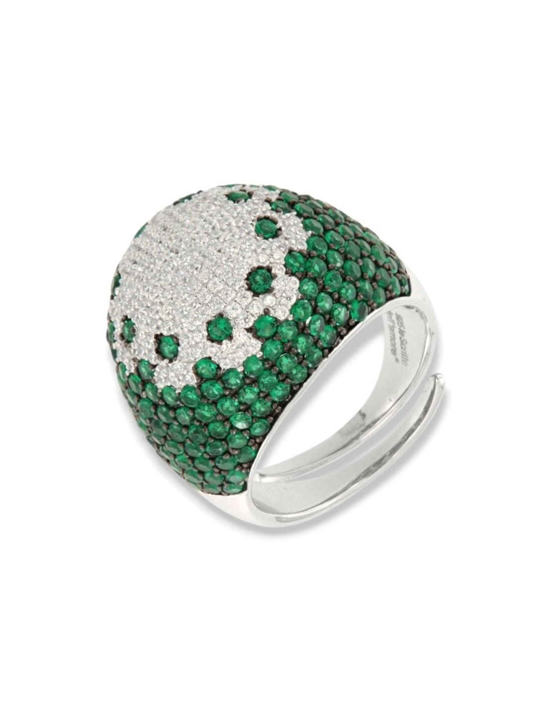 Anello Argento Rodiato Fascione Bombato Verde