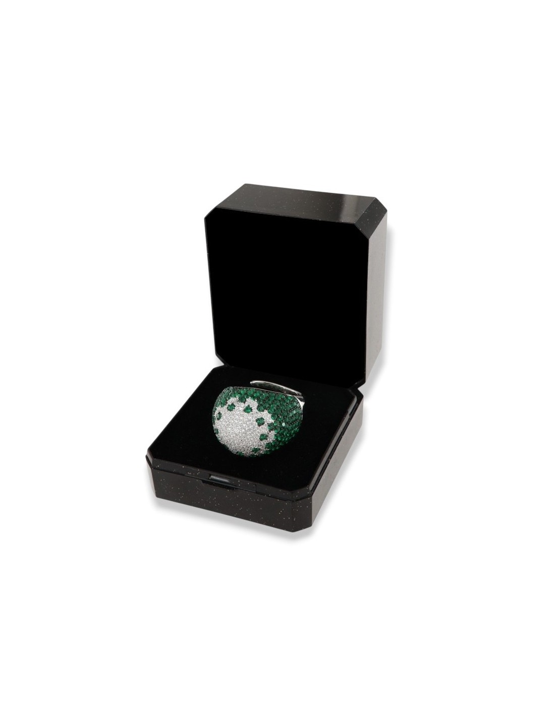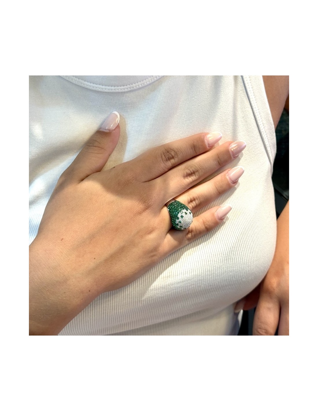 •MATERIALE: l'anello è realizzato interamente in argento 925‰ Rodiato (trattamento brillantante contro l'annerimento) modello fascione bombato pavettato composto da Zirconia Cubica o pietre CZ verdi e bianche, con taglio di alta qualità simile al taglio Brillante del Diamante;