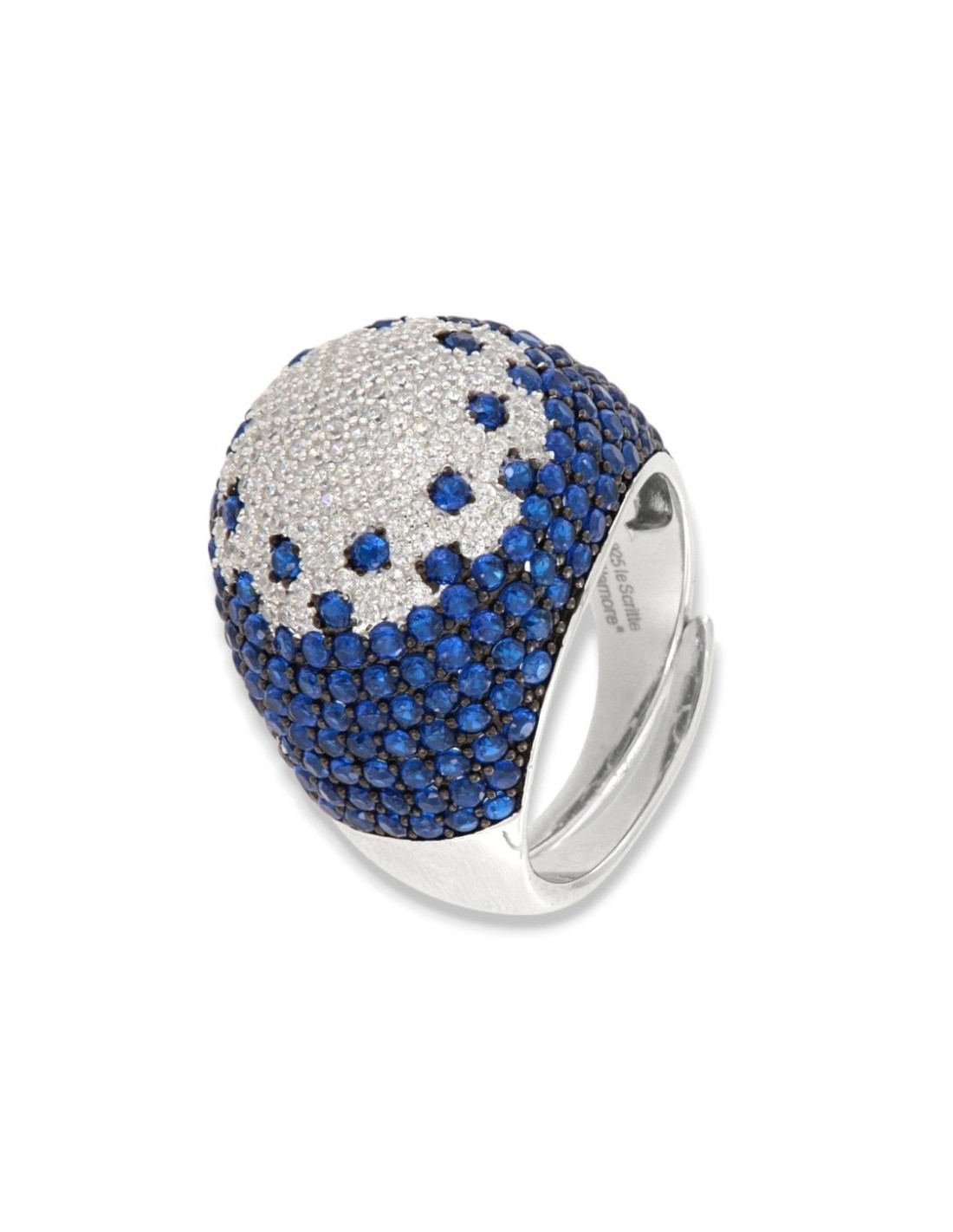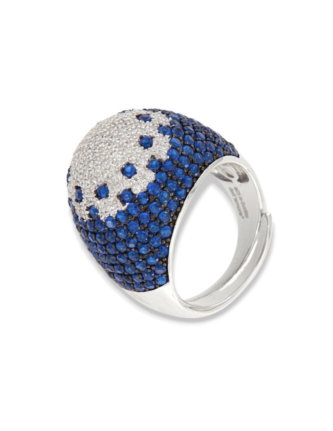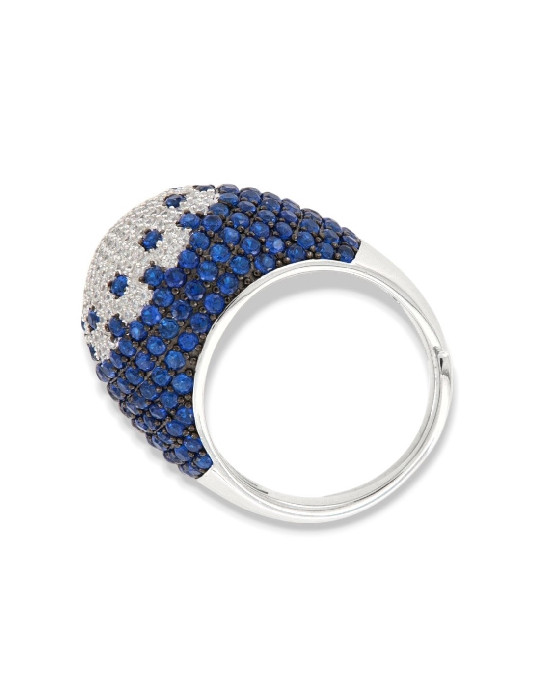 •MATERIALE: l'anello è realizzato interamente in argento 925‰ Rodiato (trattamento brillantante contro l'annerimento) modello fascione bombato pavettato composto da Zirconia Cubica o pietre CZ blu e bianche, con taglio di alta qualità simile al taglio Brillante del Diamante;