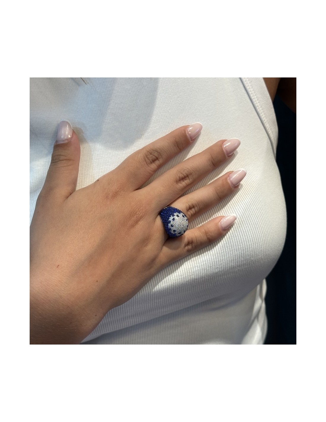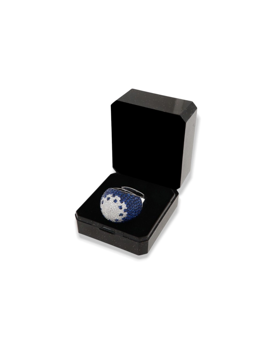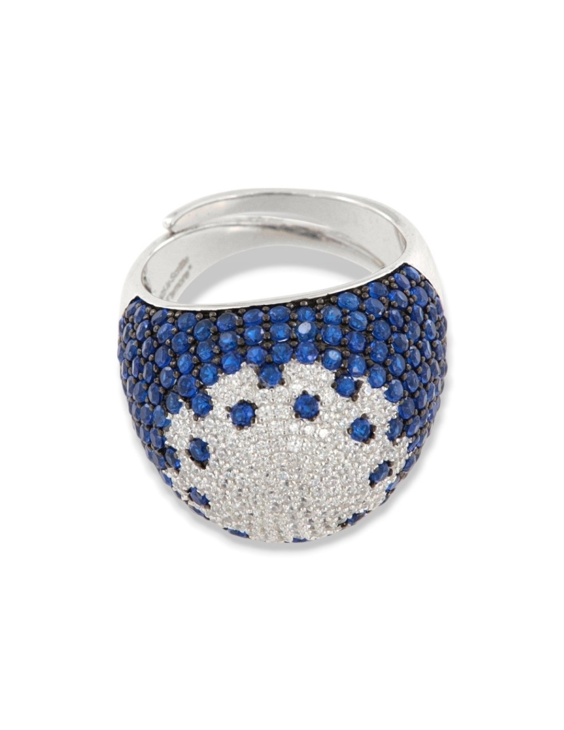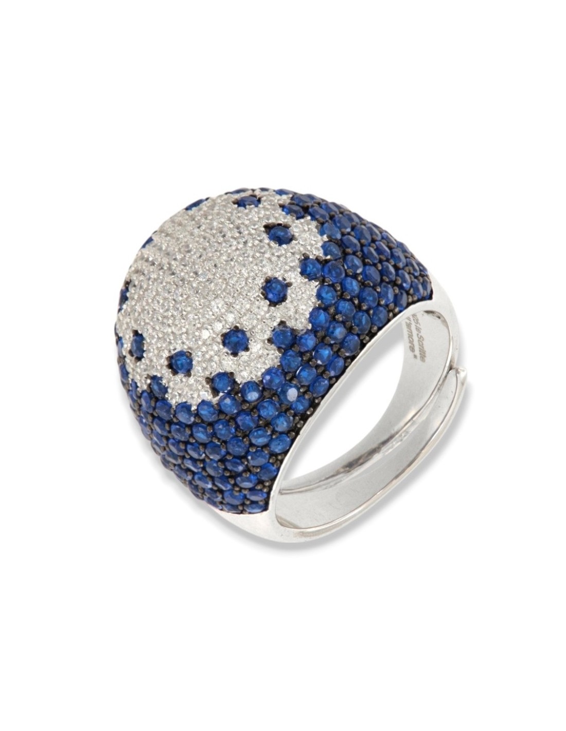 •MATERIALE: l'anello è realizzato interamente in argento 925‰ Rodiato (trattamento brillantante contro l'annerimento) modello fascione bombato pavettato composto da Zirconia Cubica o pietre CZ blu e bianche, con taglio di alta qualità simile al taglio Brillante del Diamante;