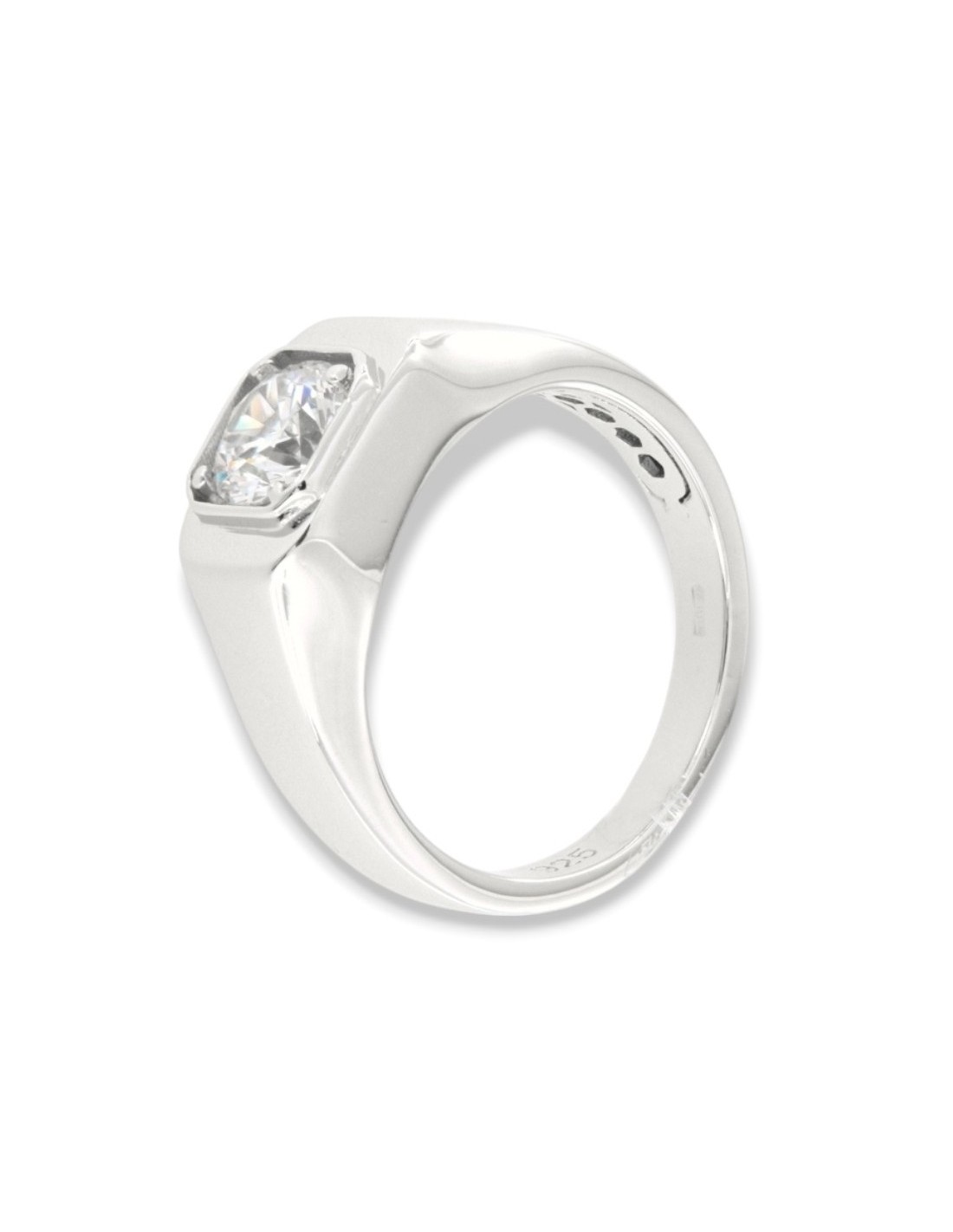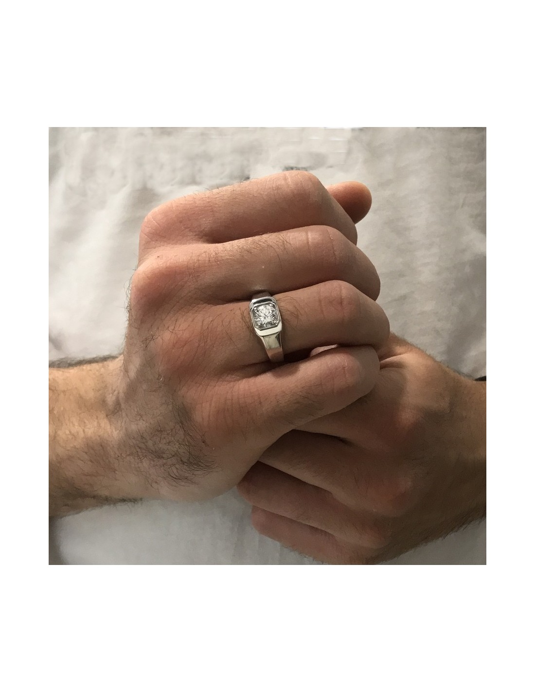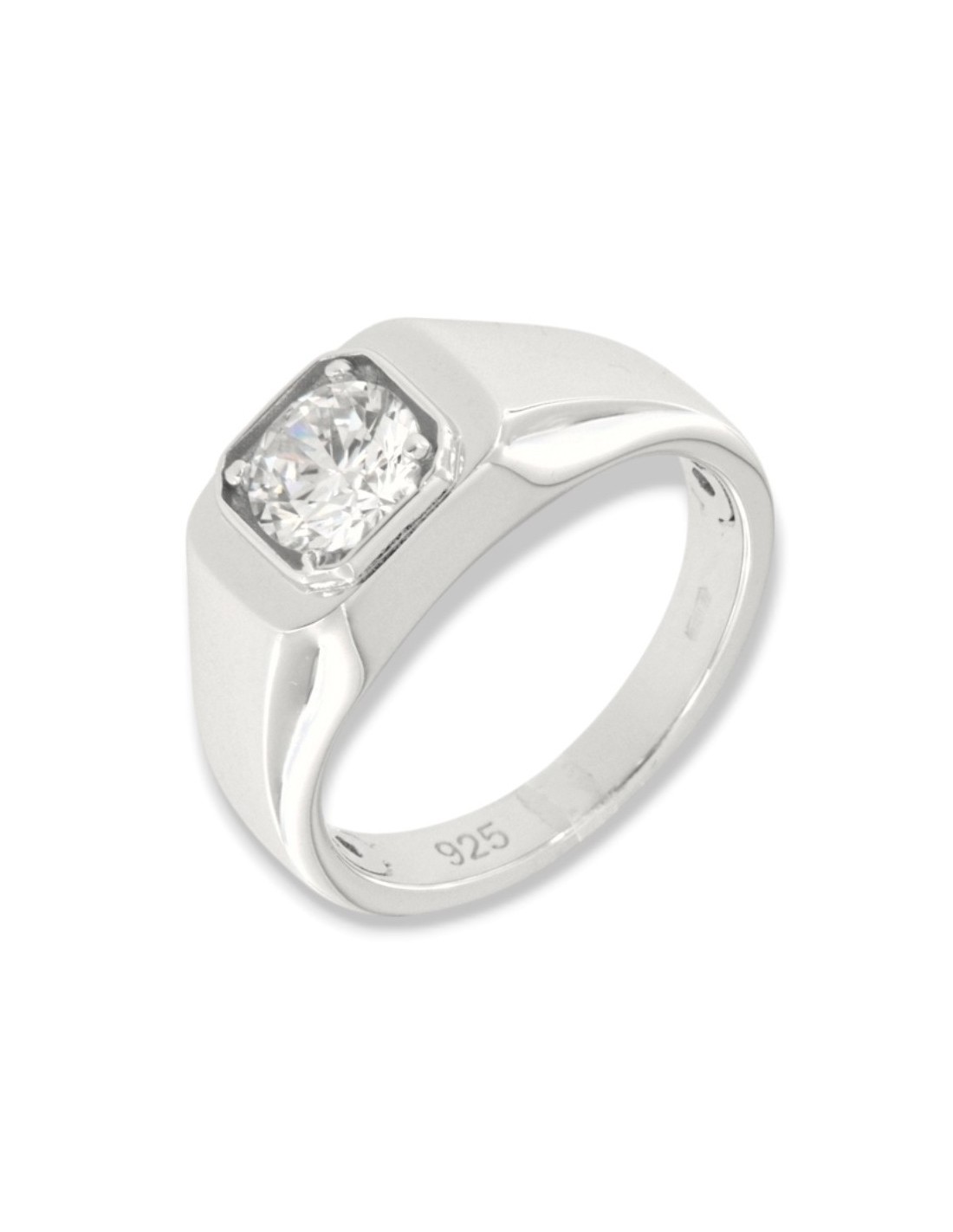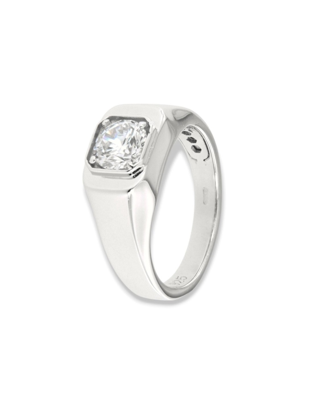 •MATERIALE: l'anello è realizzato interamente in argento 925‰ Rodiato (trattamento brillantante contro l'annerimento) modello chevalier composto da uno Zirconia Cubica o pietra CZ bianca centrale, con taglio di alta qualità simile al taglio Brillante del Diamante;