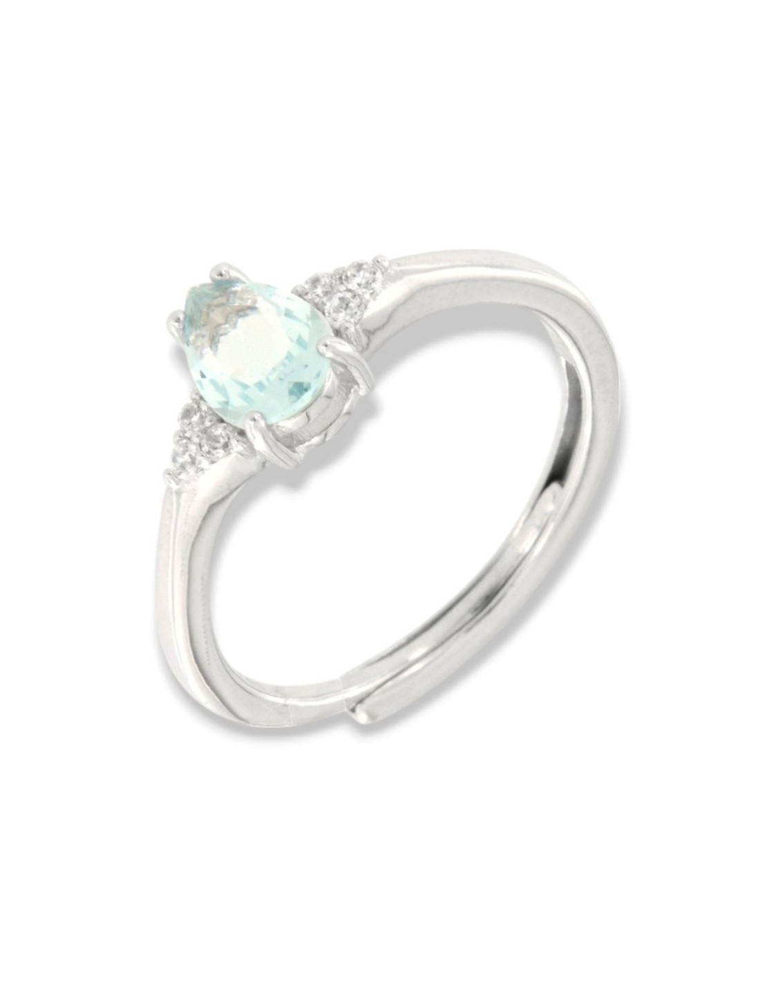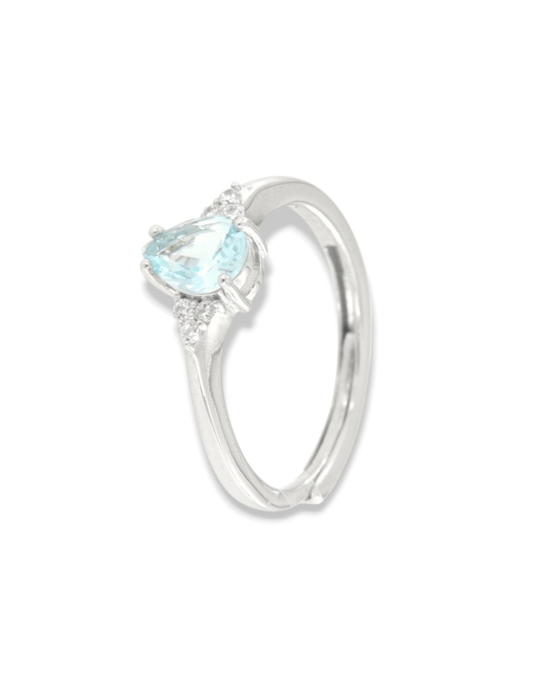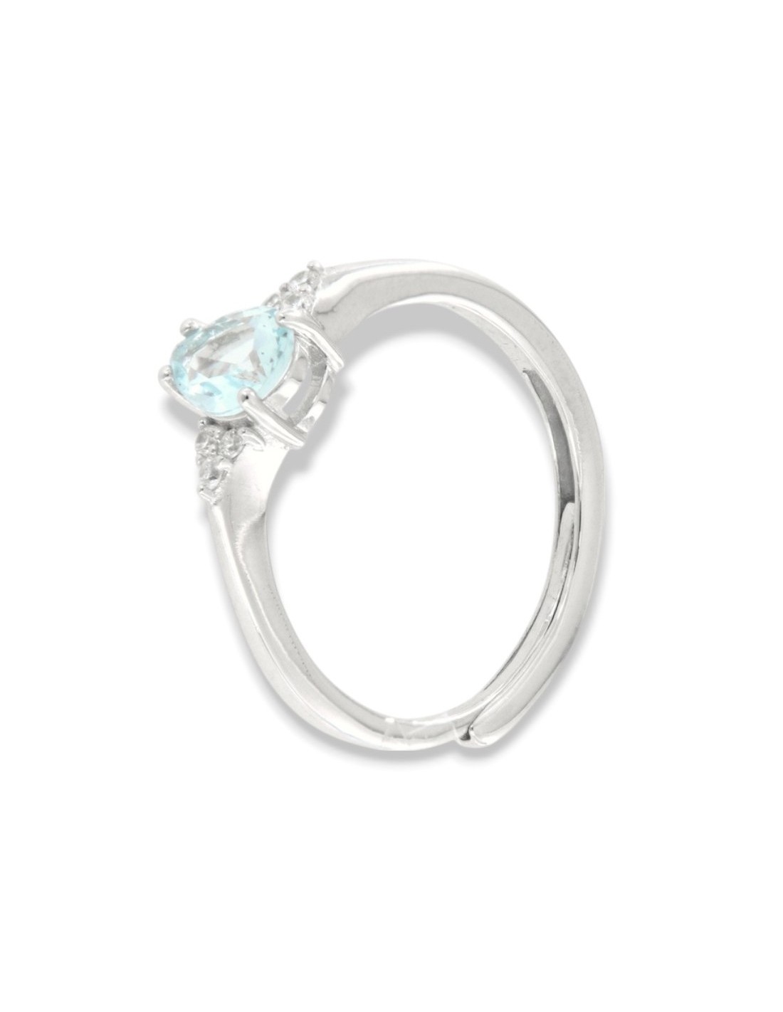 Anello Argento Rodiato Principessa Celeste Goccia Zirconi Laterali
