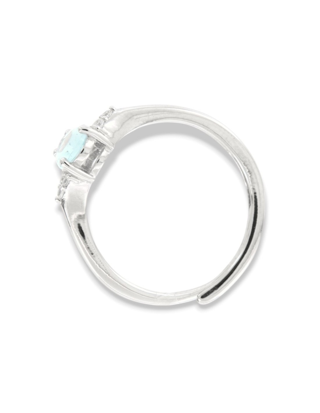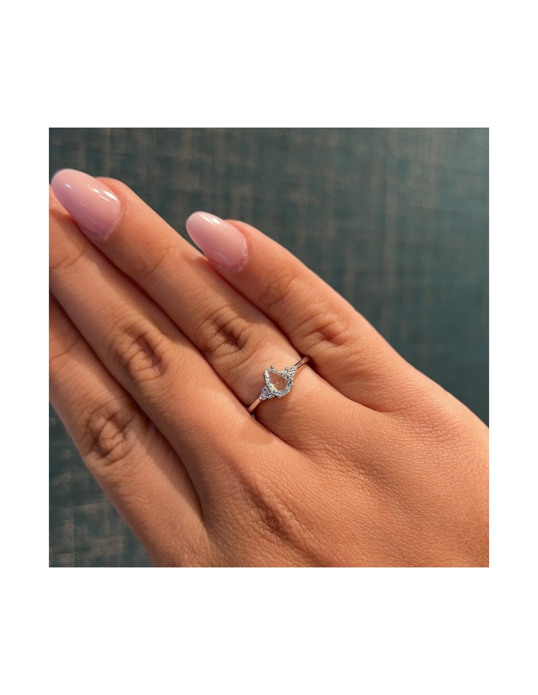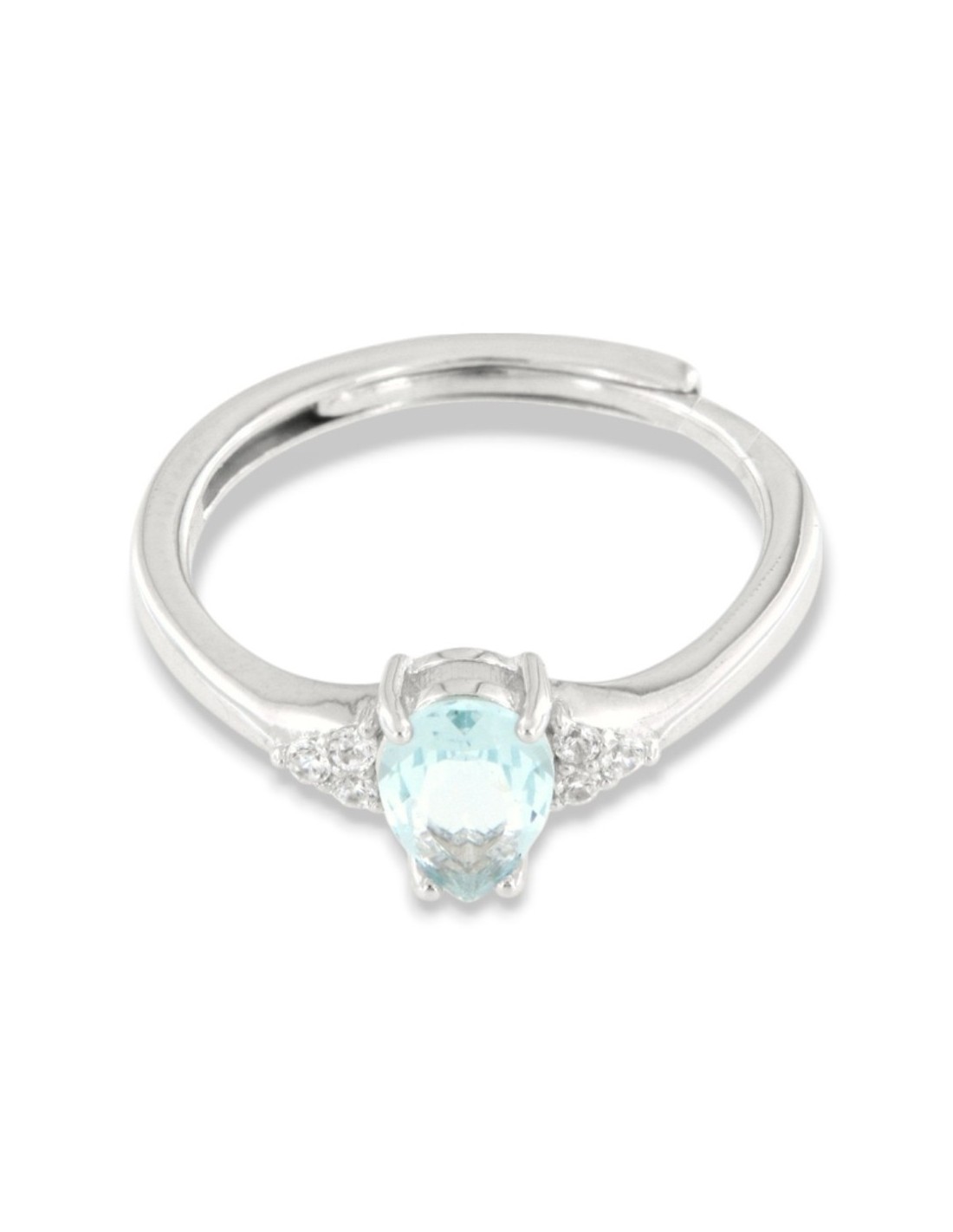 Anello Argento Rodiato Principessa Celeste Goccia Zirconi Laterali