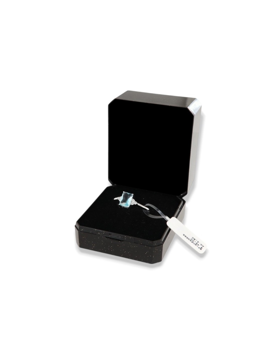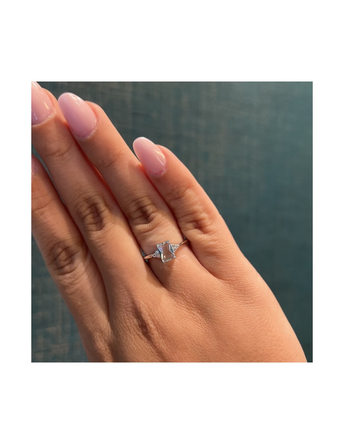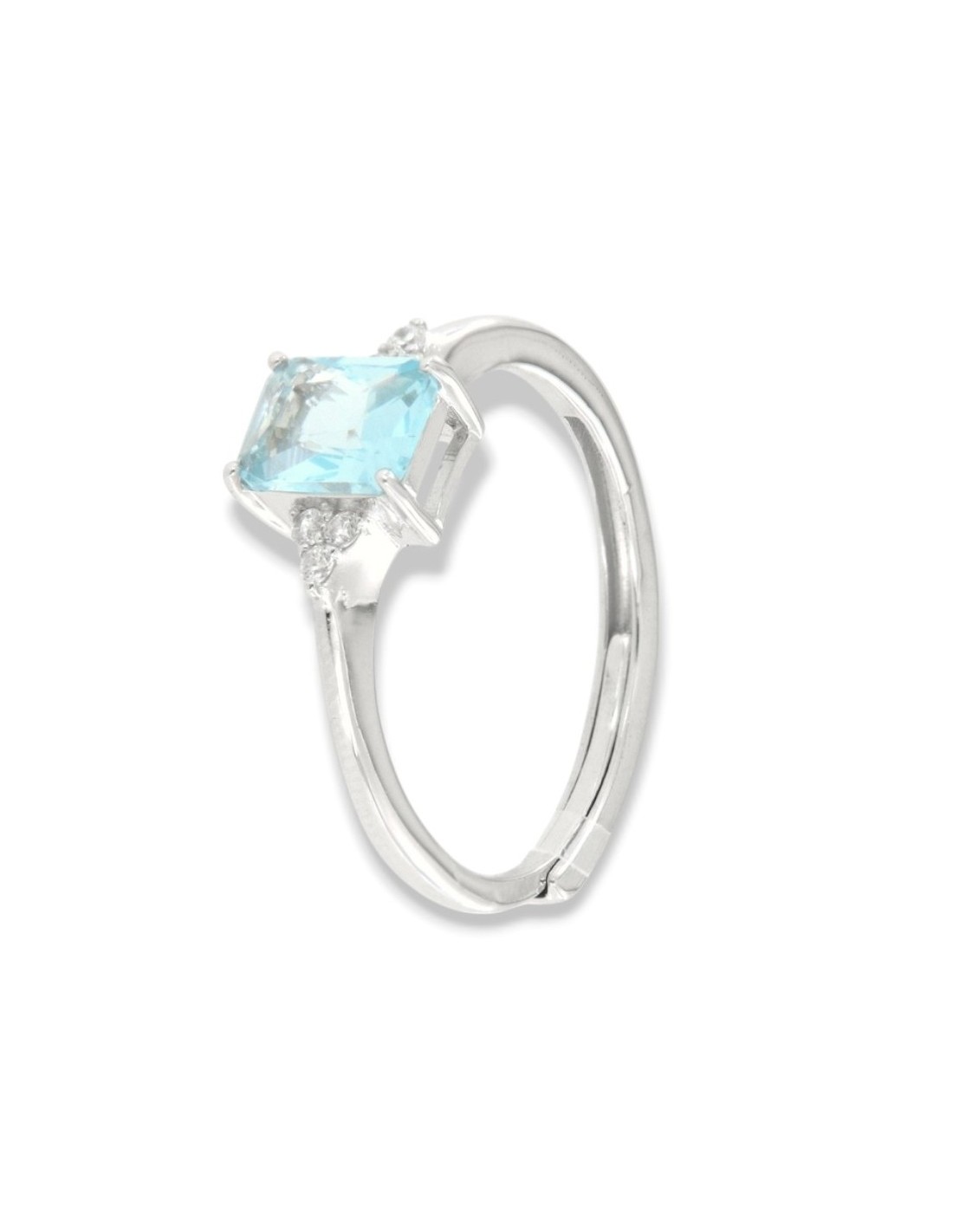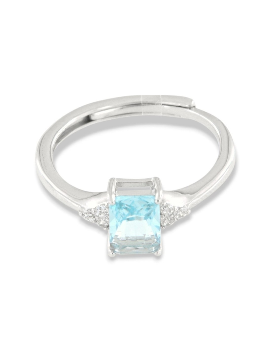 Anello Argento Rodiato Principessa Celeste Rettangolare Zirconi Laterali