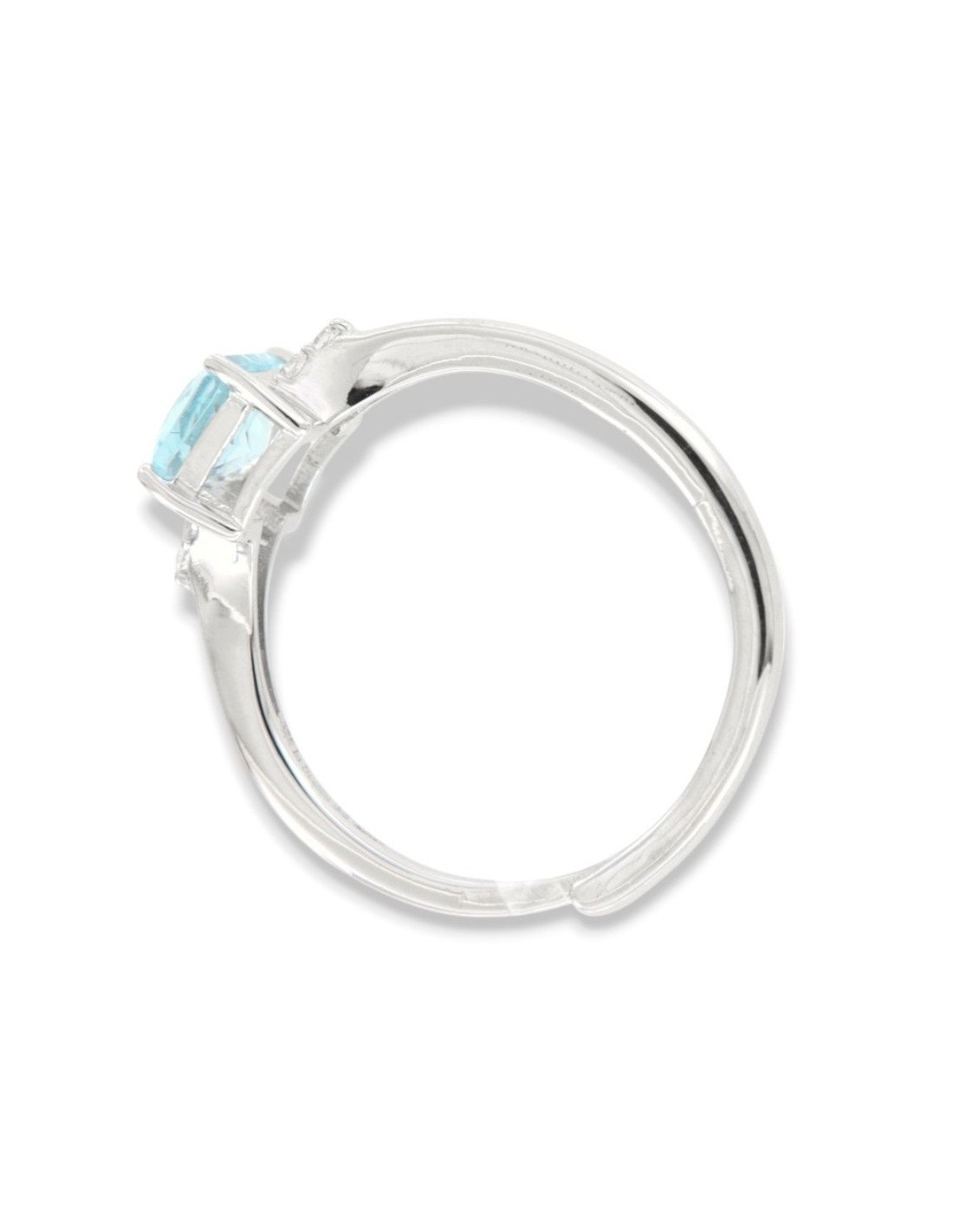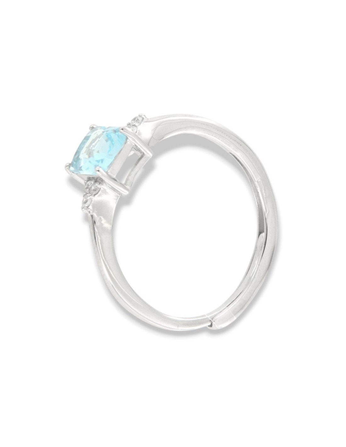 •MATERIALE: l'anello è realizzato interamente in argento 925‰ Rodiato (trattamento brillantante contro l'annerimento) modello principessa composto da uno Zirconia Cubica o pietra CZ centrale celeste dal diametro di 7x5 millimetri, affiancata da altre pietre cz bianche con taglio di alta qualità simile al taglio Brillante del Diamante;