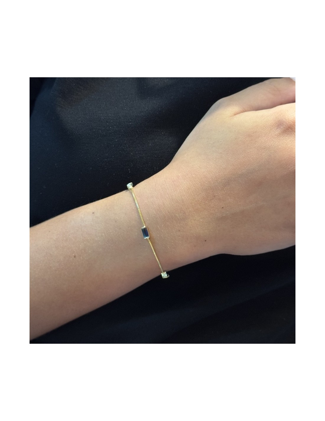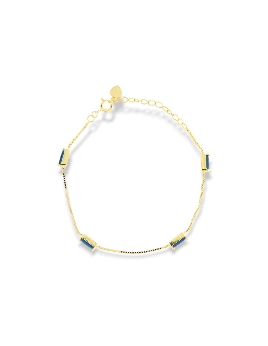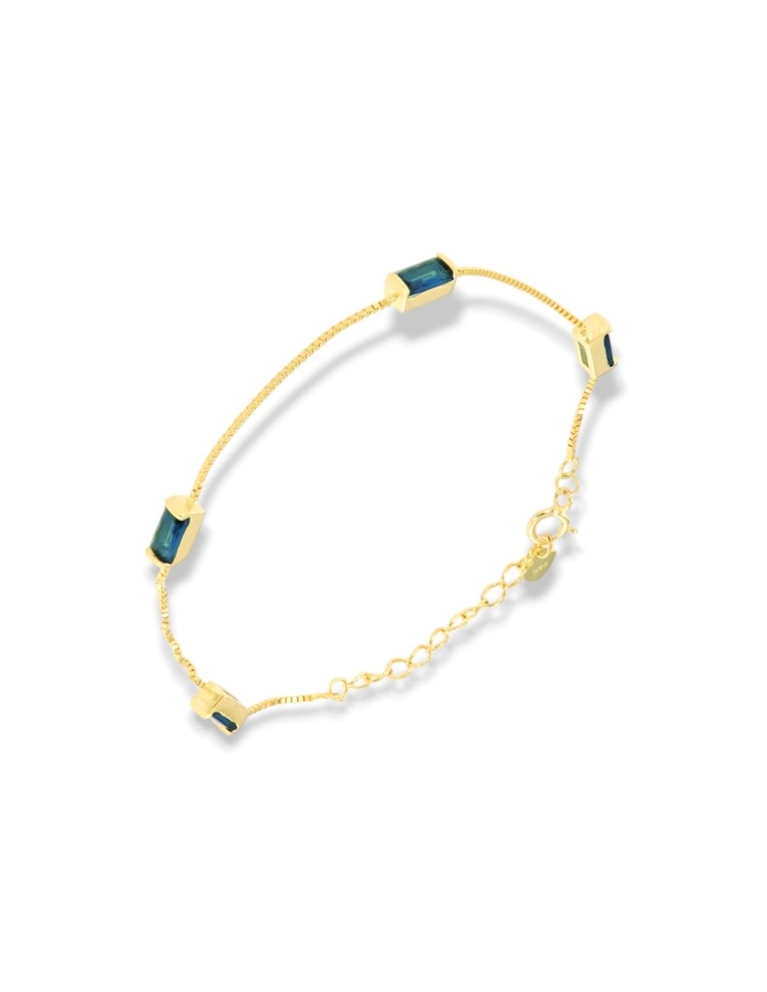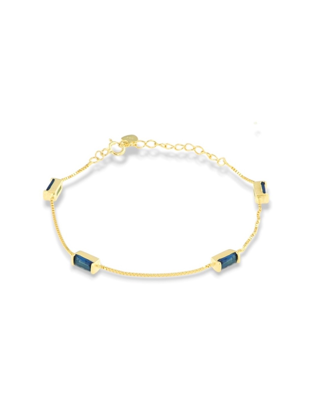 •MATERIALE: il bracciale è realizzato interamente in argento 925‰ Dorato (trattamento brillantante contro l'annerimento) modello maglia veneziana con l'applicazione di Zirconia Cubica o pietre CZ blu, misura 7x3 millimetri con taglio di alta qualità simile al taglio Brillante del Diamante;