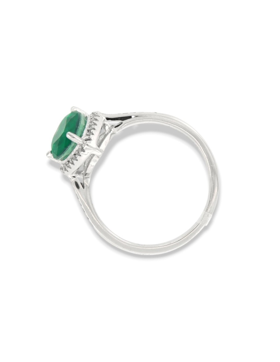 Anello Argento Rodiato Principessa Cuore Verde