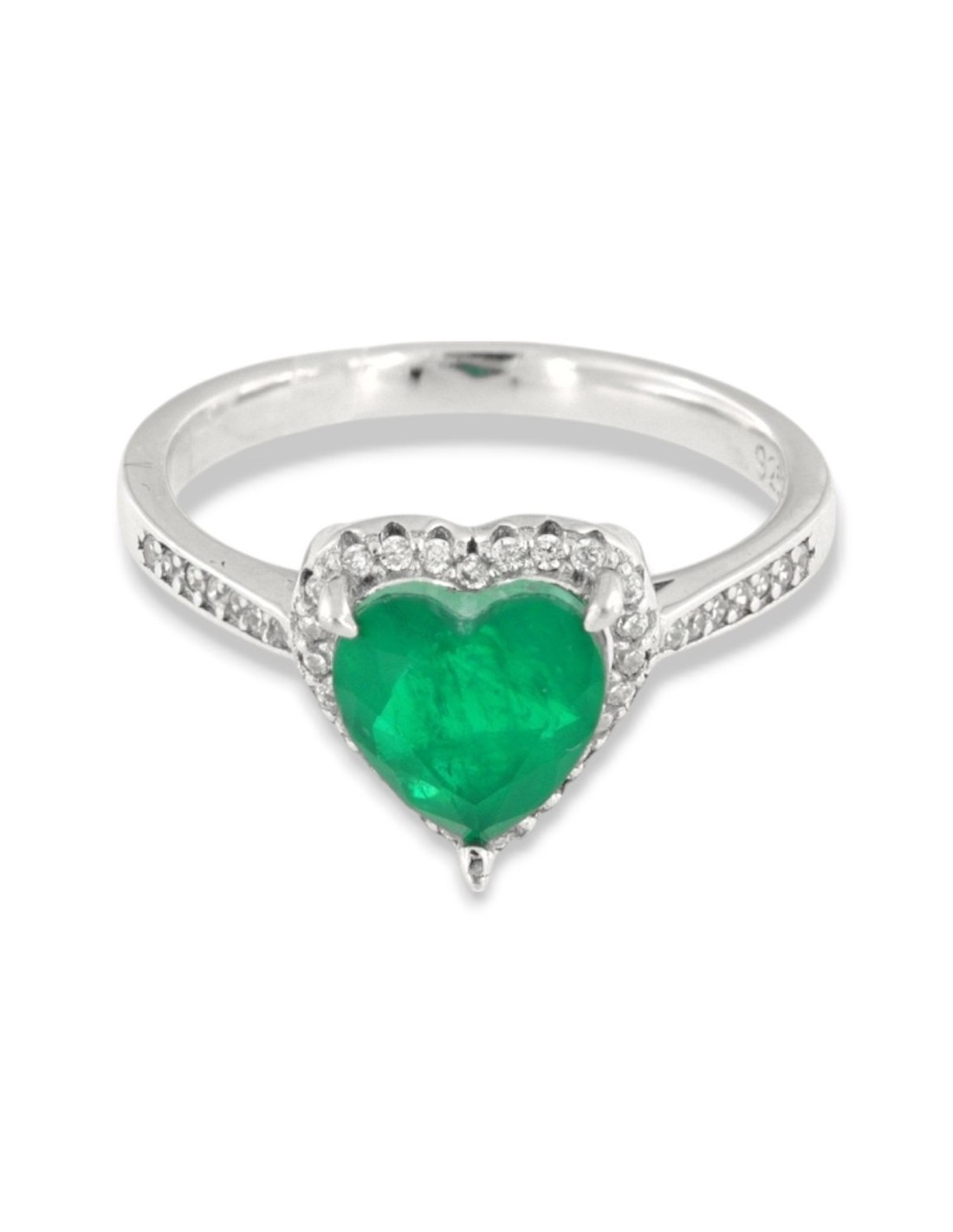 •MATERIALE: l'anello è realizzato interamente in argento 925‰ Rodiato (trattamento brillantante contro l'annerimento) composto da uno Zirconia Cubica verde a forma di cuore, circondato da altri zirconi bianchi, con taglio di alta qualità simile al taglio Brillante del Diamante;