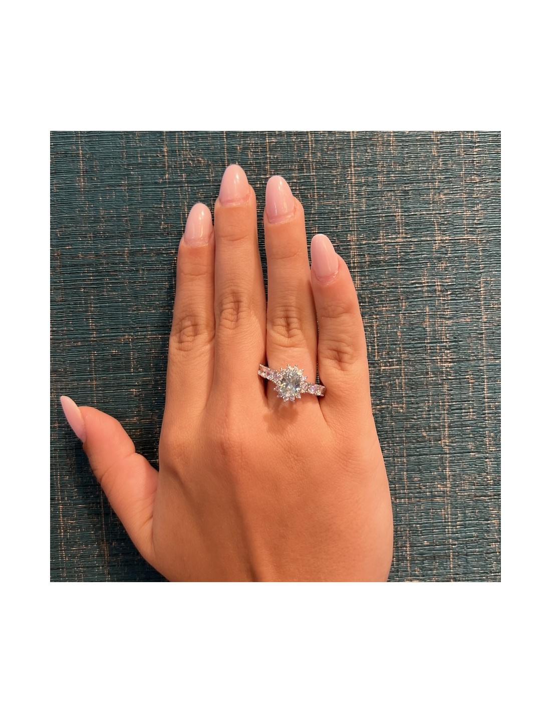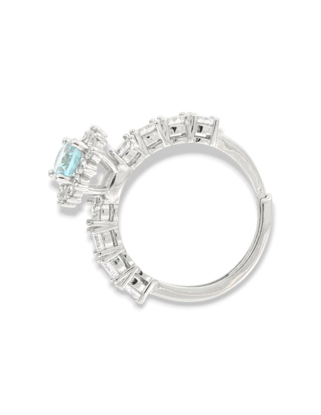 •INCASTONATURA: il montaggio delle pietre CZ sull'anello avviene con castoni a 4 griffe (2 punte condivise per pietra) che la serrano in modo permanente;
