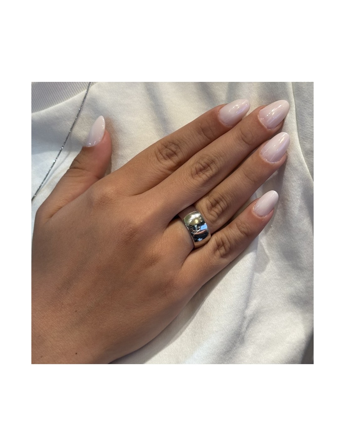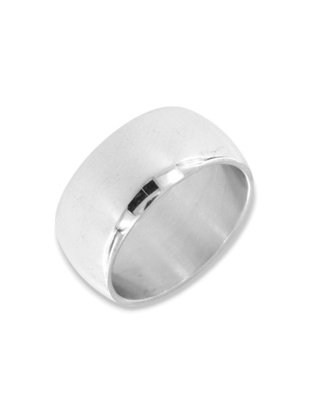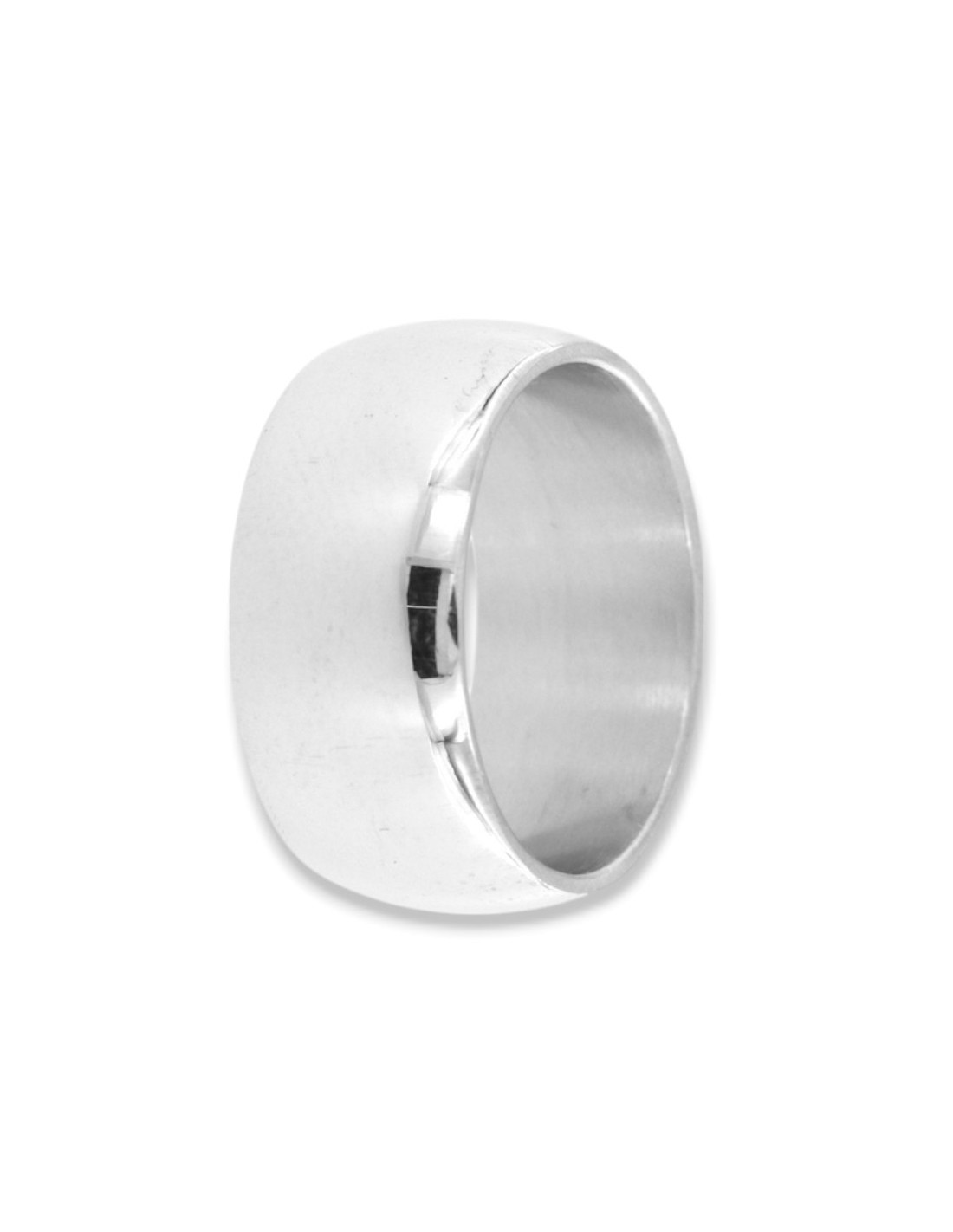 Anello Argento Rodiato Fascia Larga 10MM Bombata Liscia