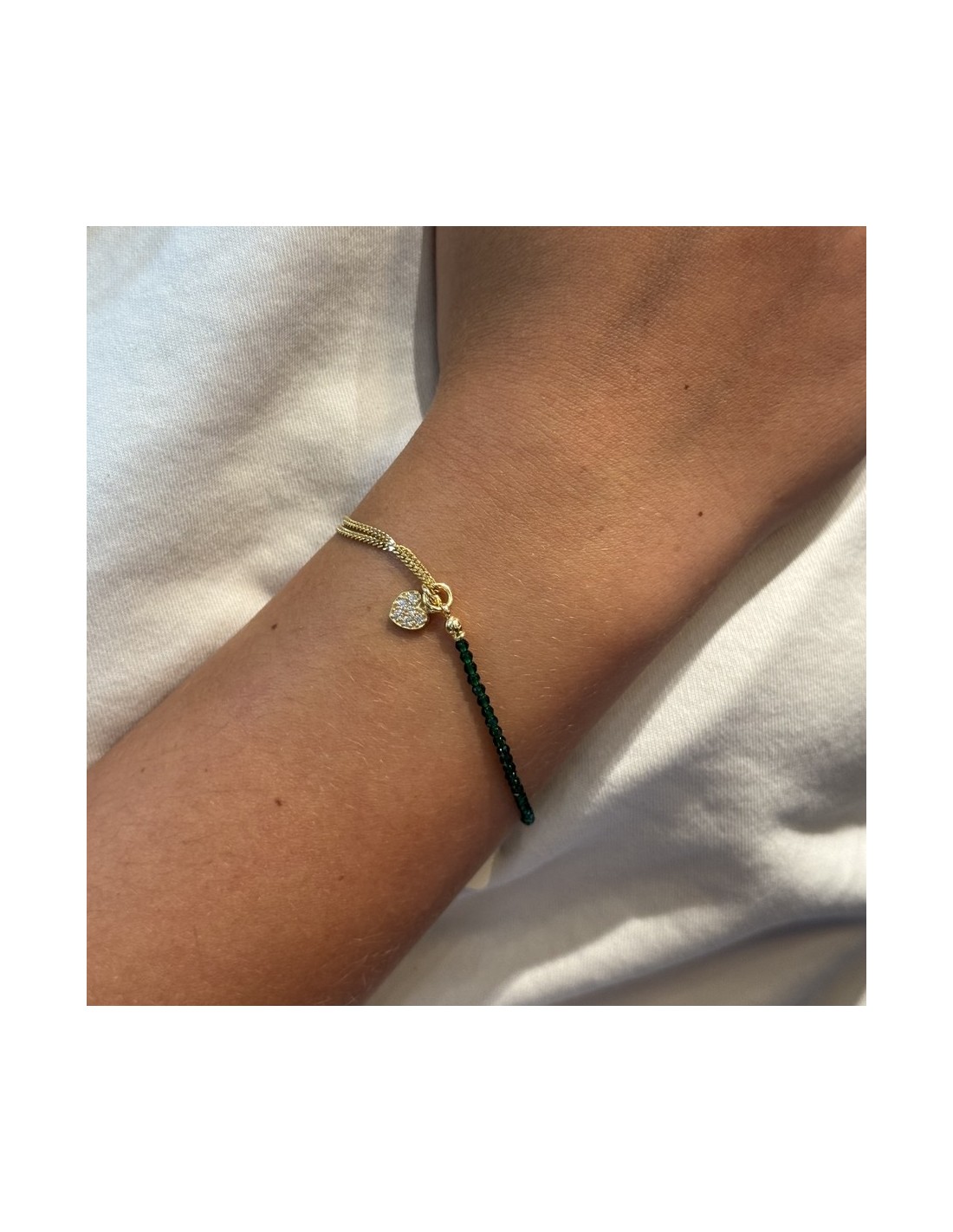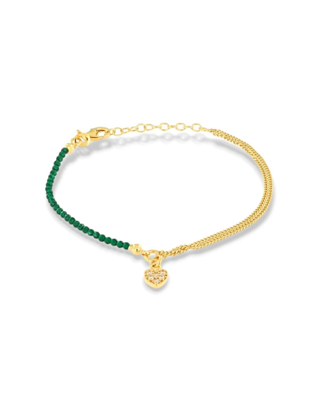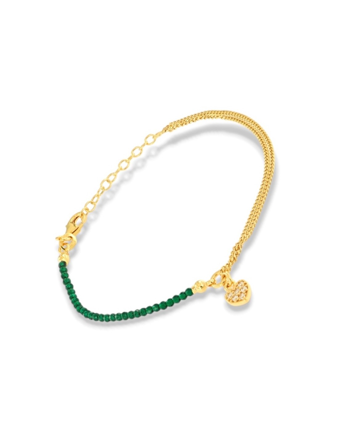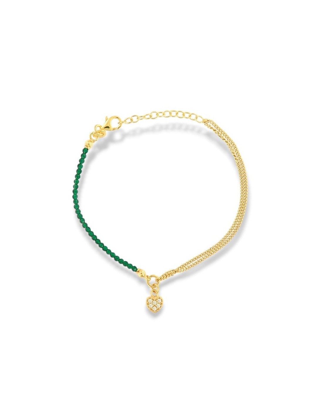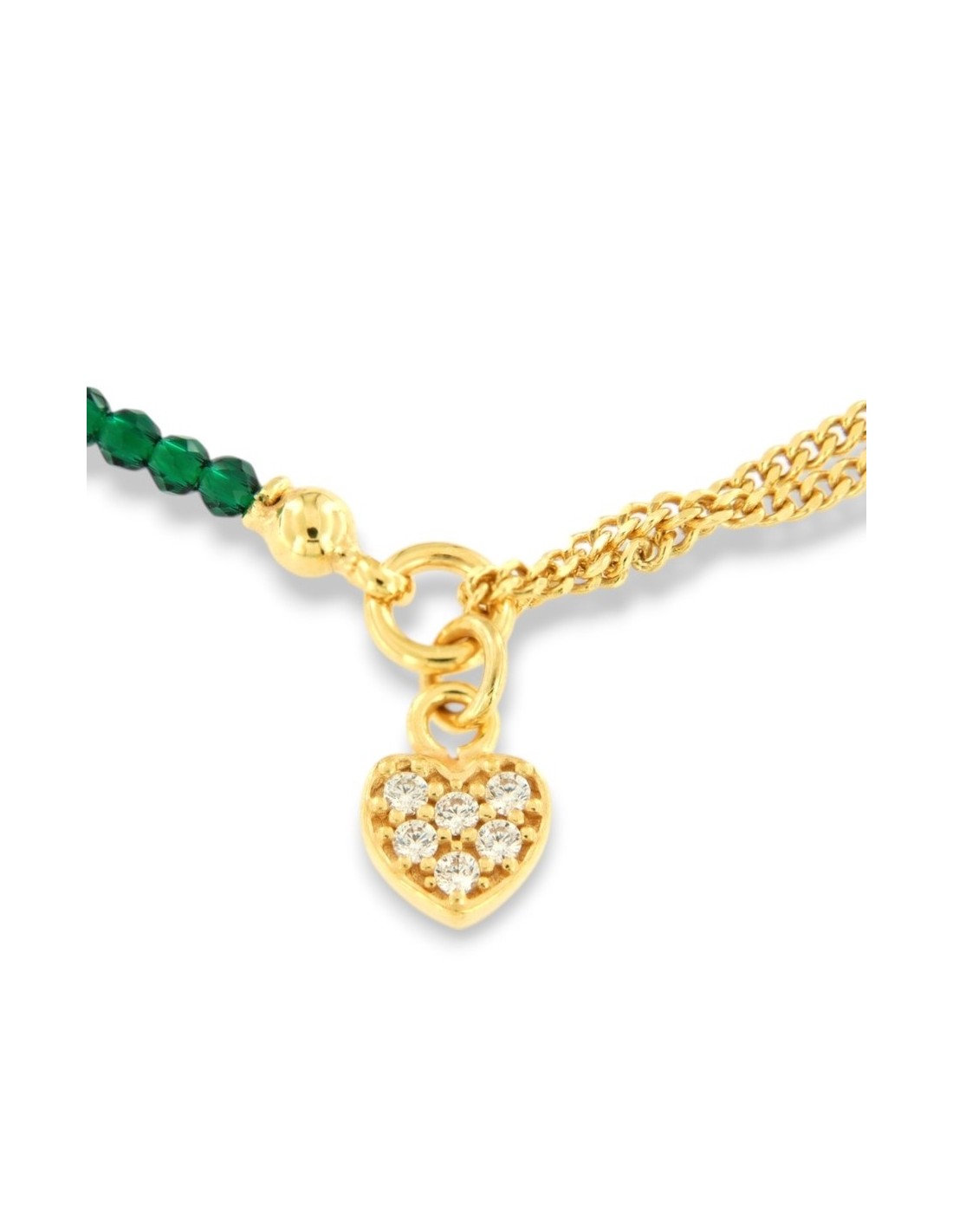 Bracciale Argento Dorato Sfere Verdi Cuore Zirconi