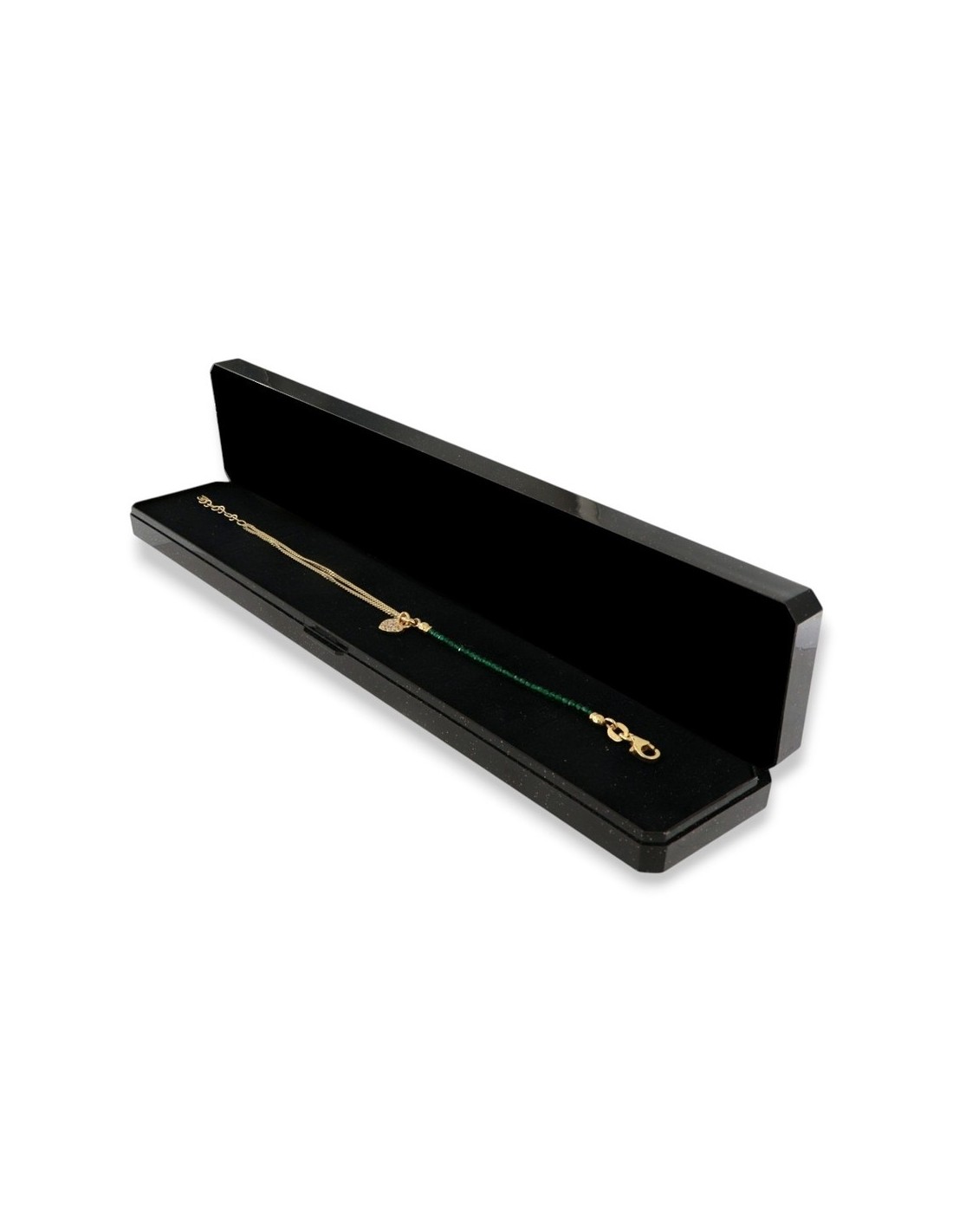 •MATERIALE: il bracciale è realizzato interamente in argento 925‰ Dorato (trattamento brillantante contro l'annerimento) modello catena con sfere sfaccettate verdi, con al centro un ciondolo a forma di cuore caratterizzato dall'applicazione di Zirconia Cubica o CZ bianchi, con taglio di alta qualità simile al taglio Brillante del Diamante;