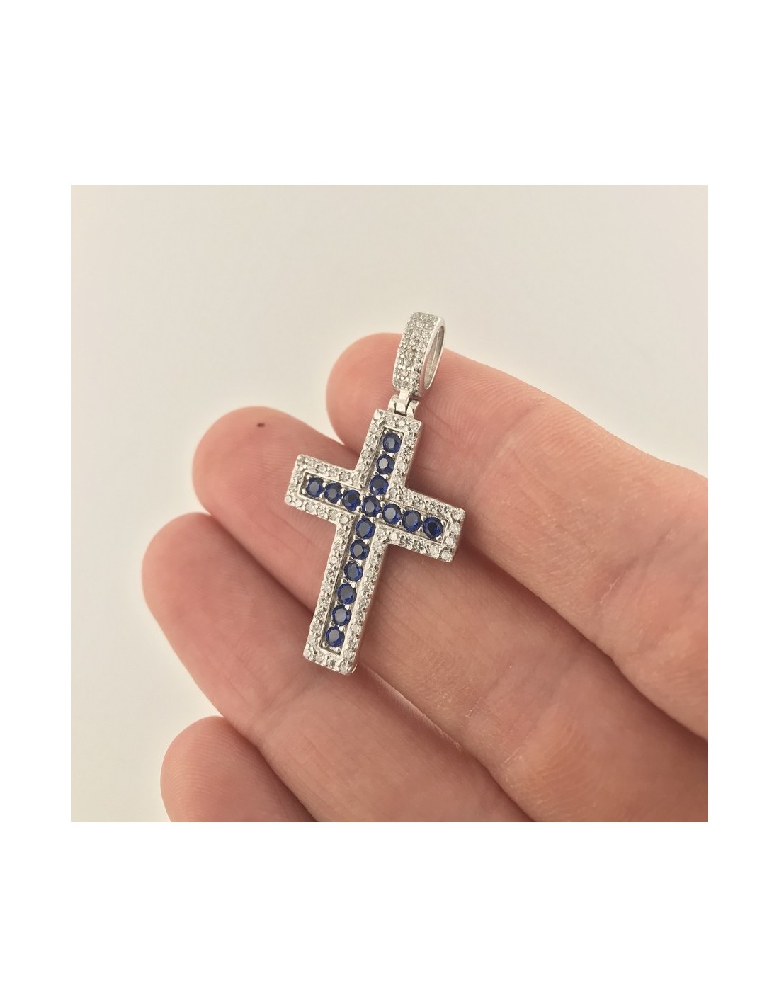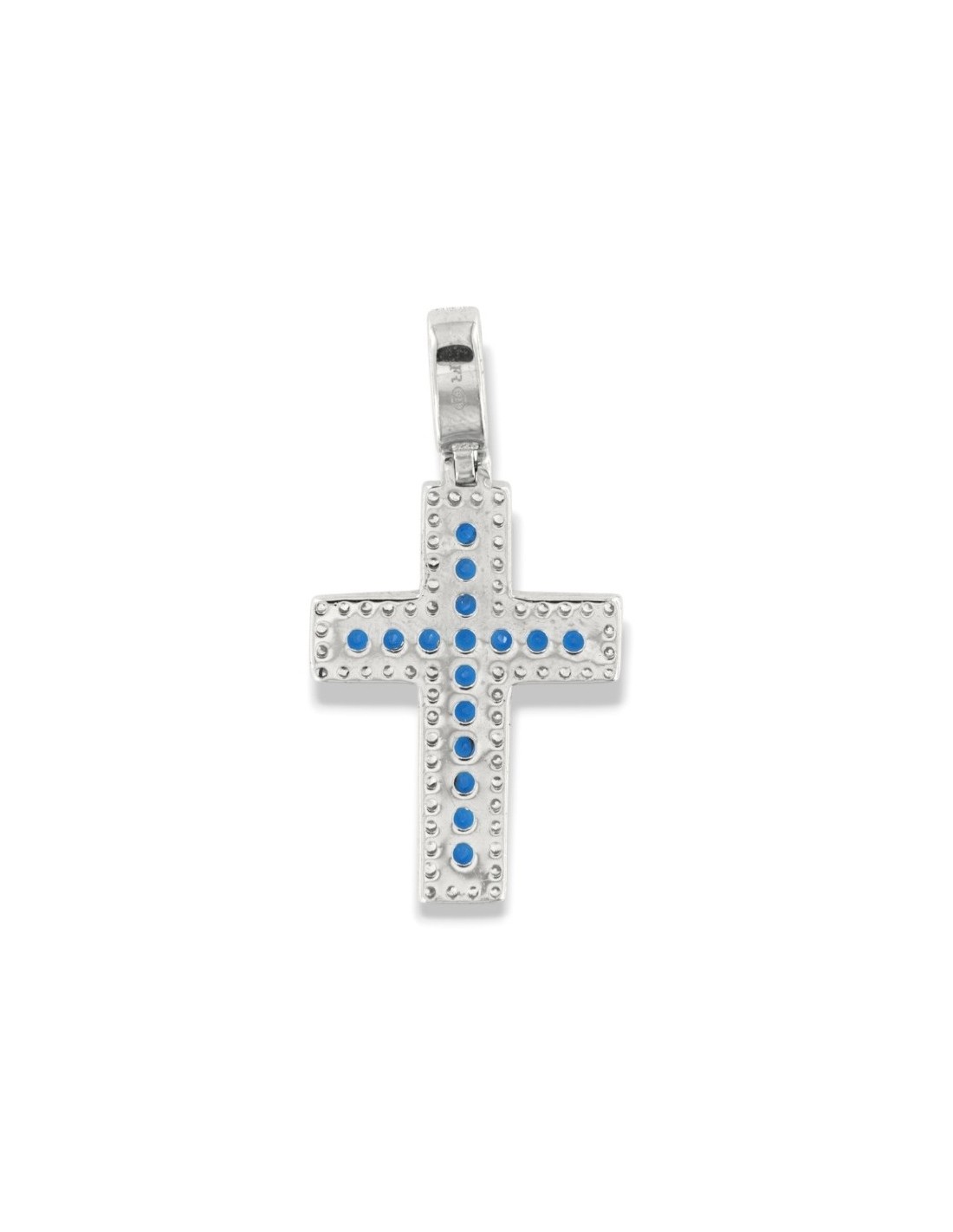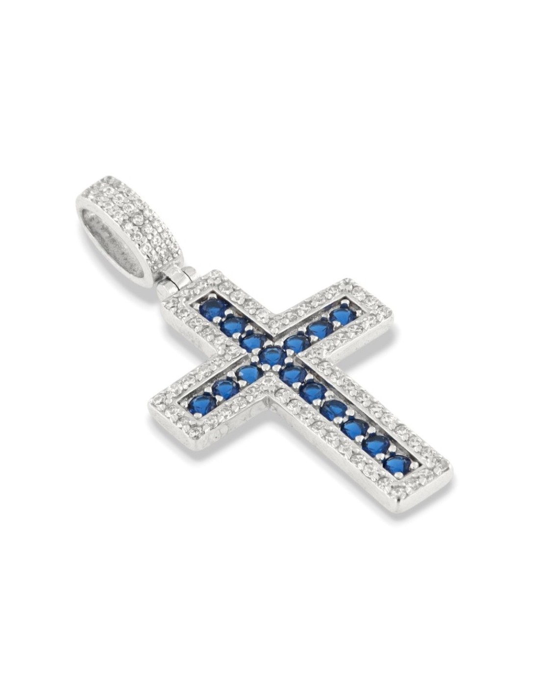 Ciondolo Argento Rodiato Croce Zirconi Blu Bianchi