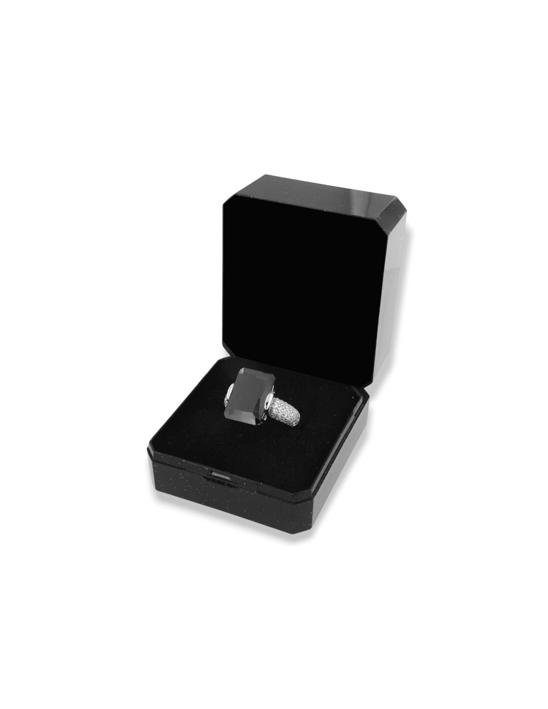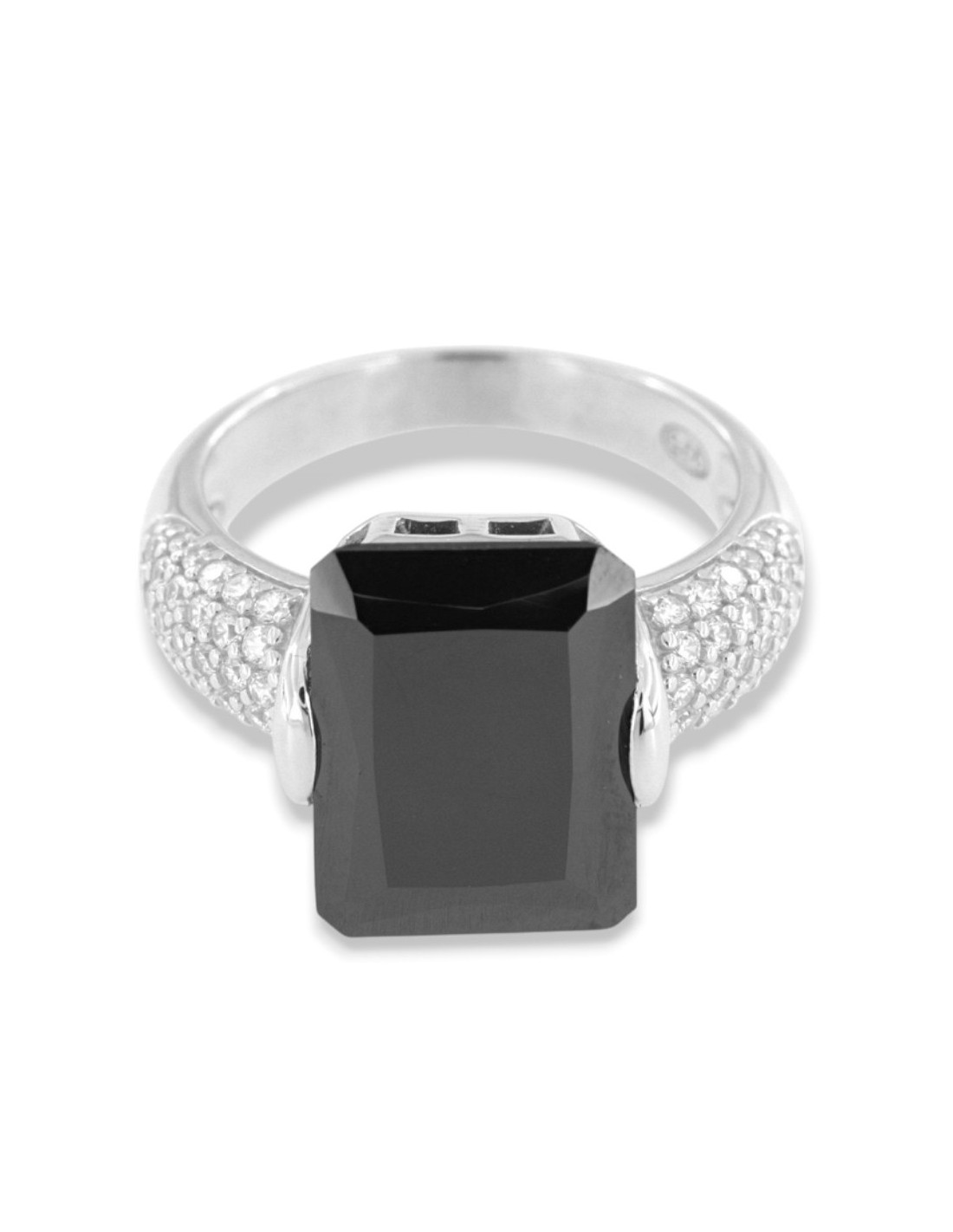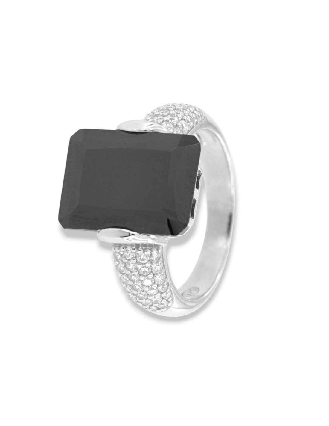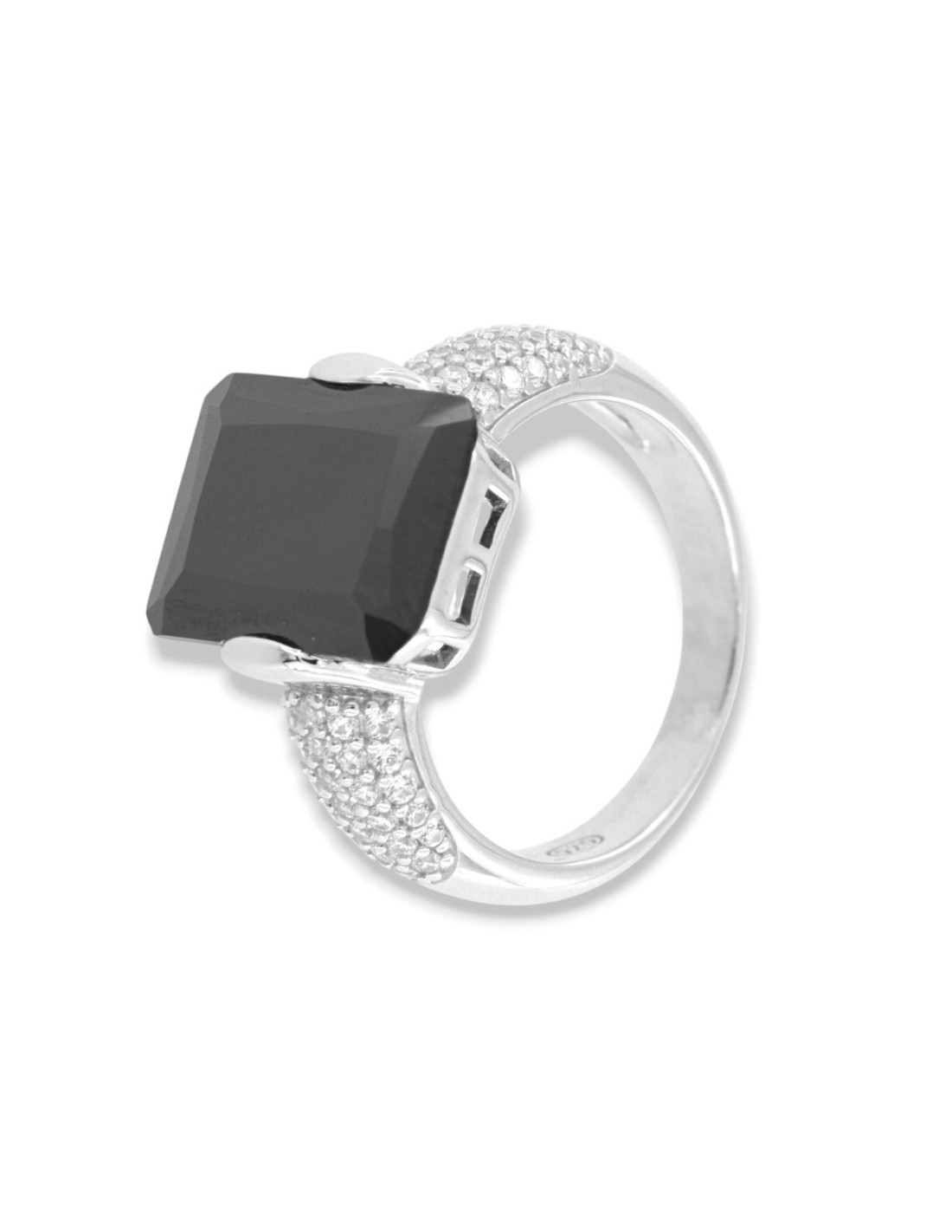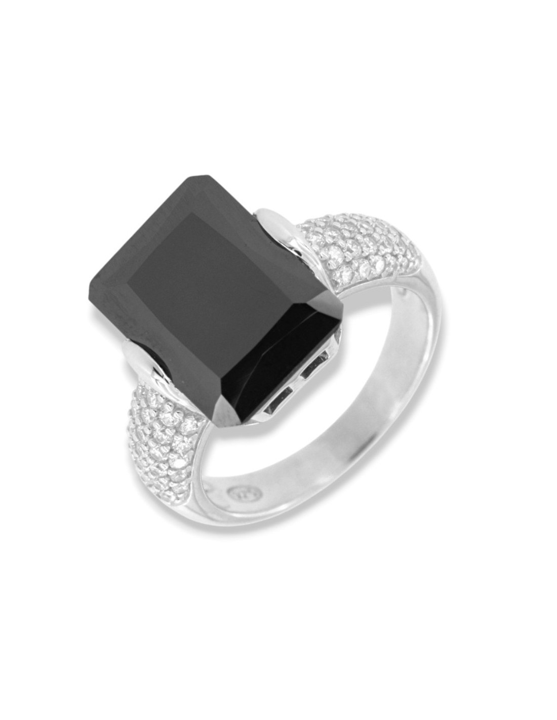 •MATERIALE: l'anello è realizzato interamente in argento 925‰ Rodiato (trattamento brillantante contro l'annerimento) modello Principessa composto da uno Zirconia Cubica o pietra CZ nera da 14 x 10 millimetri di diametro, con taglio di alta qualità simile al taglio Brillante del Diamante;