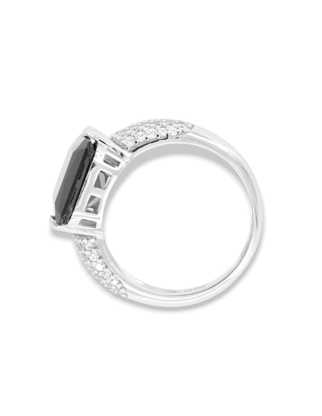 •INCASTONATURA: il montaggio delle pietre CZ sull'anello avviene con castoni a 4 griffe (2 punte condivise per pietra) che la serrano in modo permanente;