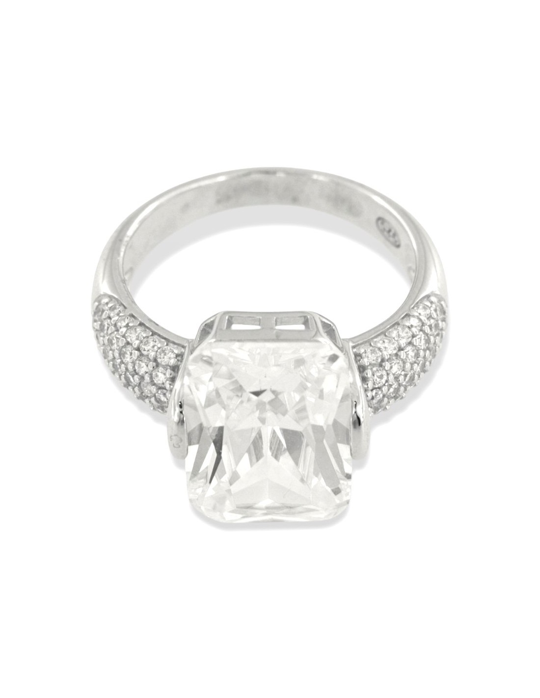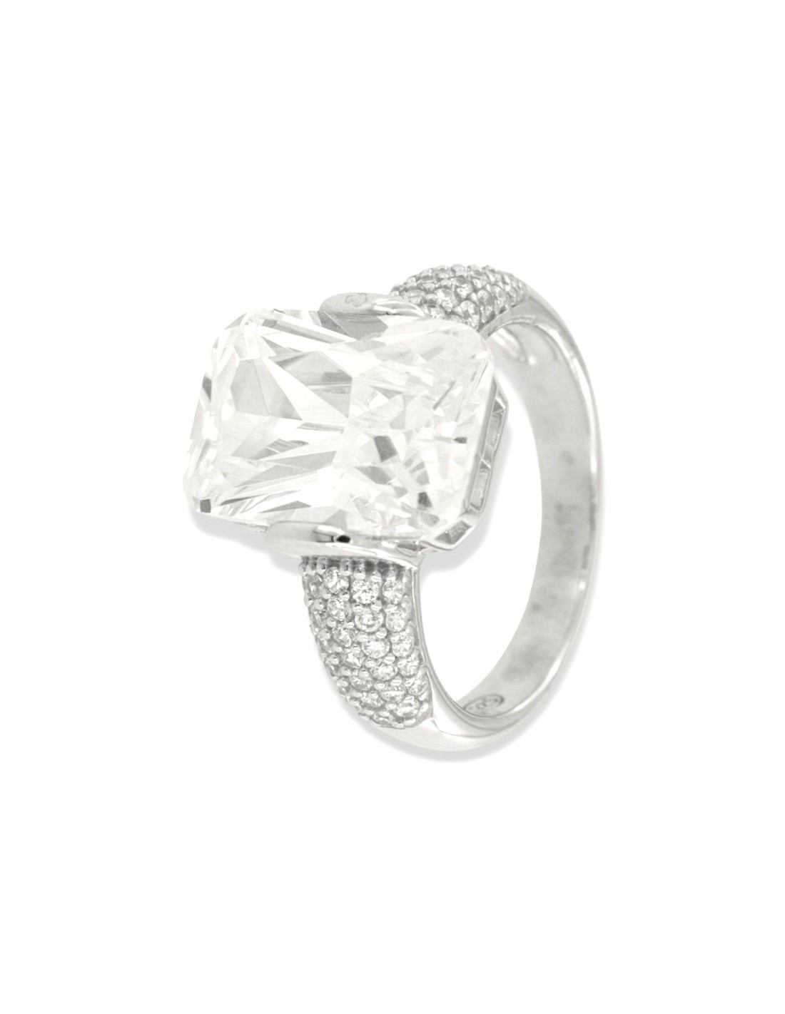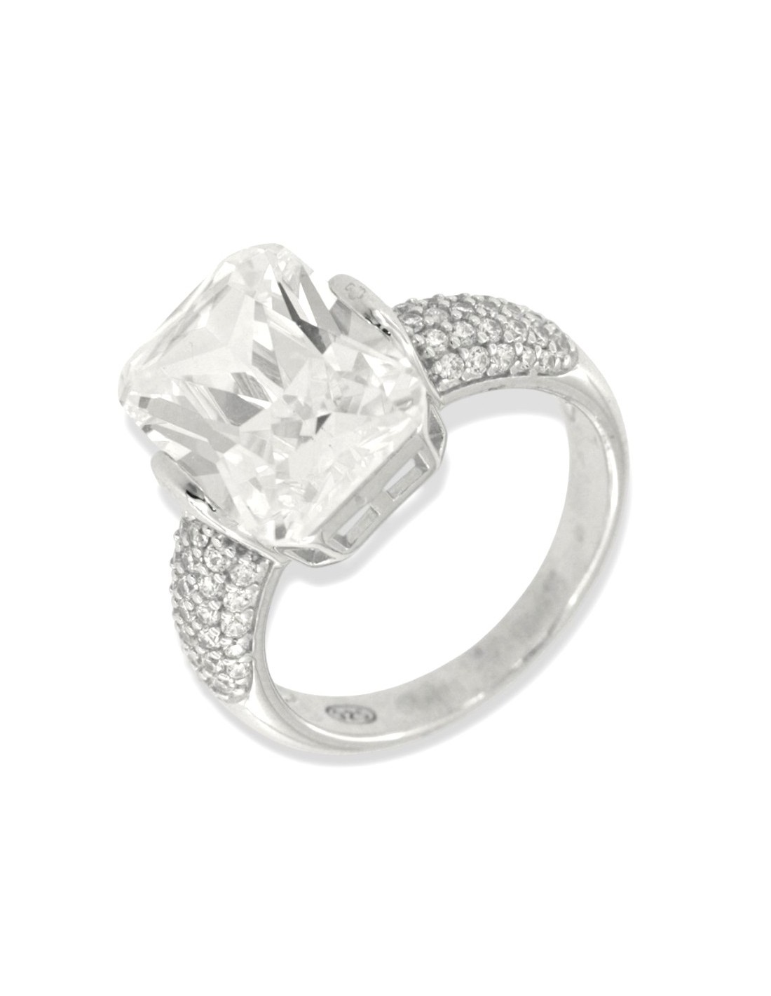 Anello Argento Rodiato Zircone Bianco 14x10MM