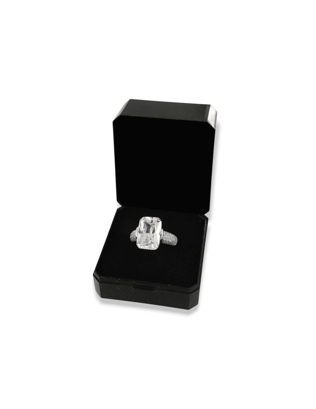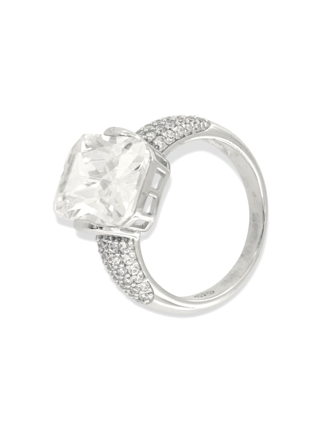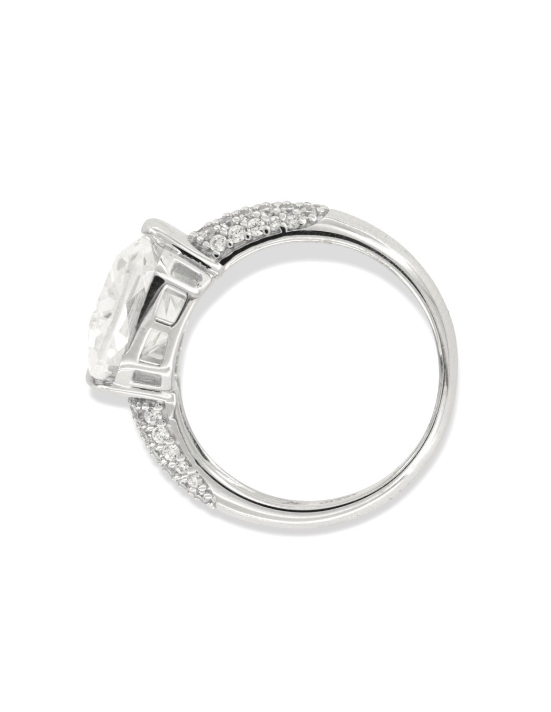 Anello Argento Rodiato Zircone Bianco 14x10MM
