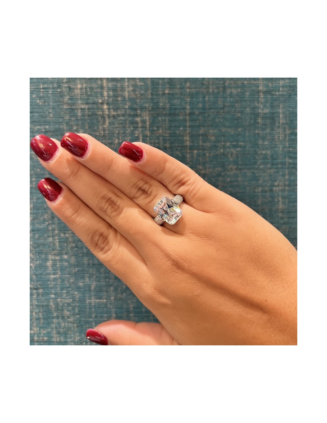 •MATERIALE: l'anello è realizzato interamente in argento 925‰ Rodiato (trattamento brillantante contro l'annerimento) modello Principessa composto da uno Zirconia Cubica o pietra CZ bianco da 14 x 10 millimetri di diametro, con taglio di alta qualità simile al taglio Brillante del Diamante;