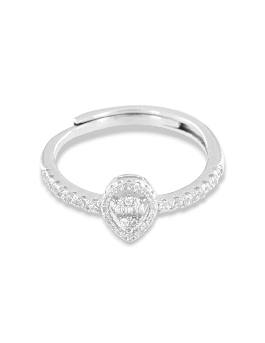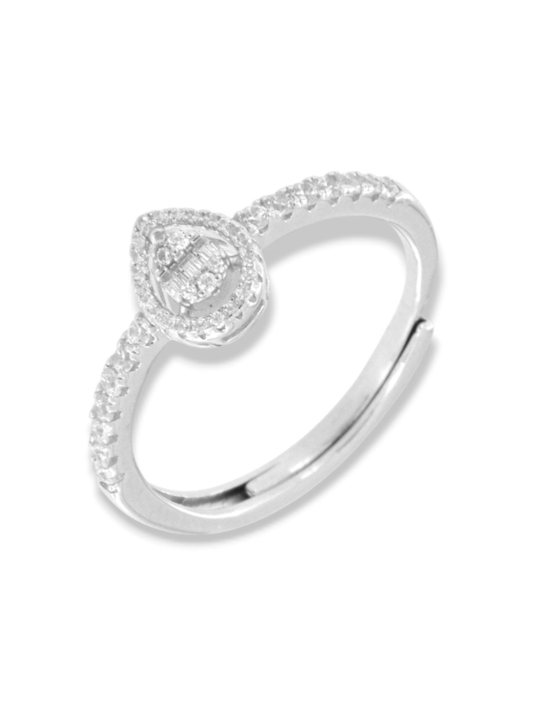 Anello Argento Rodiato Zirconi Baguette Goccia