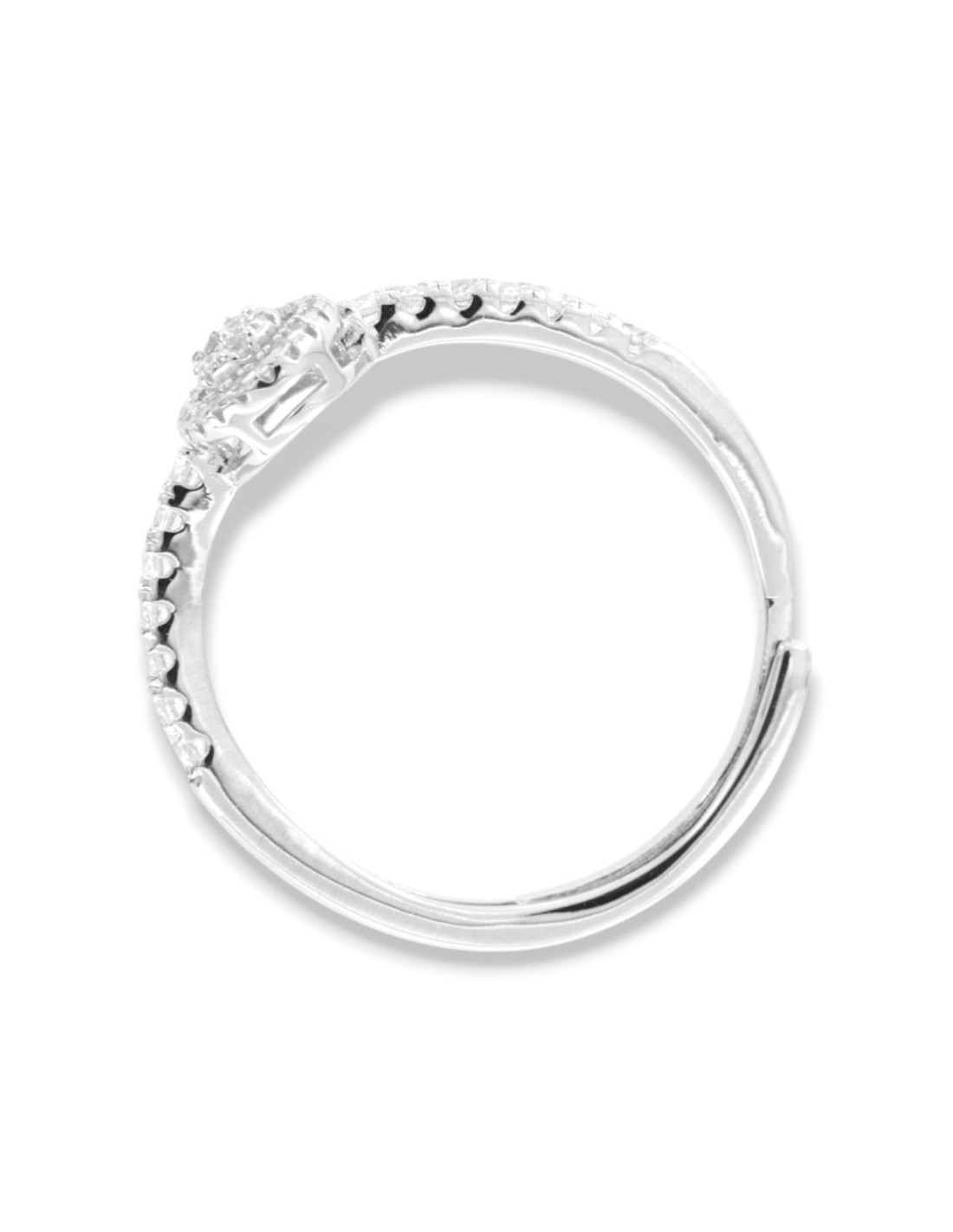 •INCASTONATURA: il montaggio delle pietre CZ sull'anello avviene con castoni a 4 griffe (2 punte condivise per pietra) che la serrano in modo permanente;