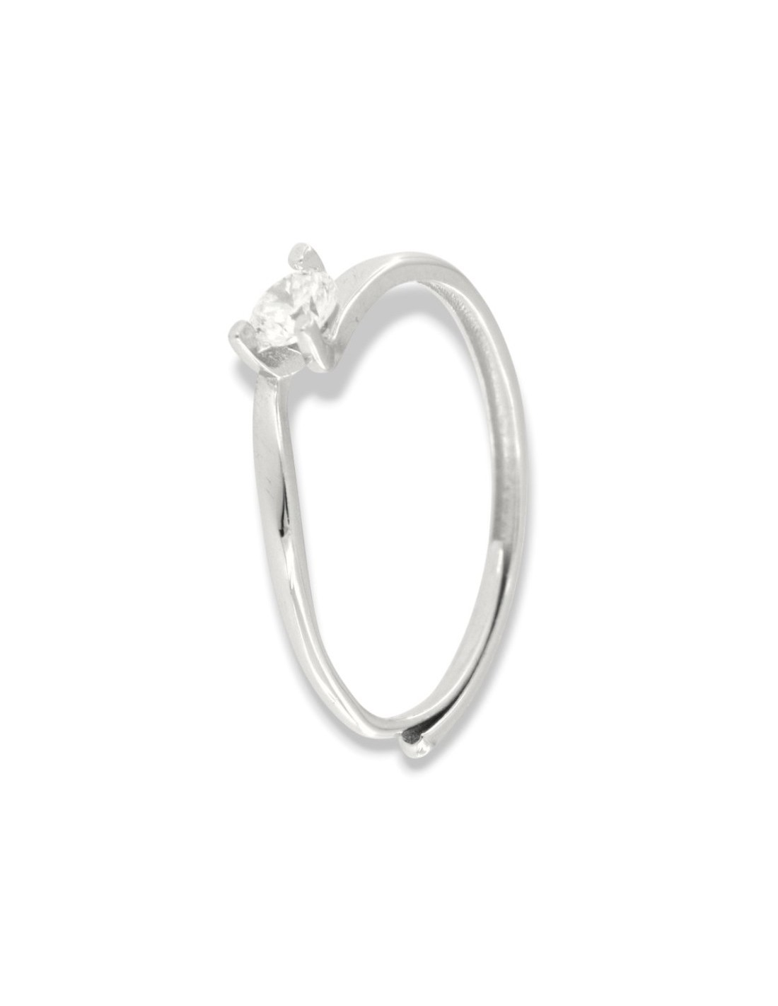 •INCASTONATURA: il montaggio delle pietre CZ sull'anello avviene con castoni a 4 griffe (2 punte condivise per pietra) che la serrano in modo permanente;