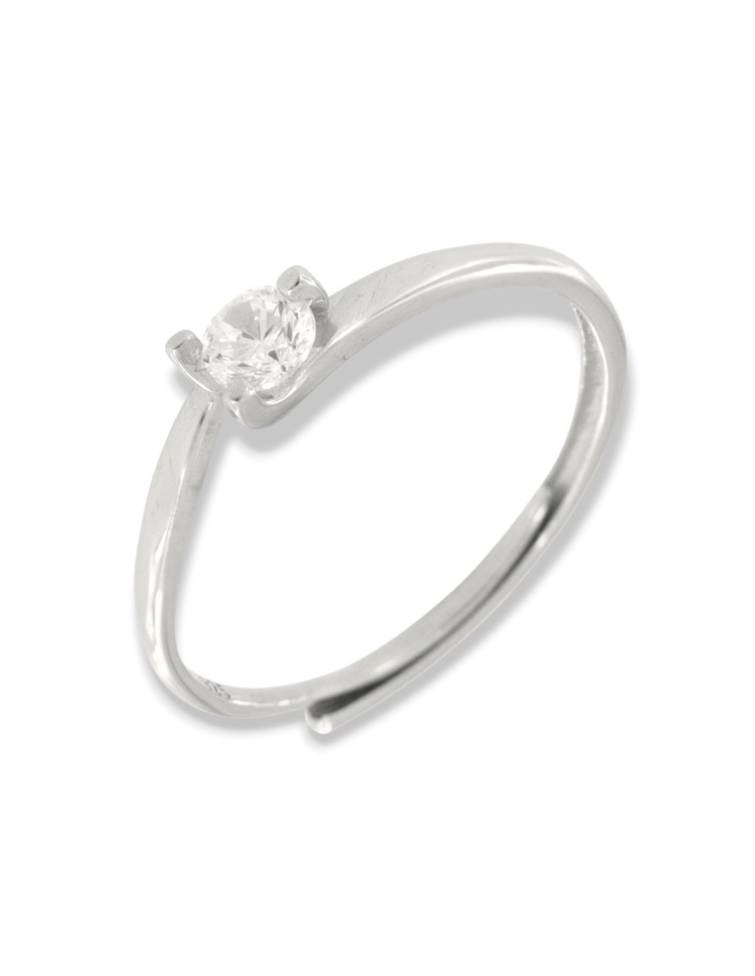Anello Argento Rodiato Solitario 4MM 3 Punte
