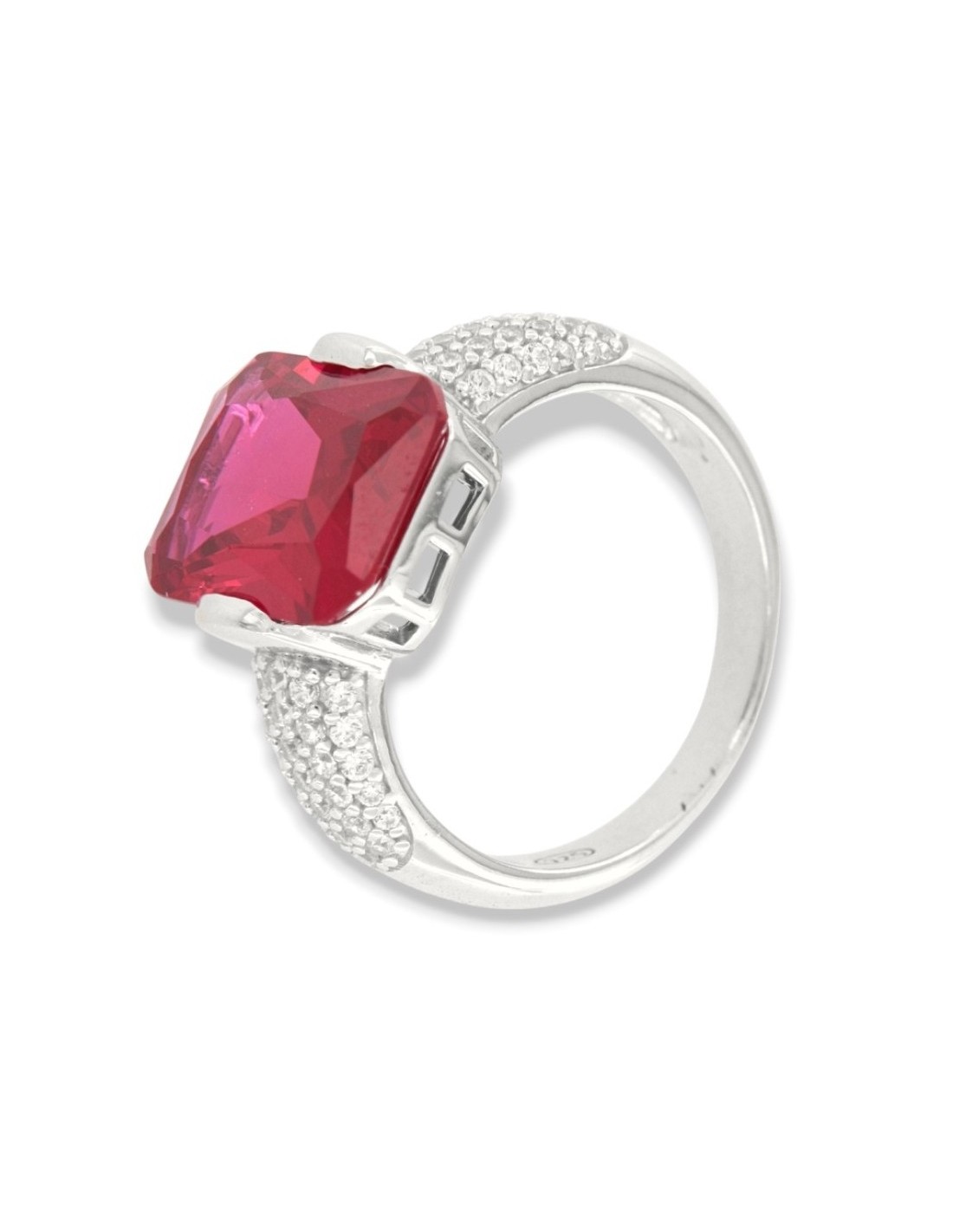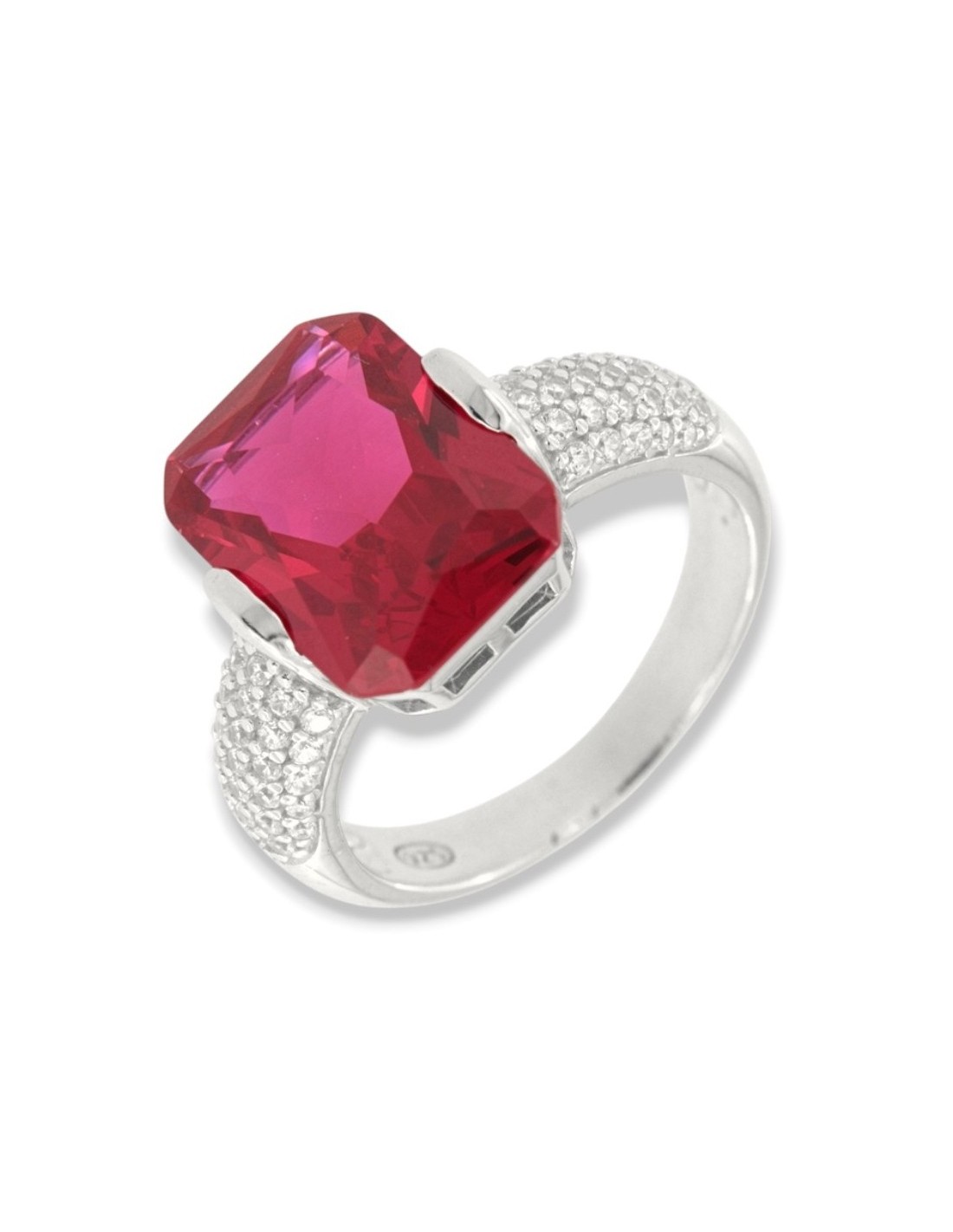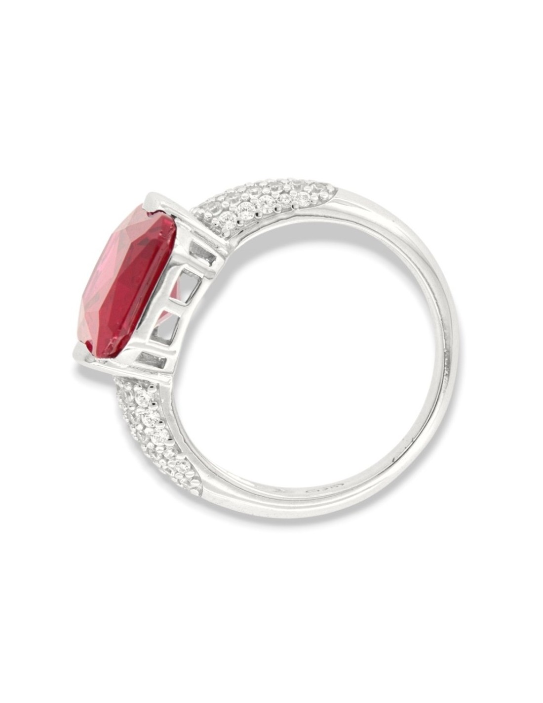 •MATERIALE: l'anello è realizzato interamente in argento 925‰ Rodiato (trattamento brillantante contro l'annerimento) composto da uno Zirconia Cubica o pietra CZ rossa centrale da 14x10 millimetri di diametro, accompagnata da altre pietre cz bianche sul gambo con taglio di alta qualità simile al taglio Brillante del Diamante;