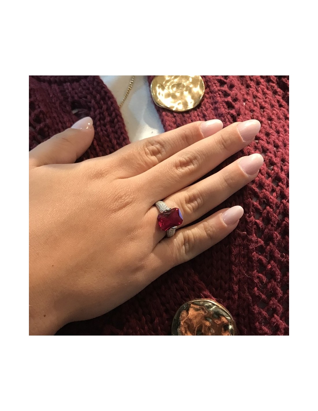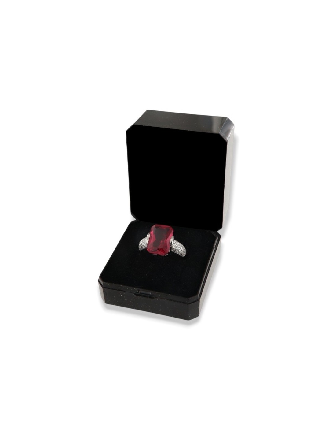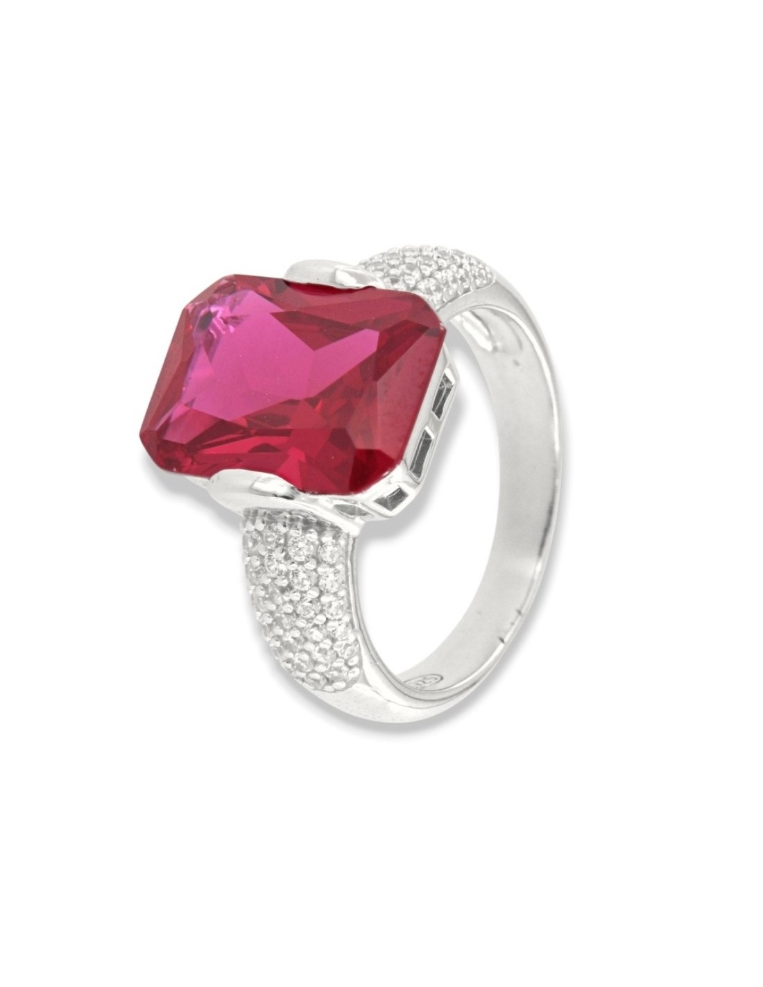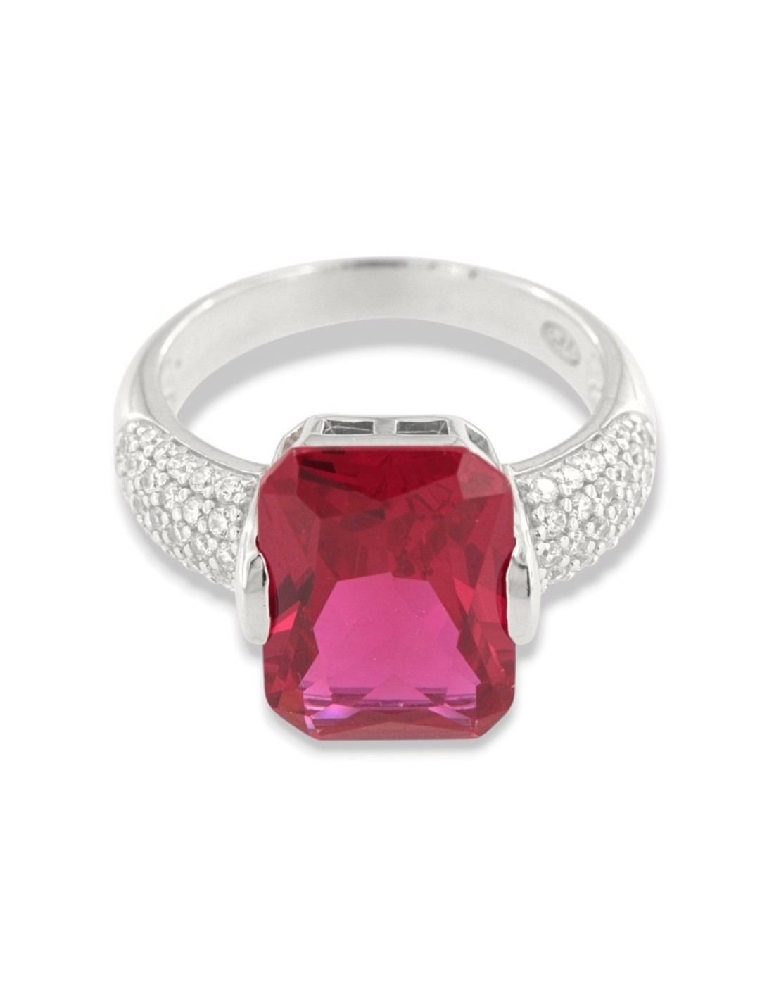 •MATERIALE: l'anello è realizzato interamente in argento 925‰ Rodiato (trattamento brillantante contro l'annerimento) composto da uno Zirconia Cubica o pietra CZ rossa centrale da 14x10 millimetri di diametro, accompagnata da altre pietre cz bianche sul gambo con taglio di alta qualità simile al taglio Brillante del Diamante;