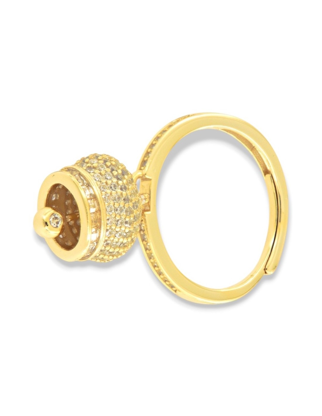 Anello Argento Dorato Campanella Zirconi Bianchi