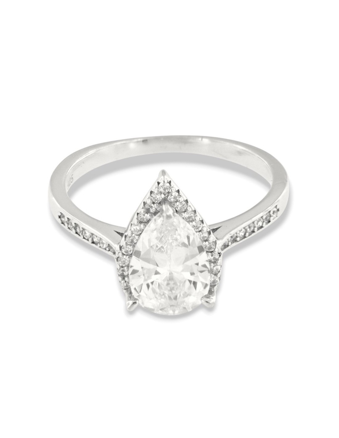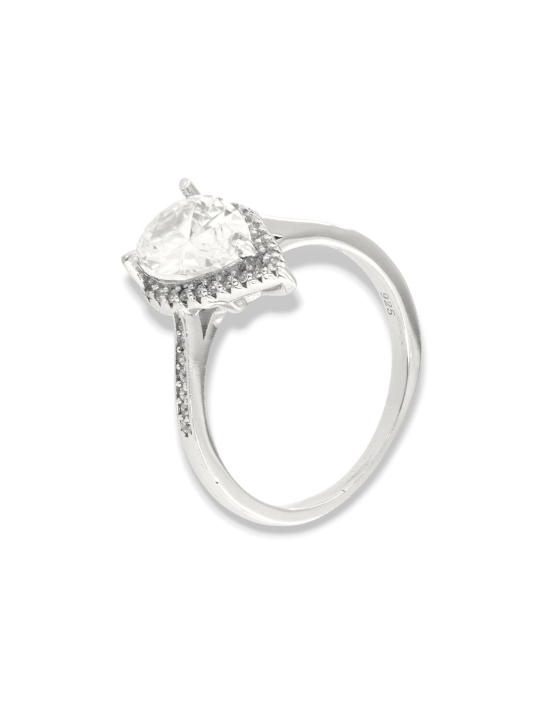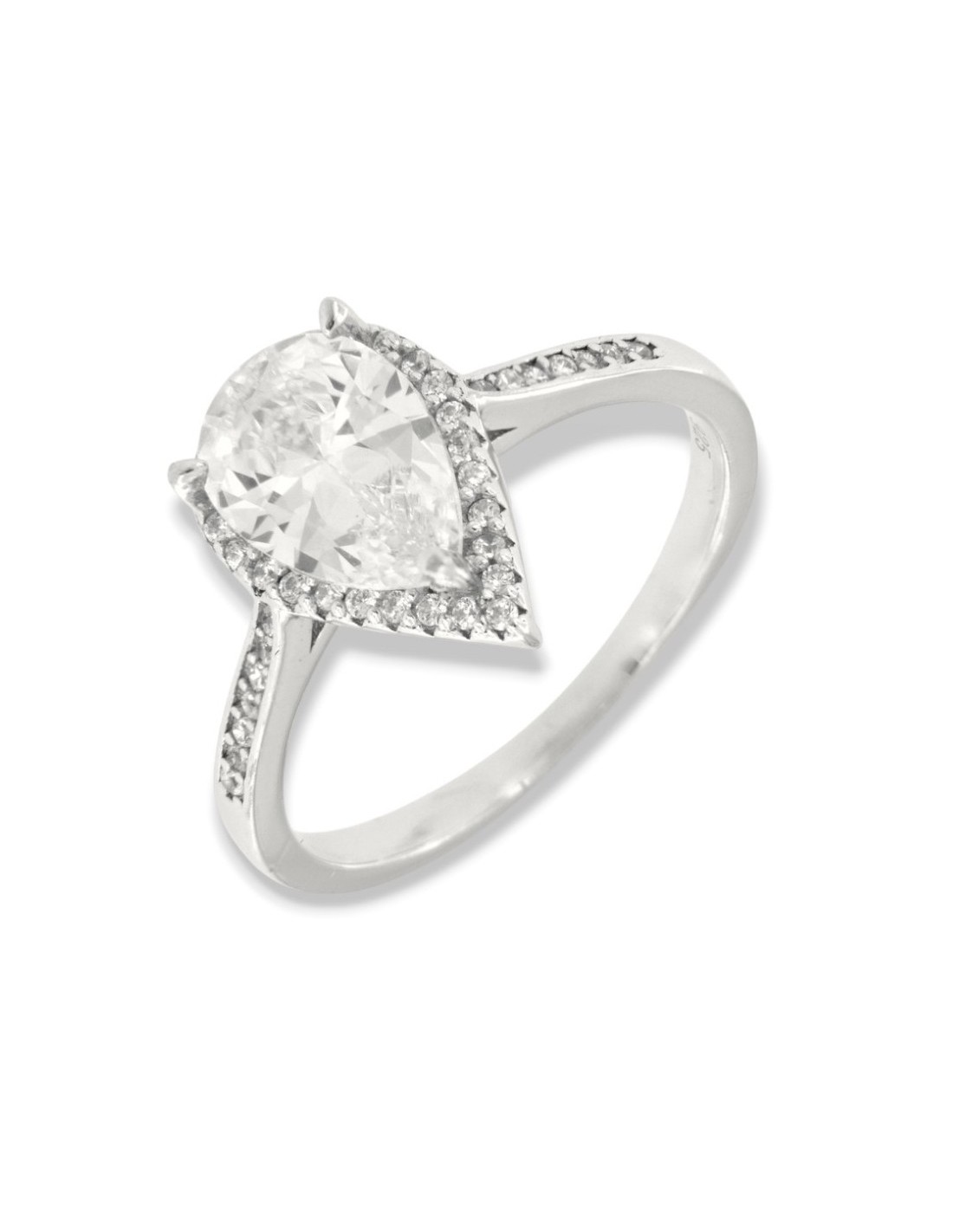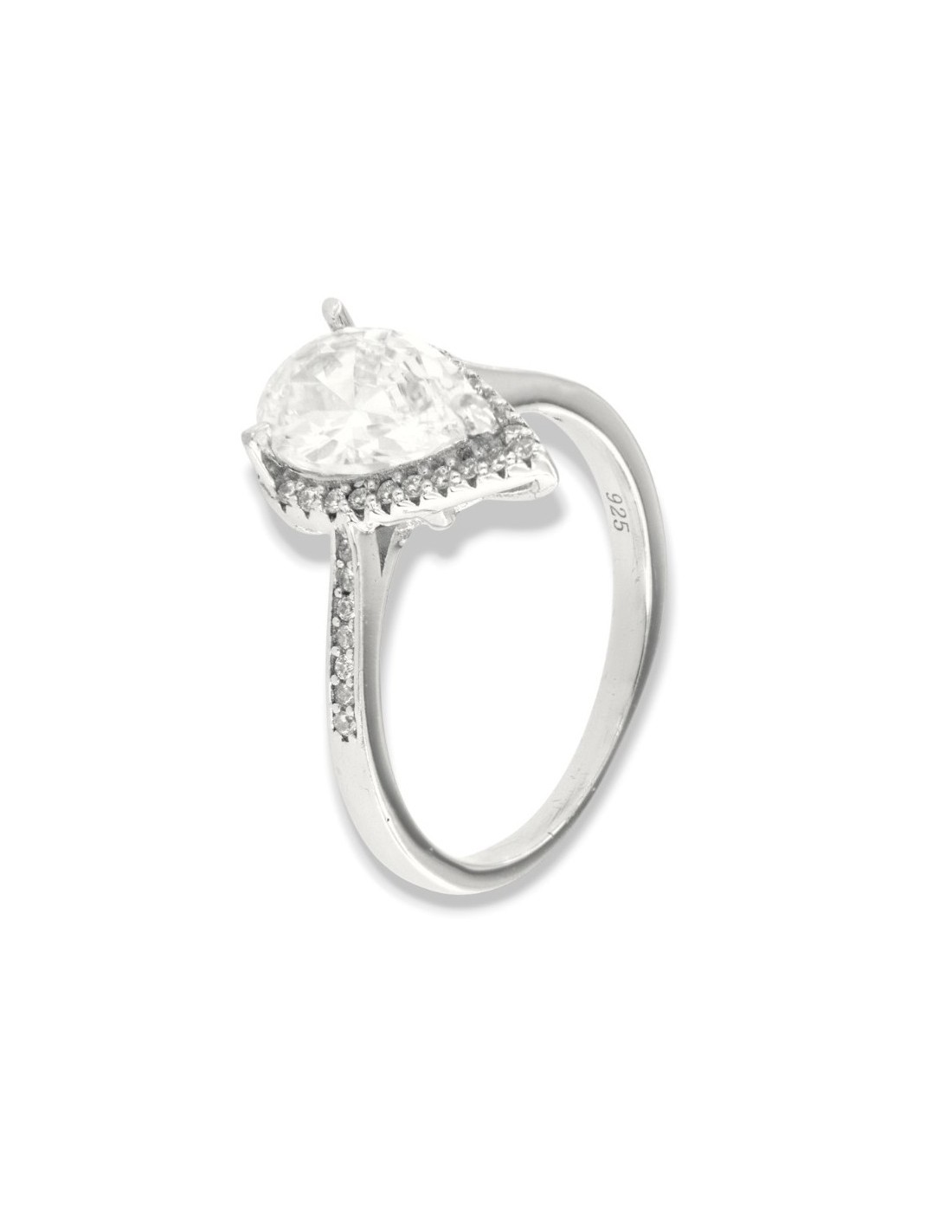 Anello Argento Rodiato Principessa Goccia Bianca