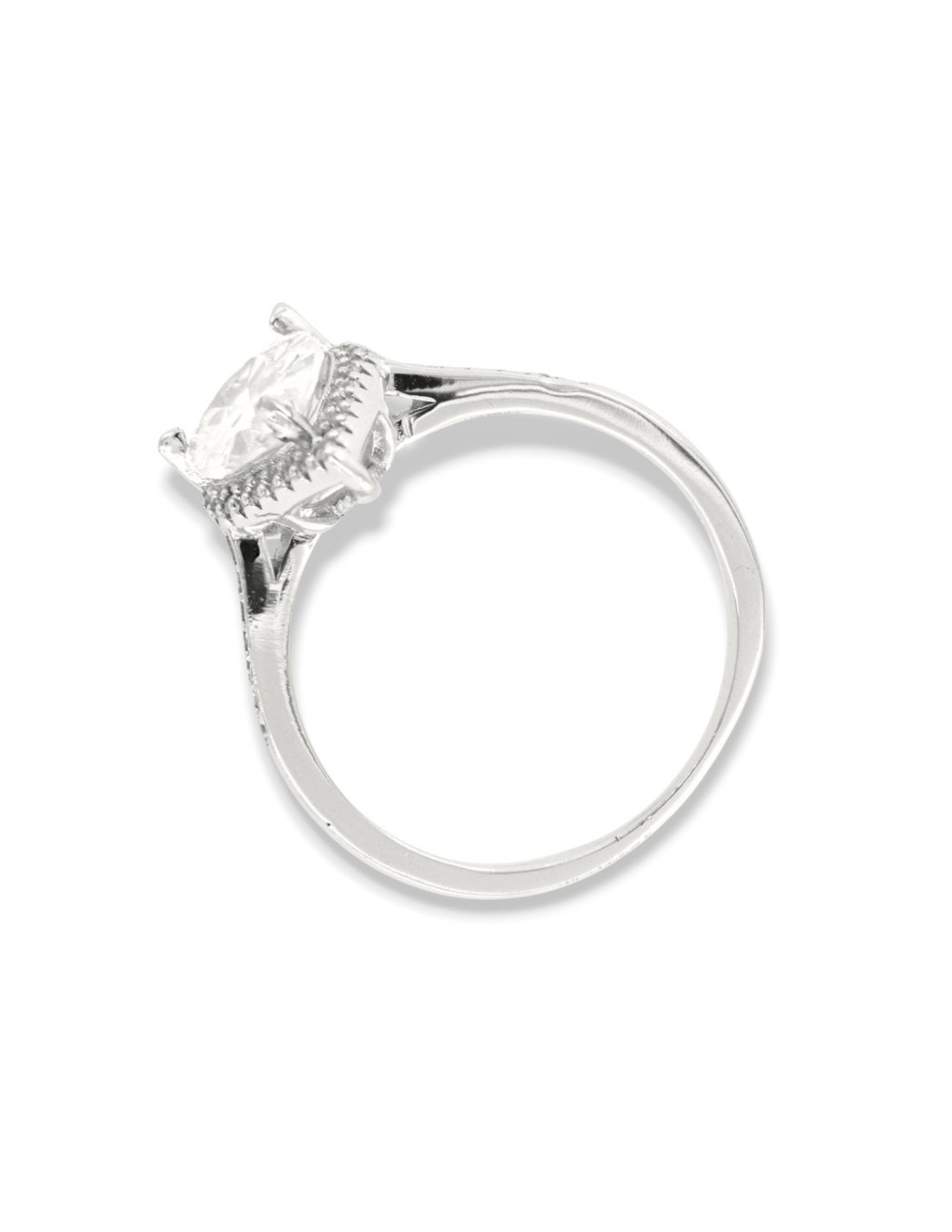 •INCASTONATURA: il montaggio delle pietre CZ sull'anello avviene con castoni a 4 griffe (2 punte condivise per pietra) che la serrano in modo permanente;