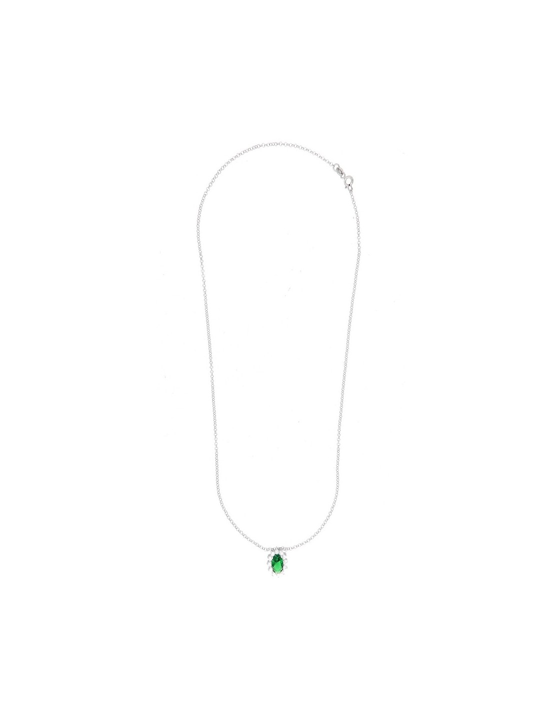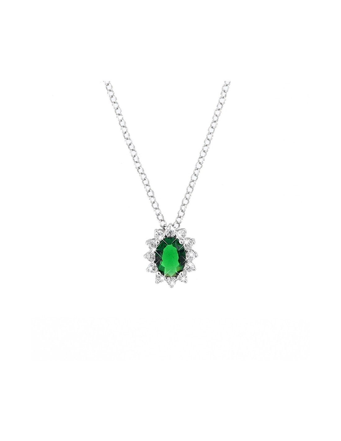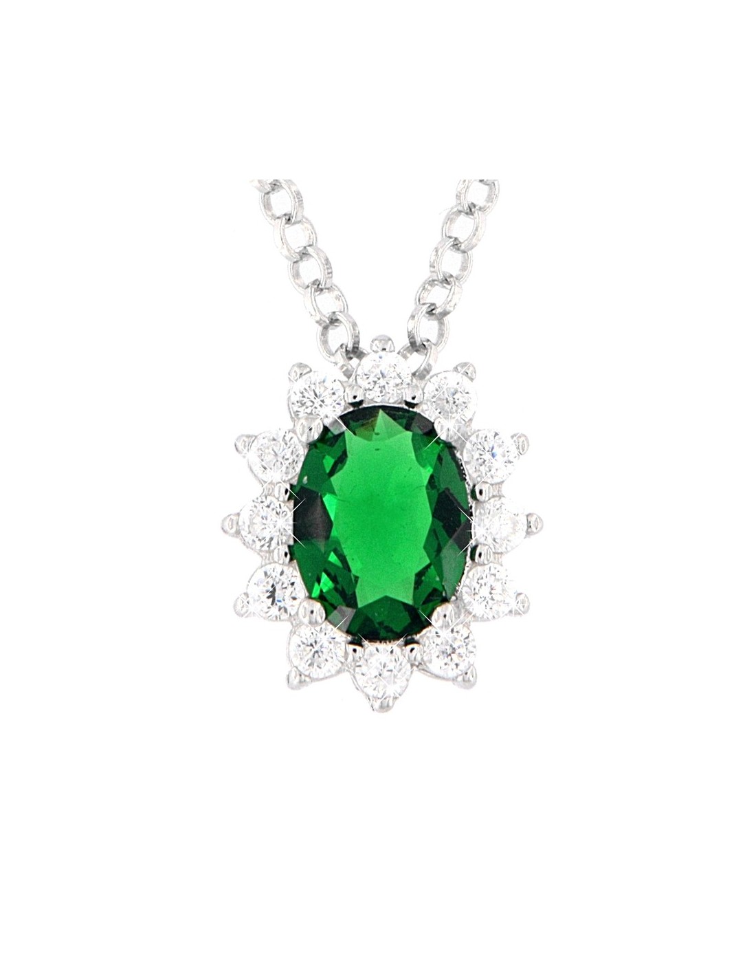 -MATERIALE: la collana è realizzata interamente in argento 925‰ Rodiato (trattamento brillantante contro l'annerimento) modello Principessa con l'applicazione di uno Zirconia Cubica colore Verde taglio Ovale misura 8x6 millimetri con un cotorno di 12 Zirconia Cubica o CZ bianchi da 2 millimetri di diametro con taglio di alta qualità simile al taglio Brillante del Diamante;