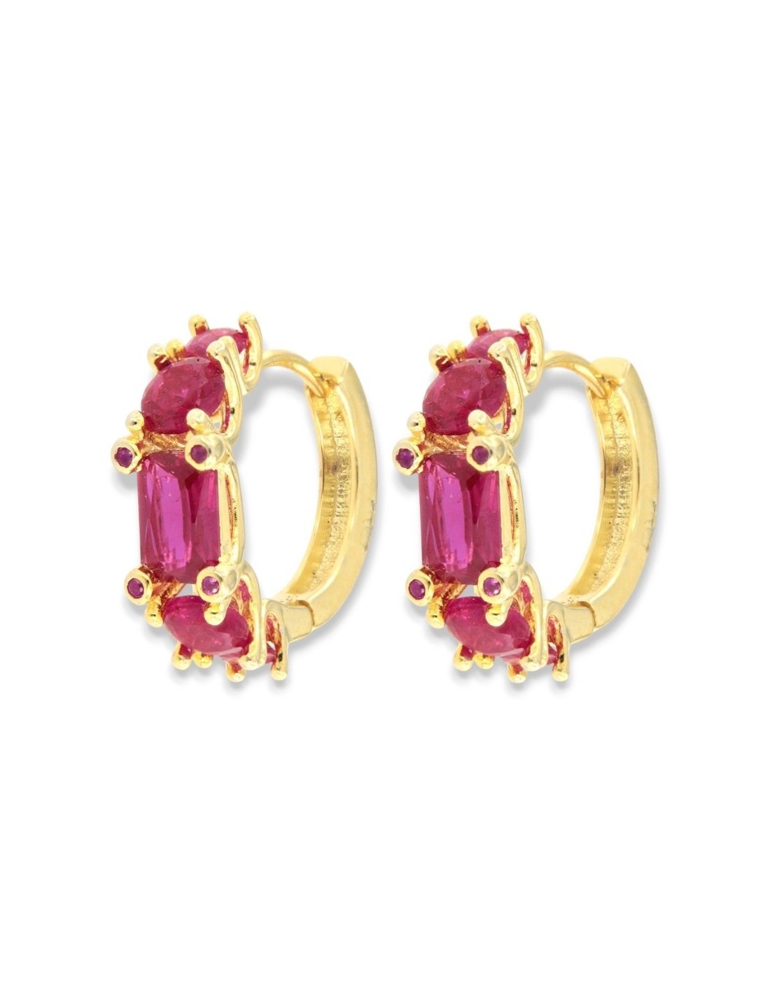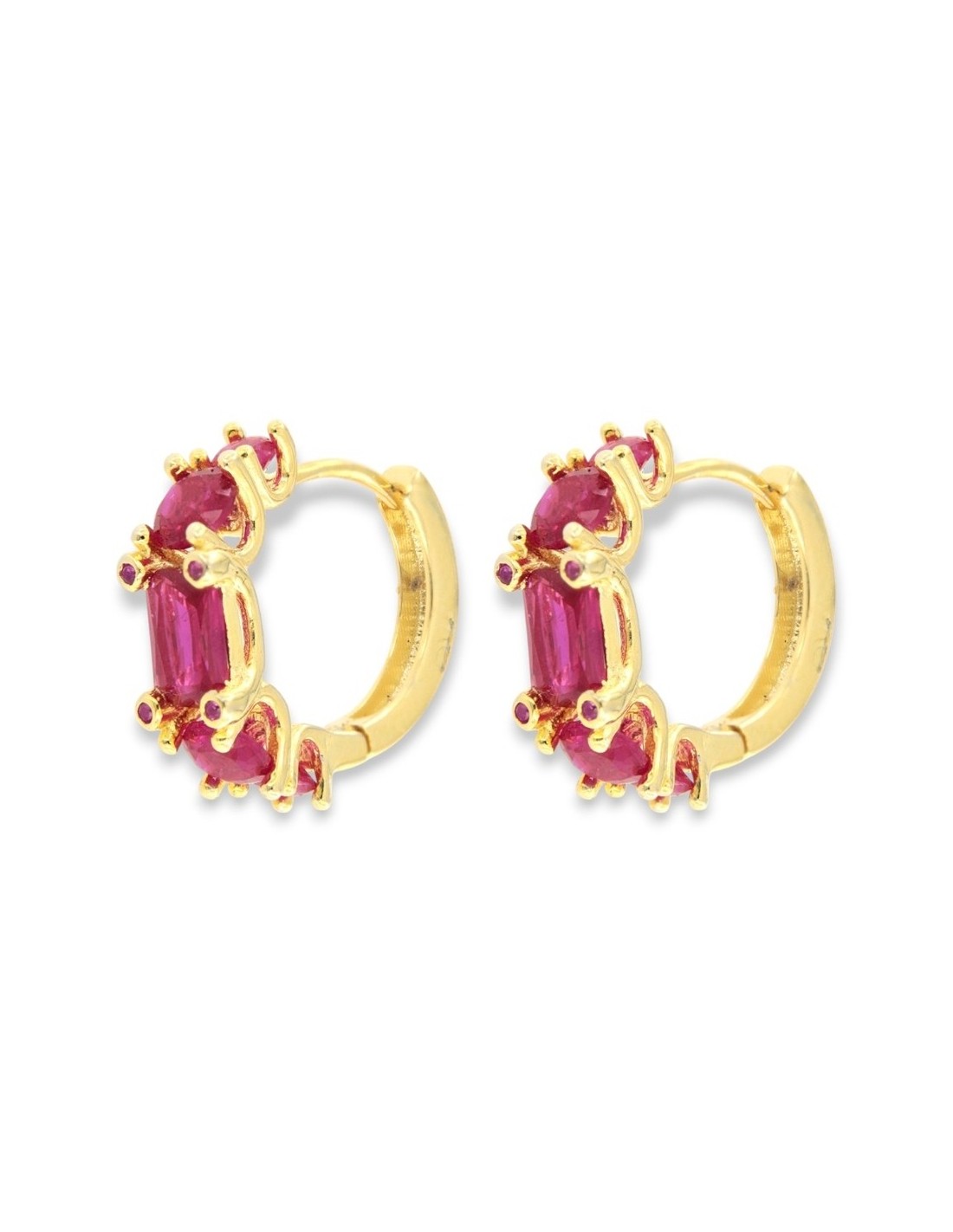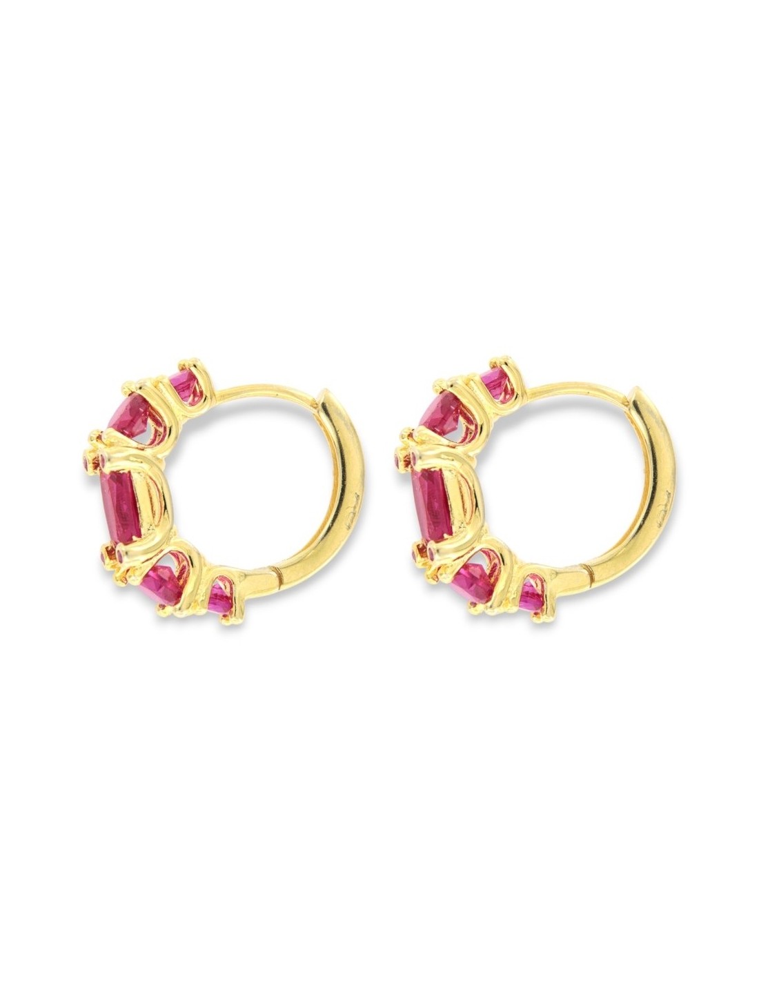 •MATERIALE: gli orecchini sono realizzati interamente in argento 925‰ Dorato (trattamento brillantante contro l'annerimento) modello cerchi, caratterizzati dall''applicazione di Zirconia Cubica o pietre CZ magenta, con taglio di alta qualità simile al taglio Brillante del Diamante;
