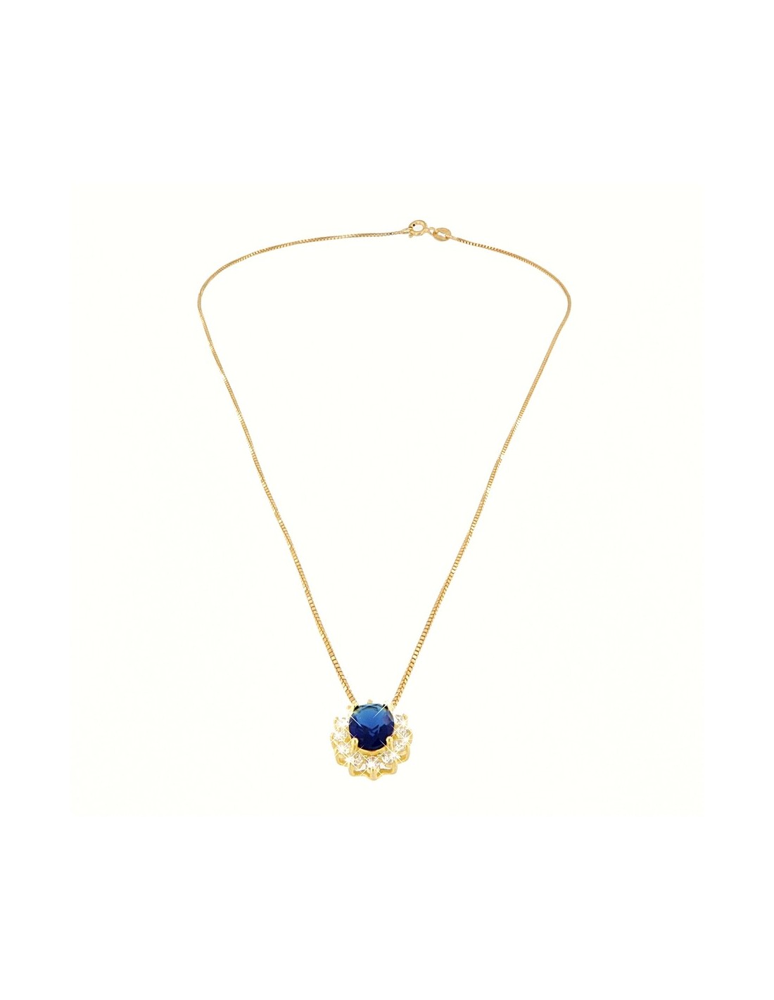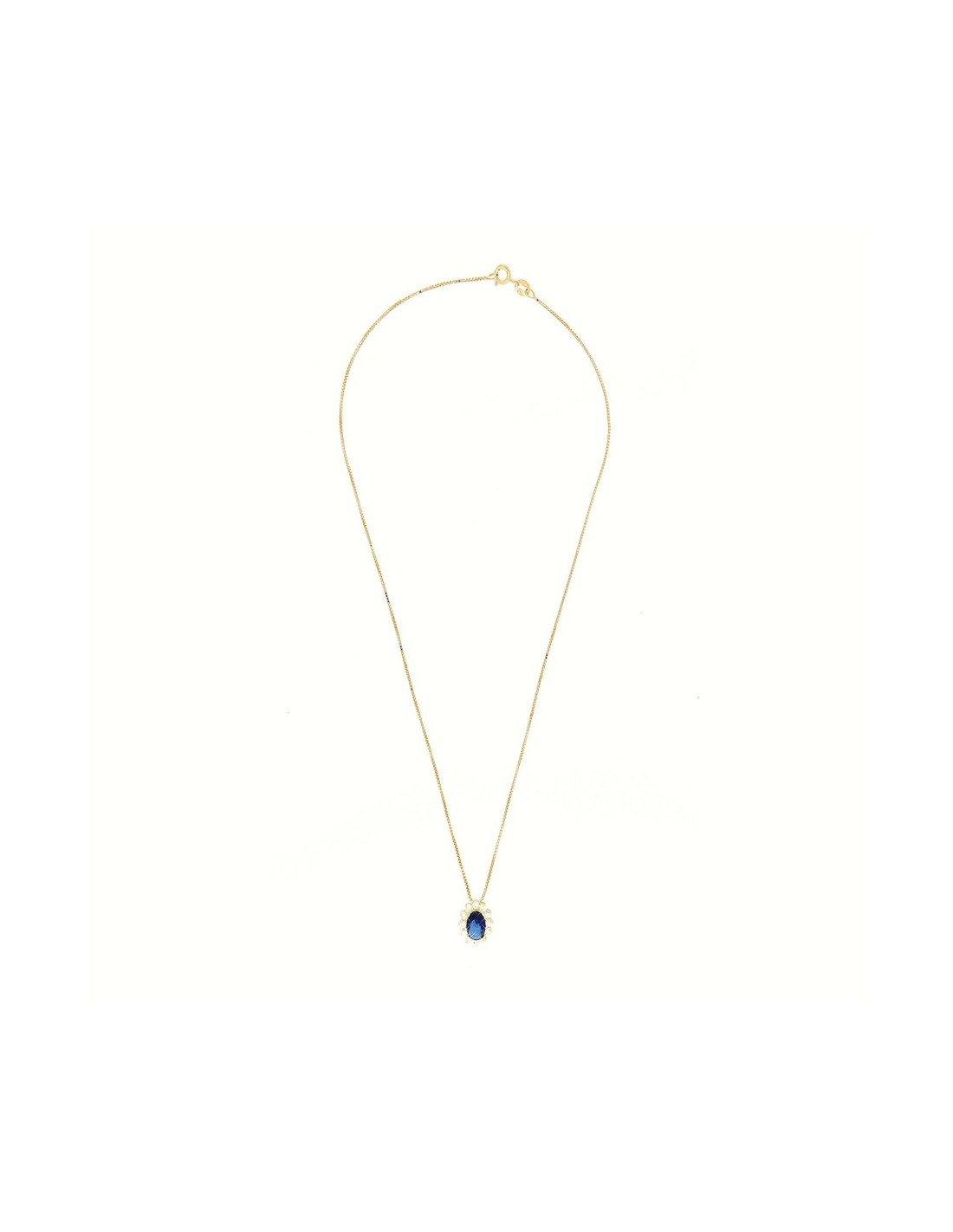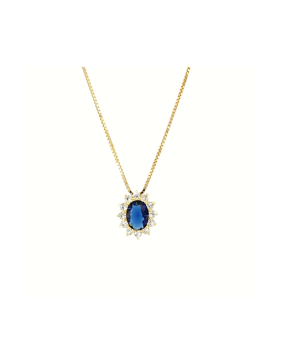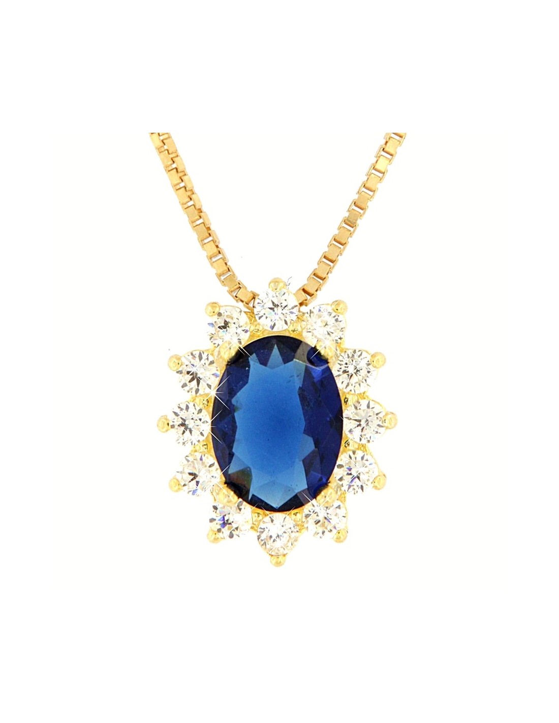 -MATERIALE: la collana è realizzata interamente in argento 925‰ Dorato (trattamento brillantante contro l'annerimento) modello Principessa con l'applicazione di uno Zirconia Cubica colore Blu taglio Ovale misura 8x6 millimetri con un cotorno di 12 Zirconia Cubica o CZ bianchi da 2 millimetri di diametro con taglio di alta qualità simile al taglio Brillante del Diamante;