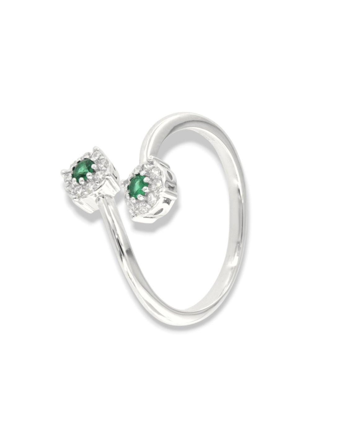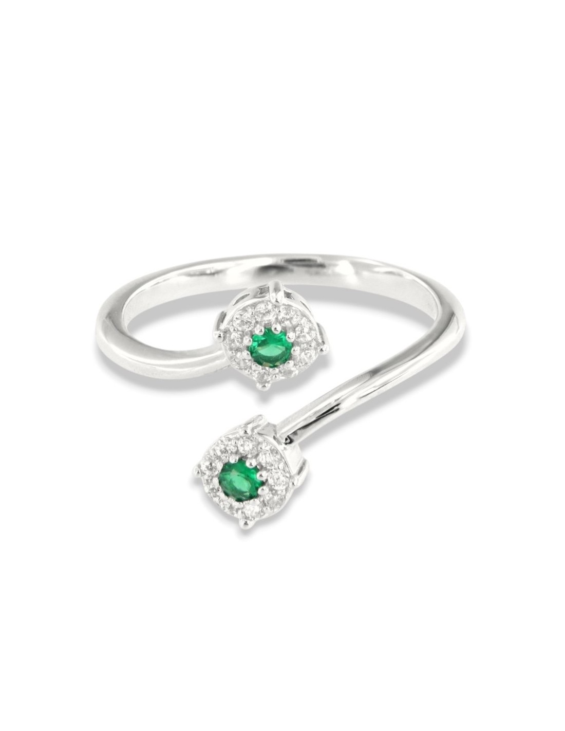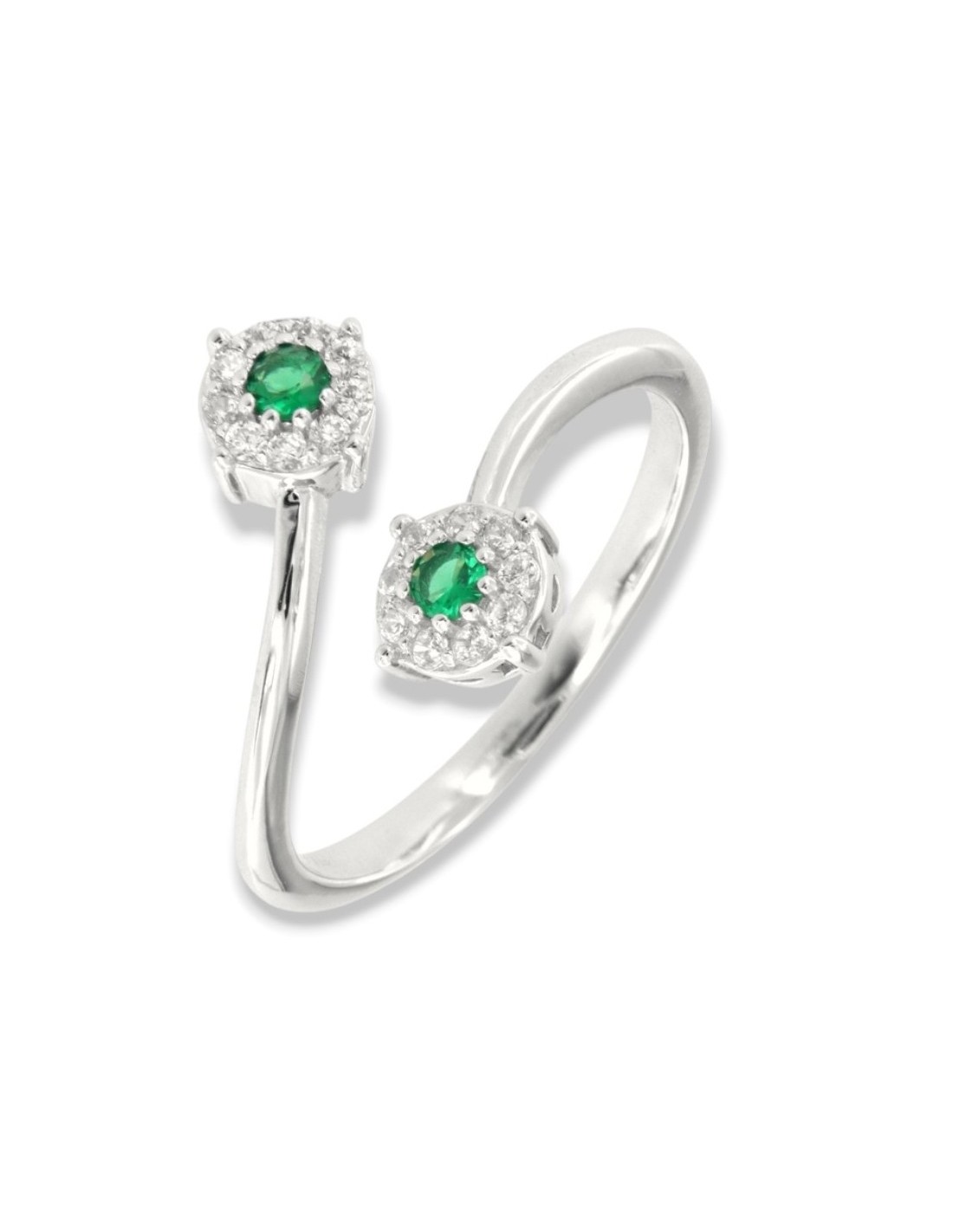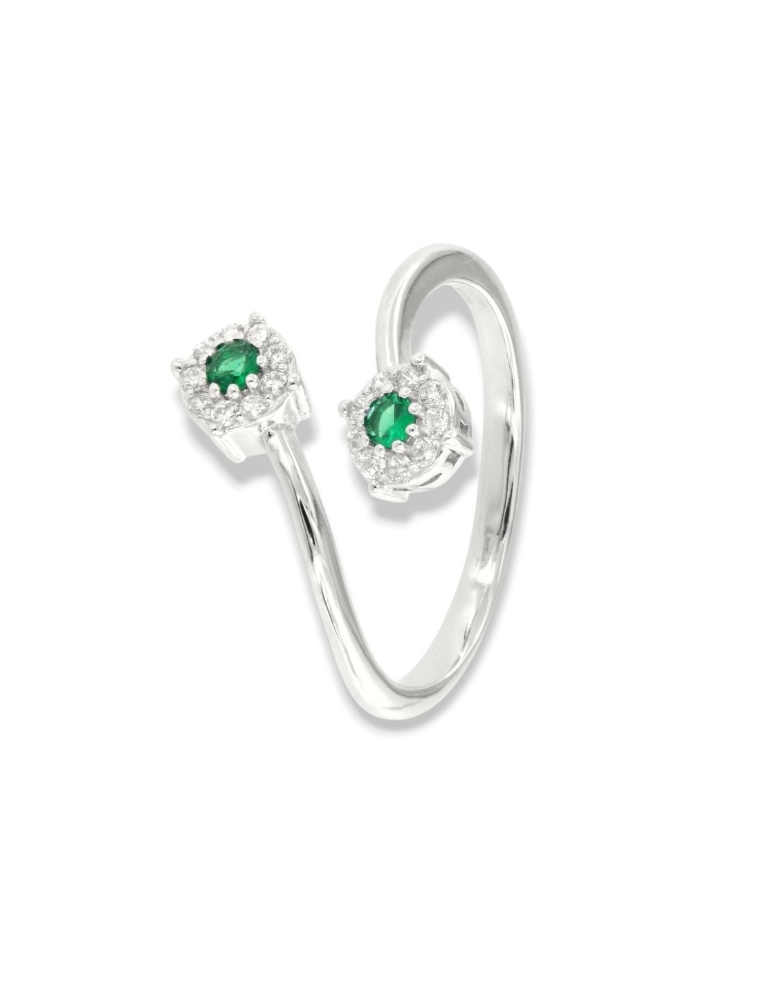 Anello Argento Rodiato Bilogy Zirconi Verdi 3MM