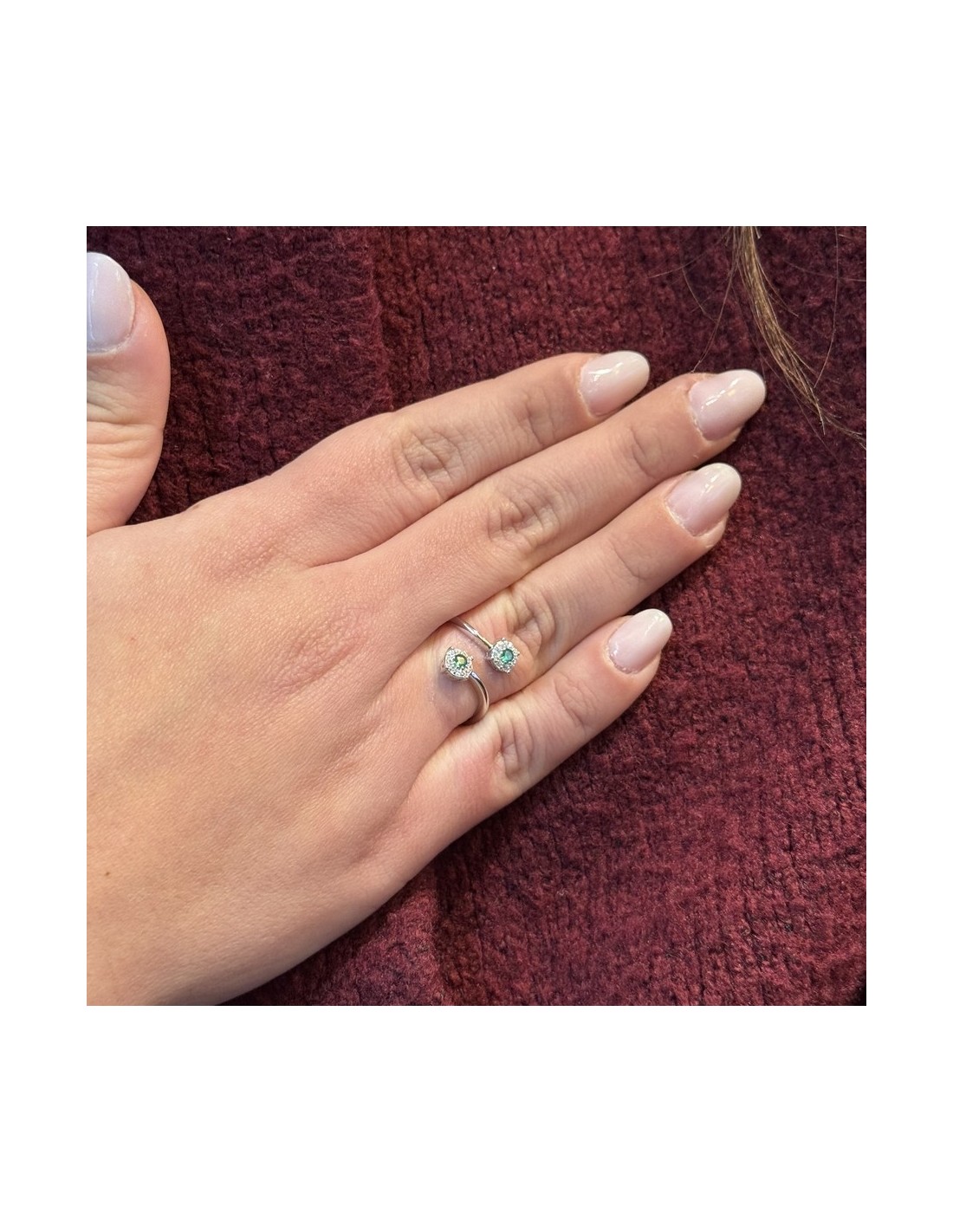 •MATERIALE: l'anello è realizzato interamente in argento 925‰ Rodiato (trattamento brillantante contro l'annerimento) modello bilogy, caratterizzato dall'applicazione di 2 Zirconia Cubica o pietre CZ verdi da 3 millimetri di diametro, circondate da altre pietre cz bianche con taglio di alta qualità simile al taglio Brillante del Diamante;