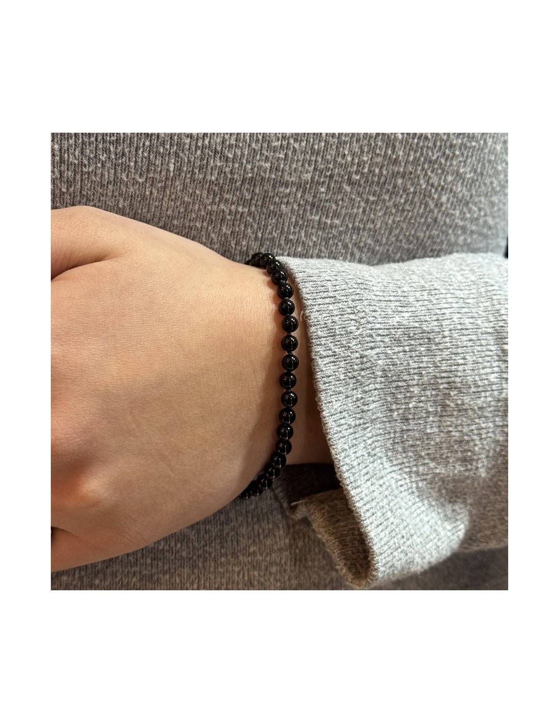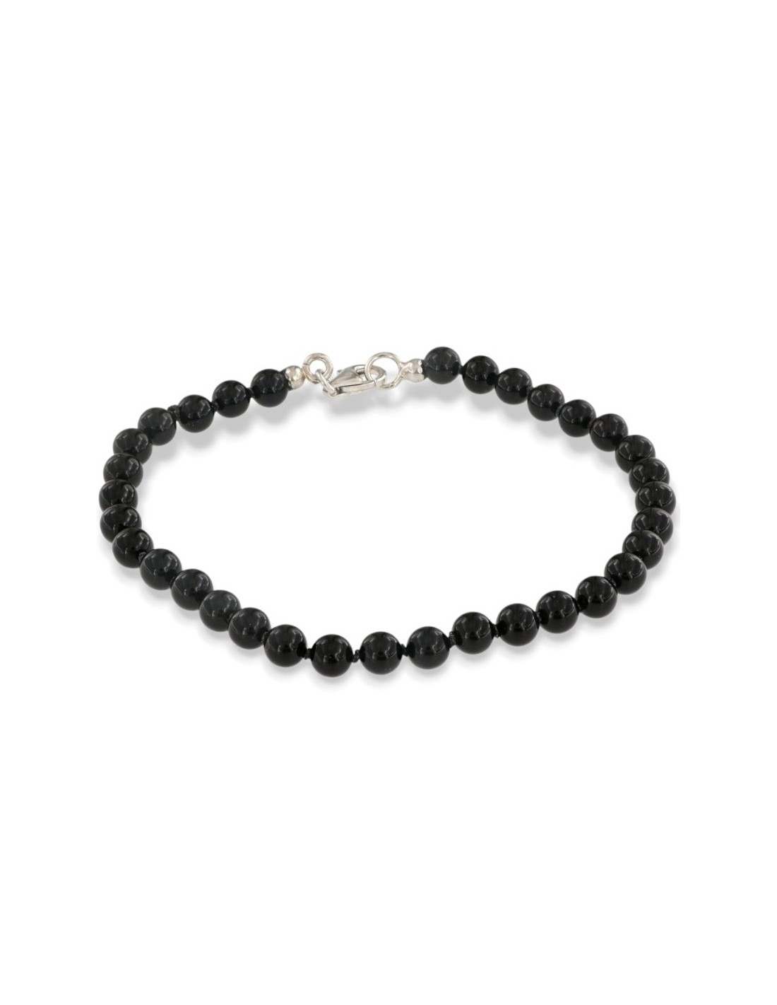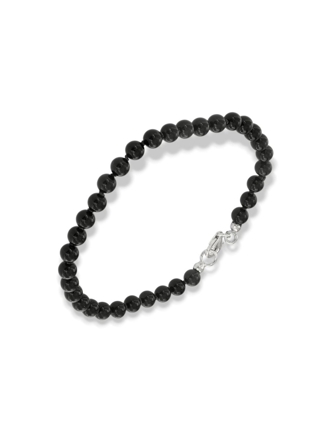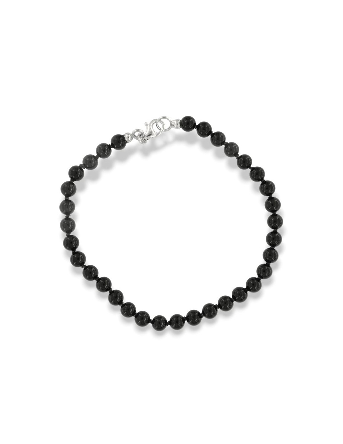 Bracciale Onice Nera 5MM Chiusura Argento Rodiato