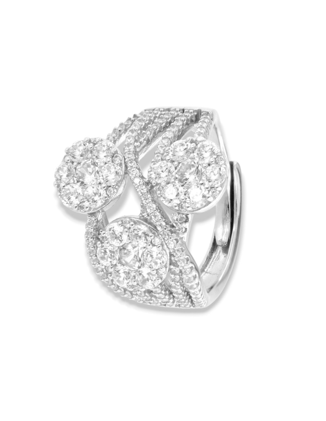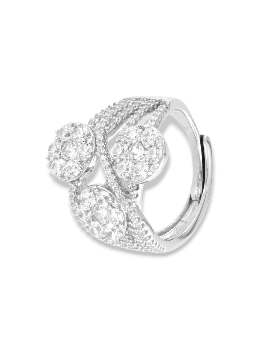 Anello Argento Rodiato Fascia Zirconi Bianchi
