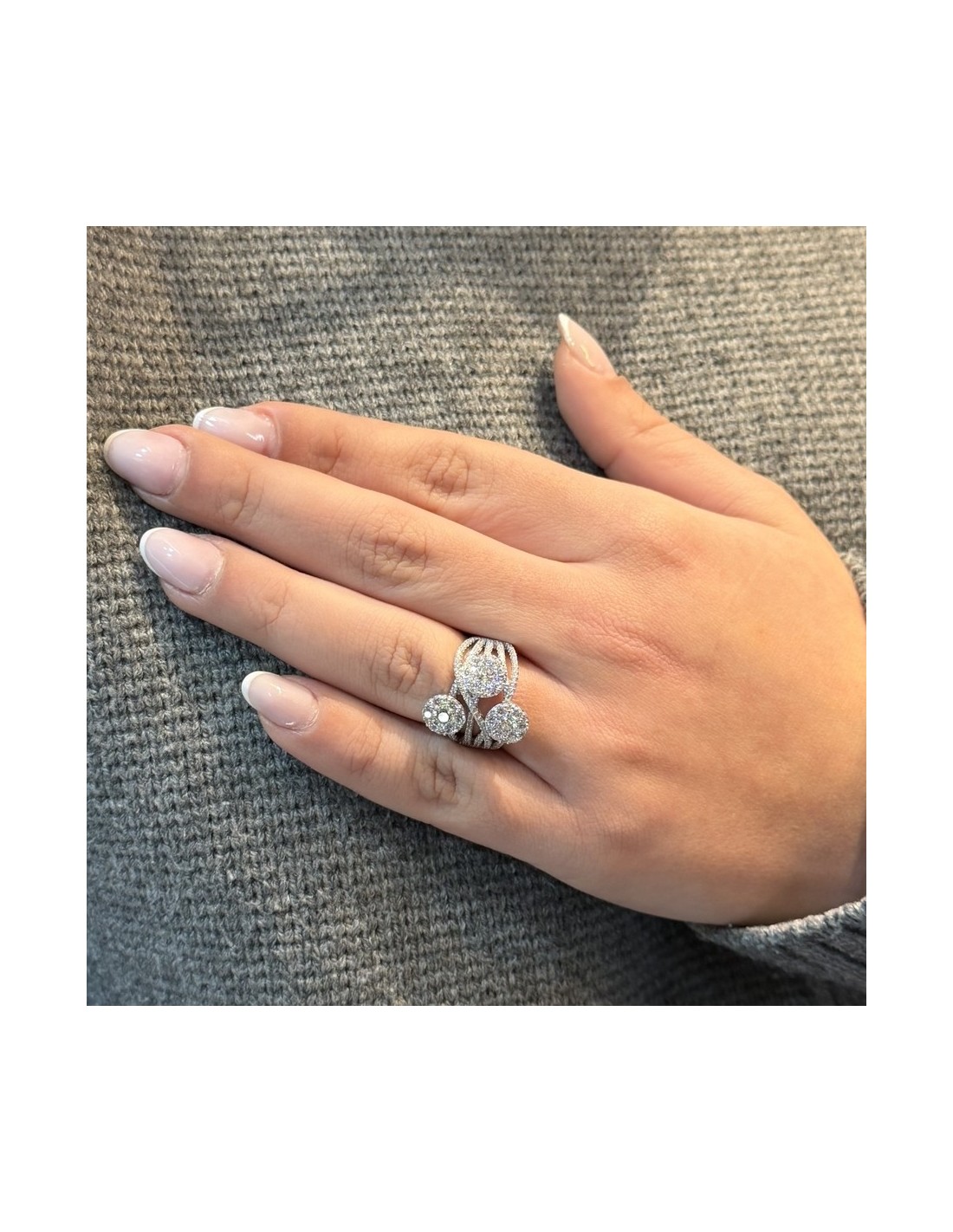 •INCASTONATURA: il montaggio delle pietre CZ sull'anello avviene con castoni a 4 griffe (2 punte condivise per pietra) che la serrano in modo permanente;