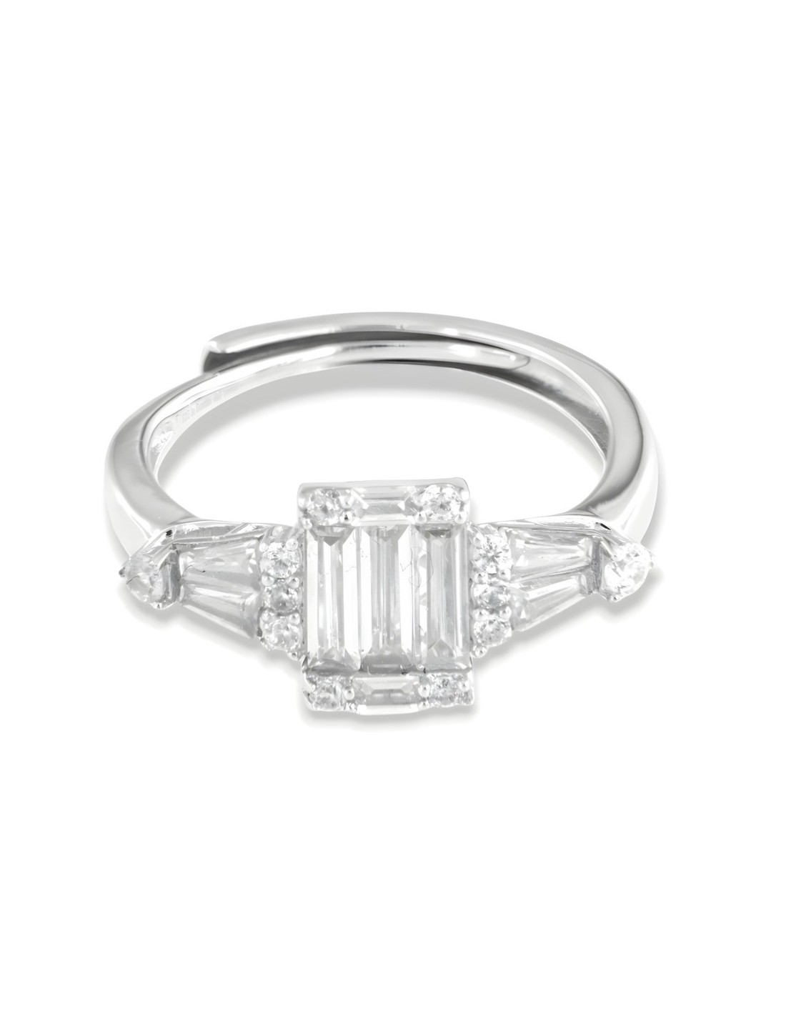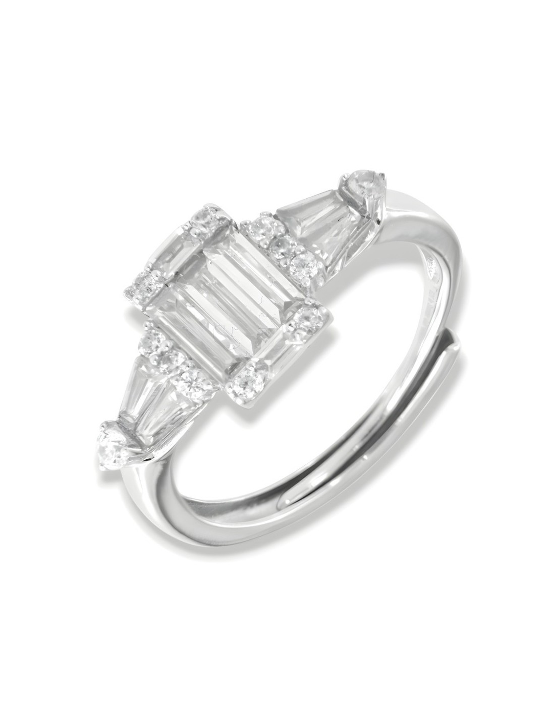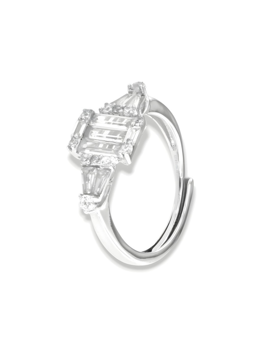 Anello Argento Rodiato Principesco Zirconi Bianchi