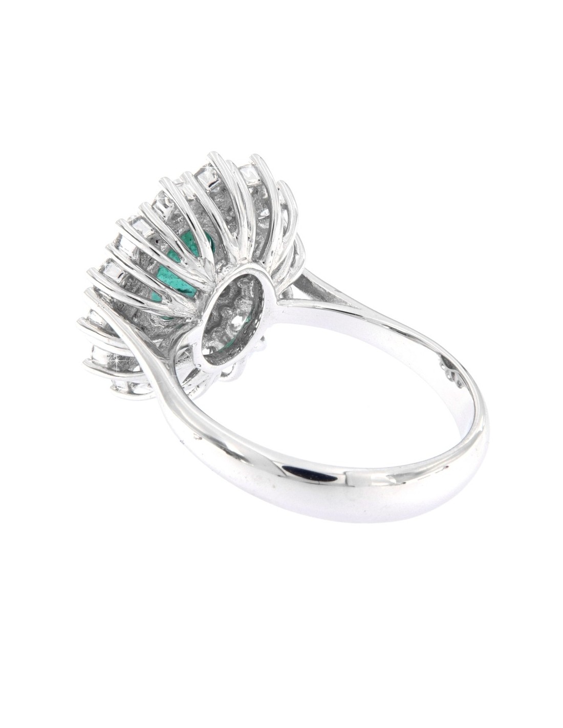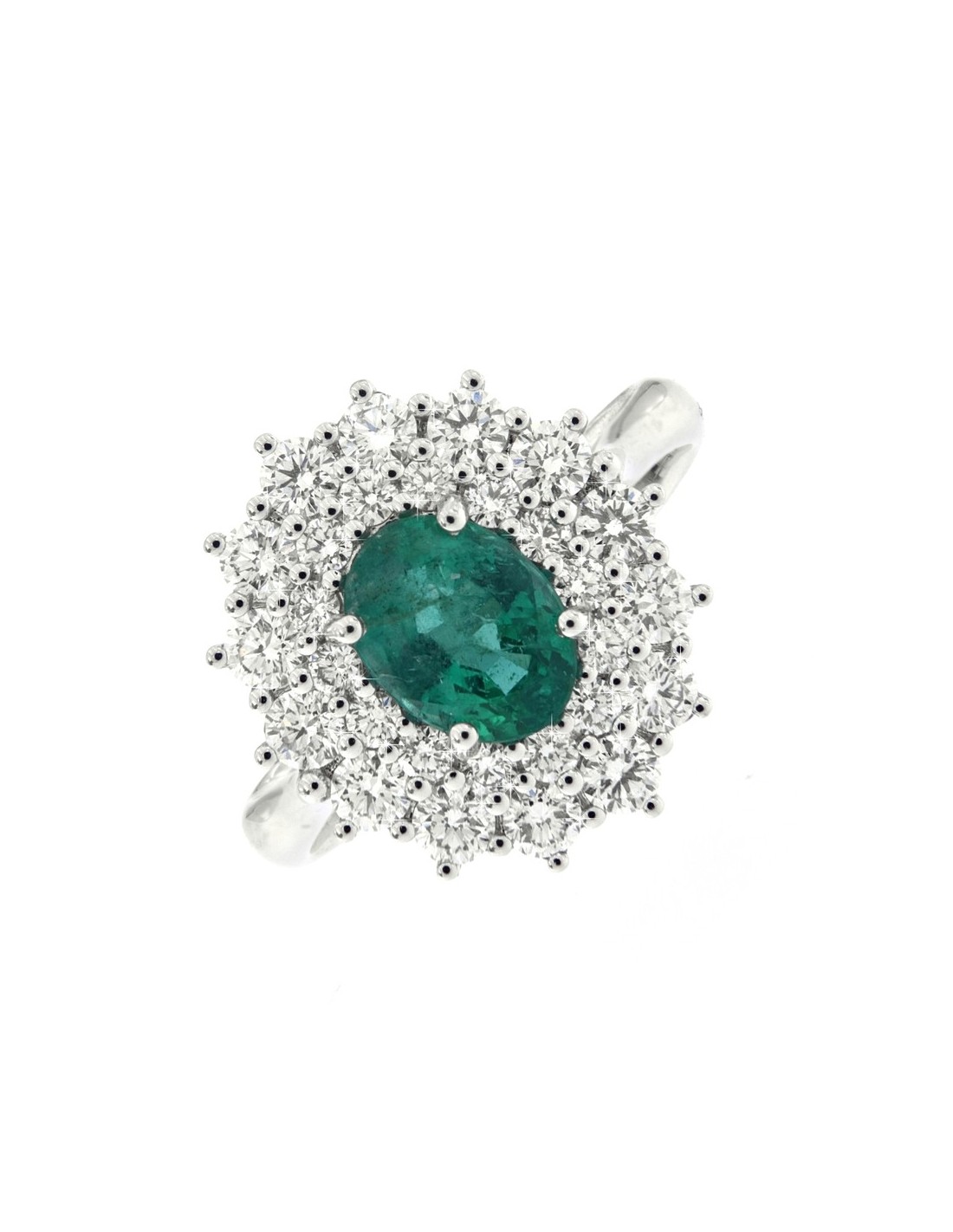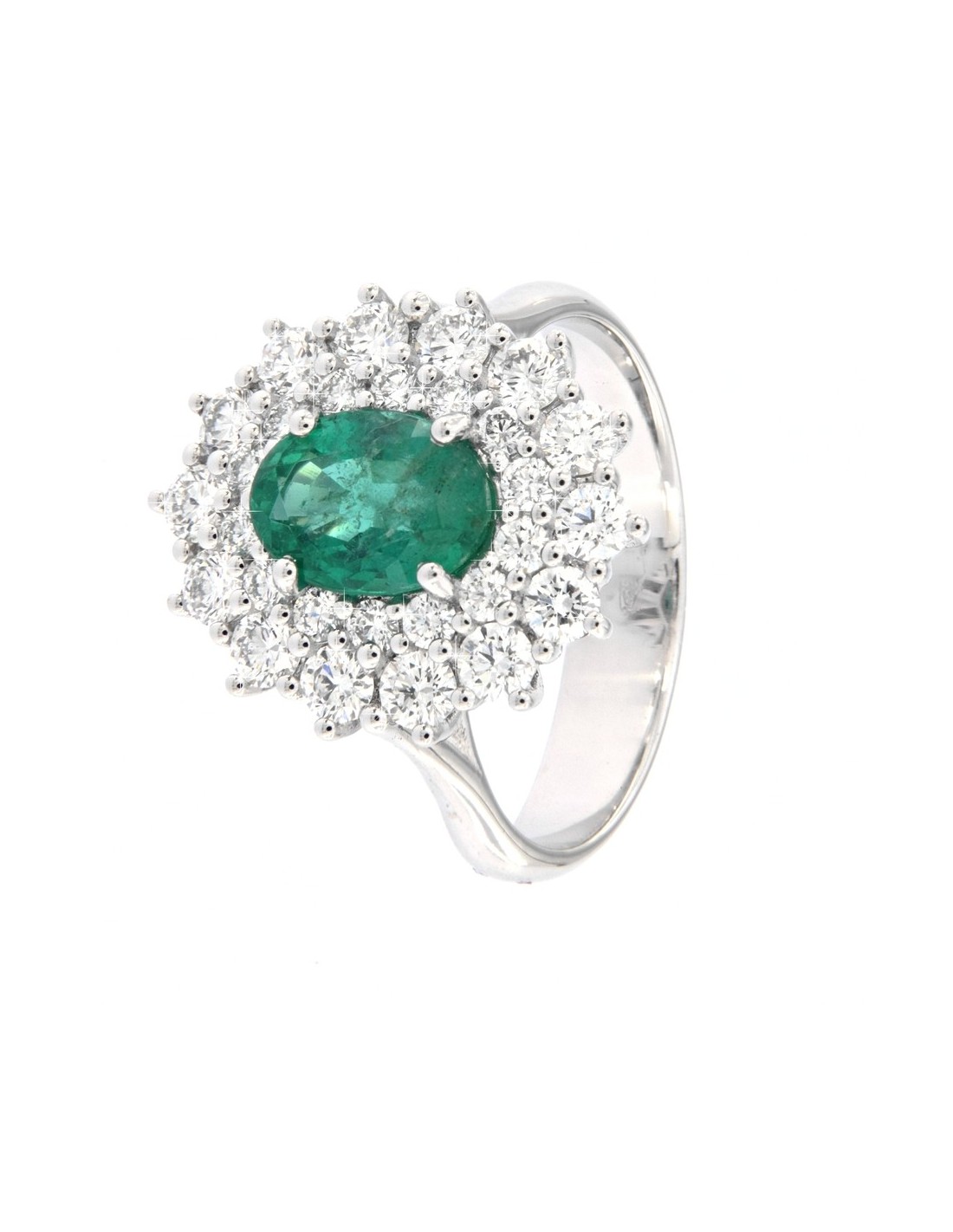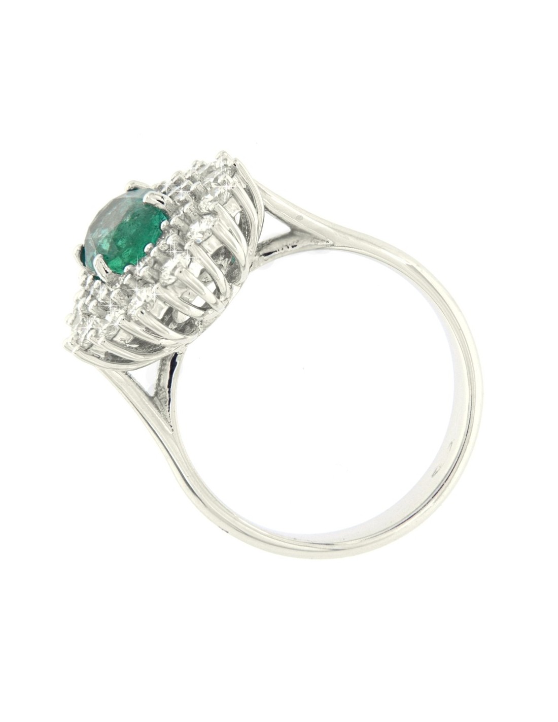 ANELLO ORO BIANCO SMERALDO OVALE 1,43 DIAMANTI 1,1