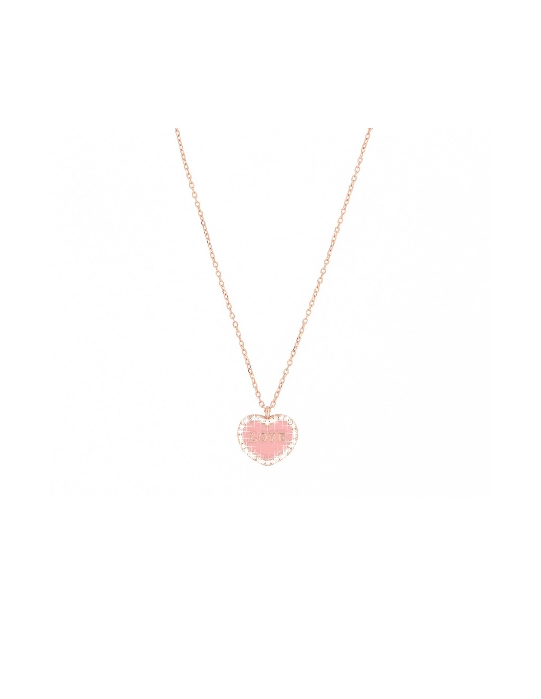 -MATERIALE: la collana è realizzata interamente in argento 925‰ Rosato (trattamento brillantante contro l'annerimento) modello catena con pendente a forma di cuore con all'interno la scritta Love accompagnata dall'applicazione di Zirconia Cubica o CZ bianchi con taglio di alta qualità simile al taglio Brillante del Diamante;