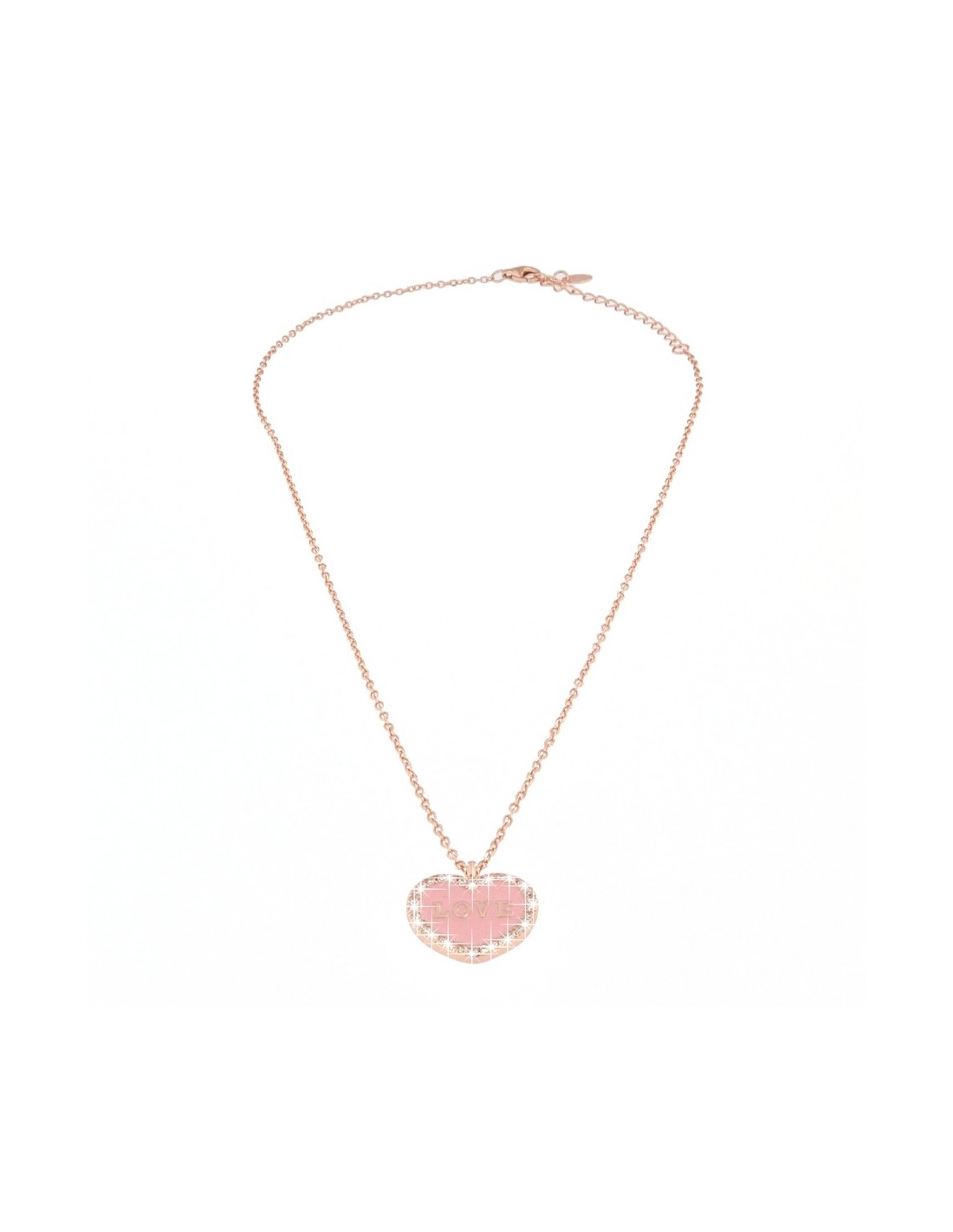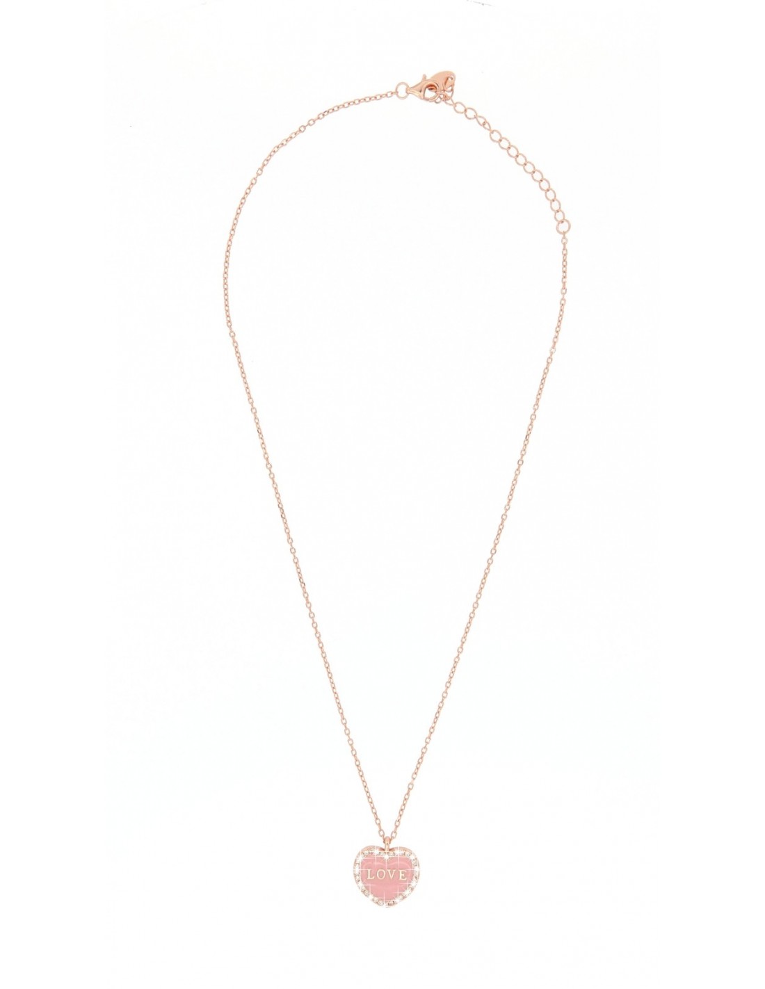 Collana Argento Rosato Catena Pendente Cuore Rosa