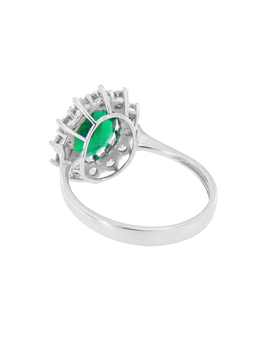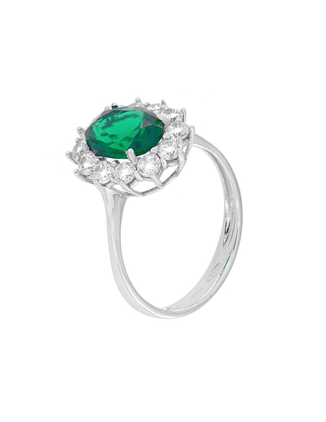 •MATERIALE: l'anello è realizzato interamente in oro bianco 750‰ (18 Carati) modello Principessa con l'applicazione di uno Zircone Verde taglio ovale misura 9x7 millimetri e con un cotorno di 12 Zirconia Cubica o CZ bianchi da 2,5 millimetri di diametro con taglio di alta qualità simile al taglio Brillante del Diamante;