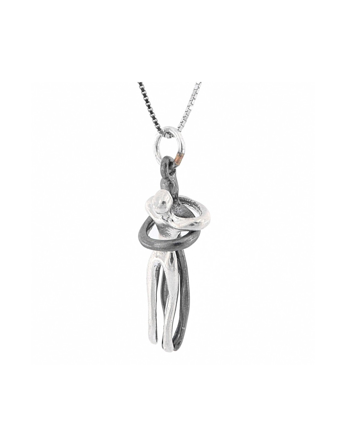 -MATERIALE: la collana è realizzata interamente in argento 925‰ Rodiato (trattamento brillantante contro l'annerimento) rappresentante due omini ,divisibili fra loro, che si abbracciano;