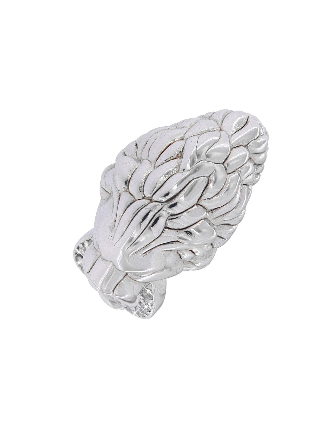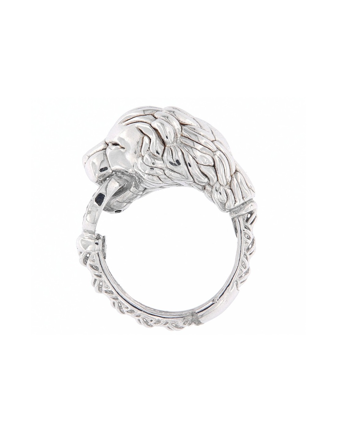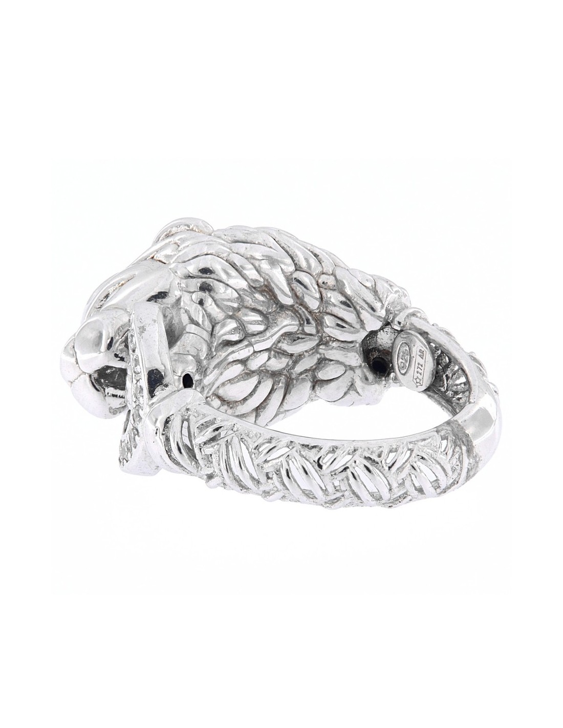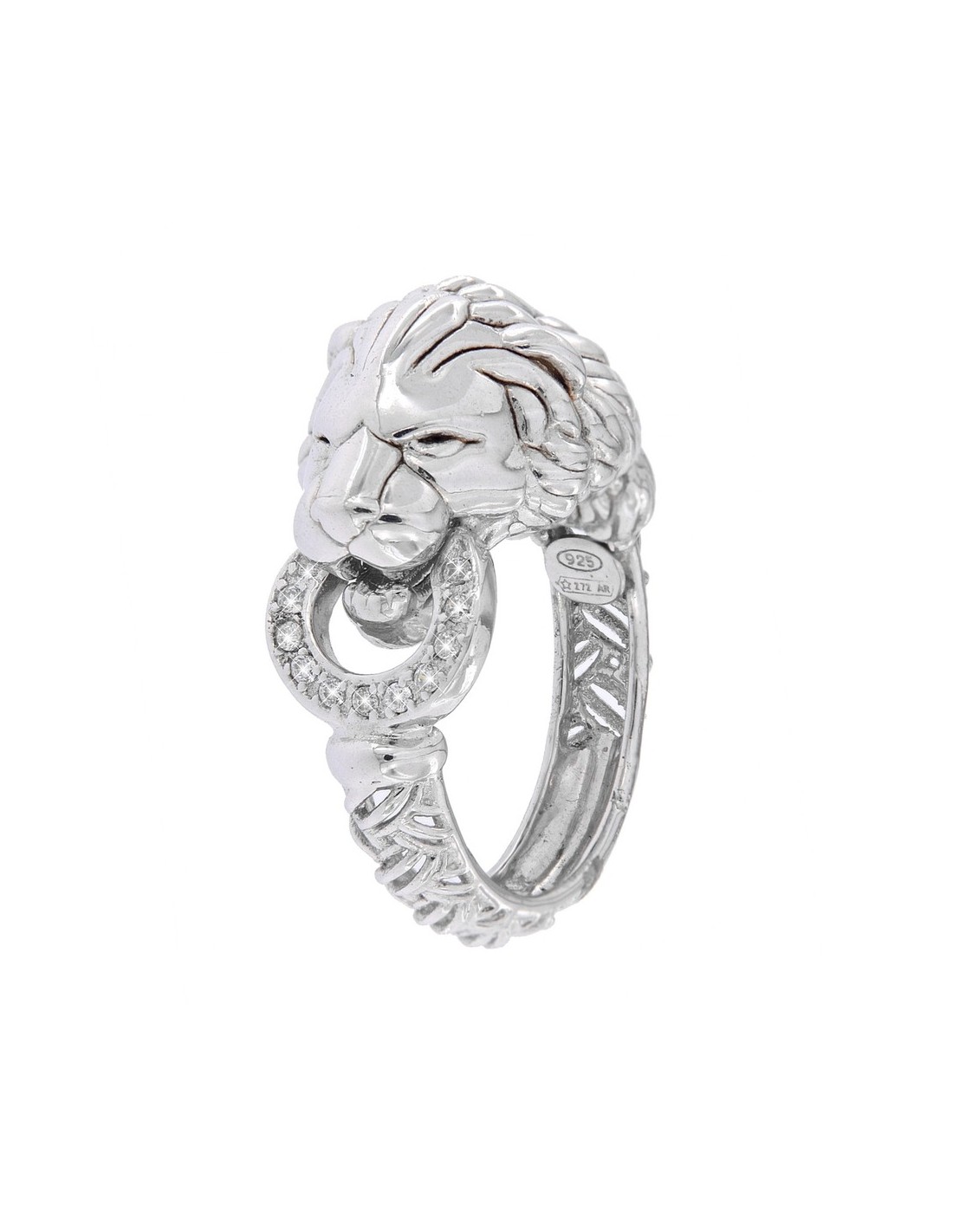 Anello Argento Rodiato Leone Liscio Con Zirconi